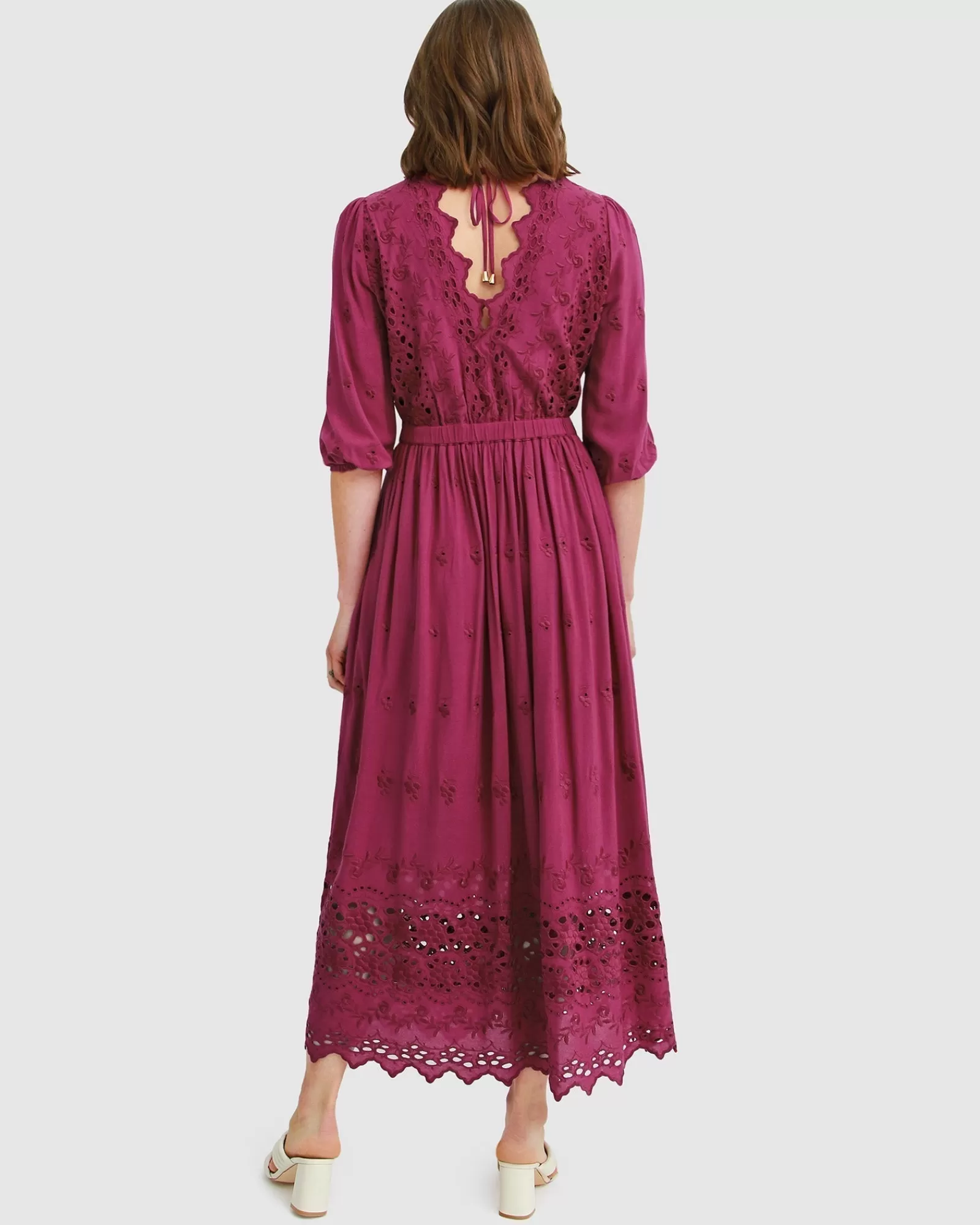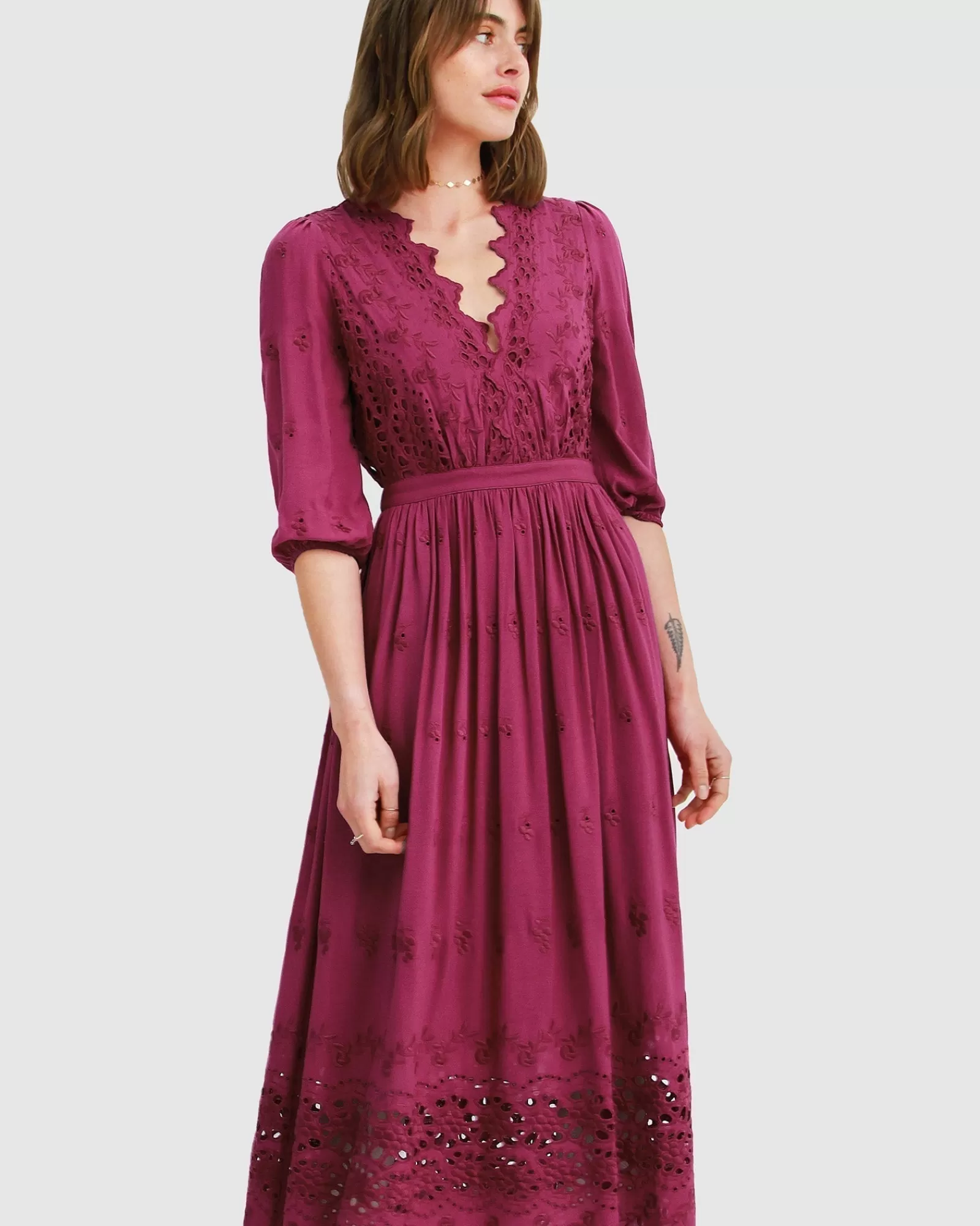 Our All Eyes On Me Midi Dress is effortlessly bohemian-inspired, featuring intricate lace throughout with 3/4 cuffed sleeves and scalloped edges.