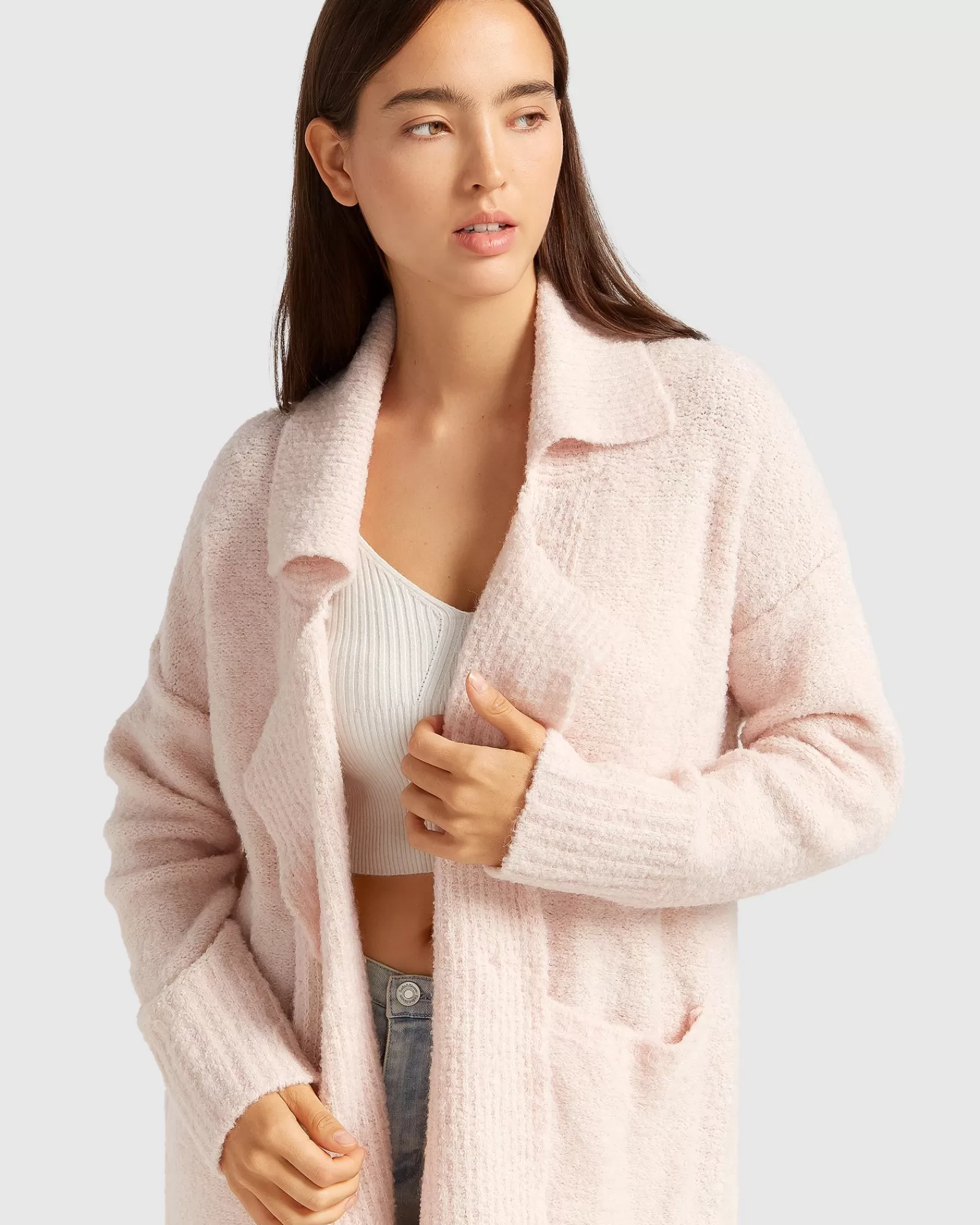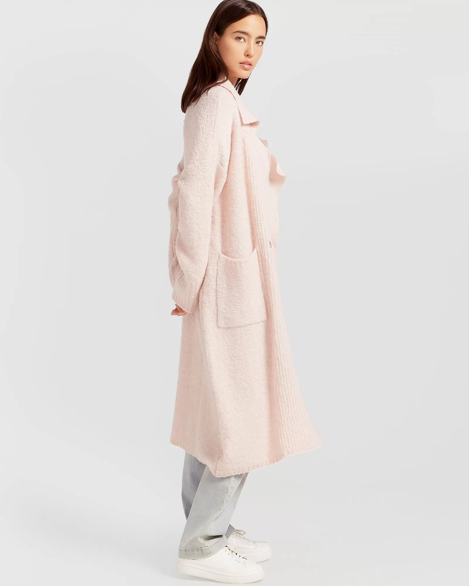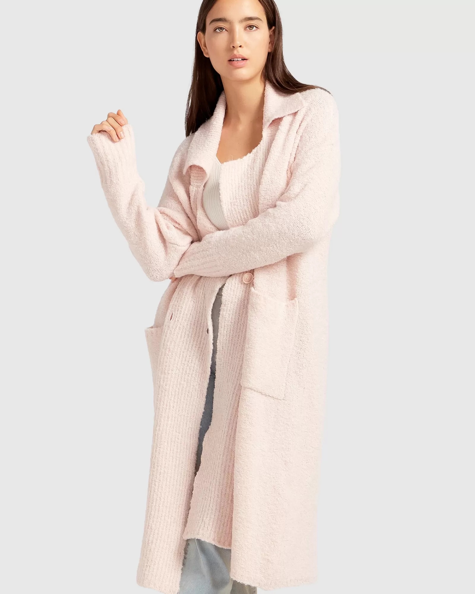 Belle & Bloom Born To Run Sustainable Sweater Coat – Pale Pink