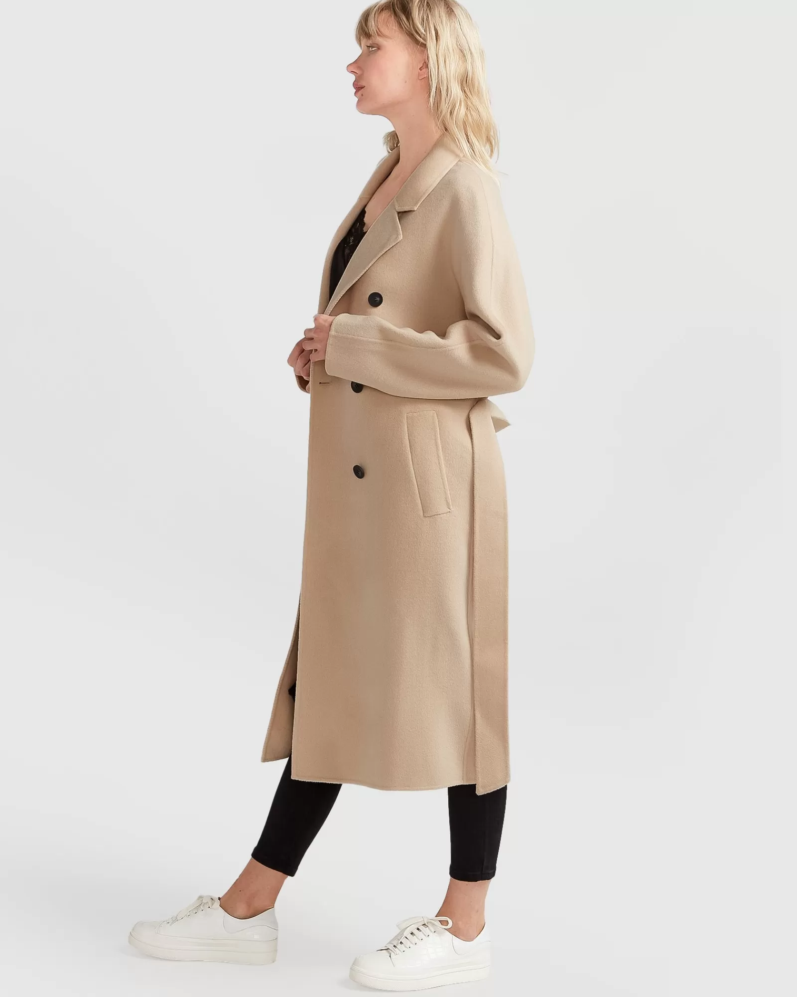 Belle & Bloom Boss Girl Double-Breasted Lined Wool Coat – Pale Oat