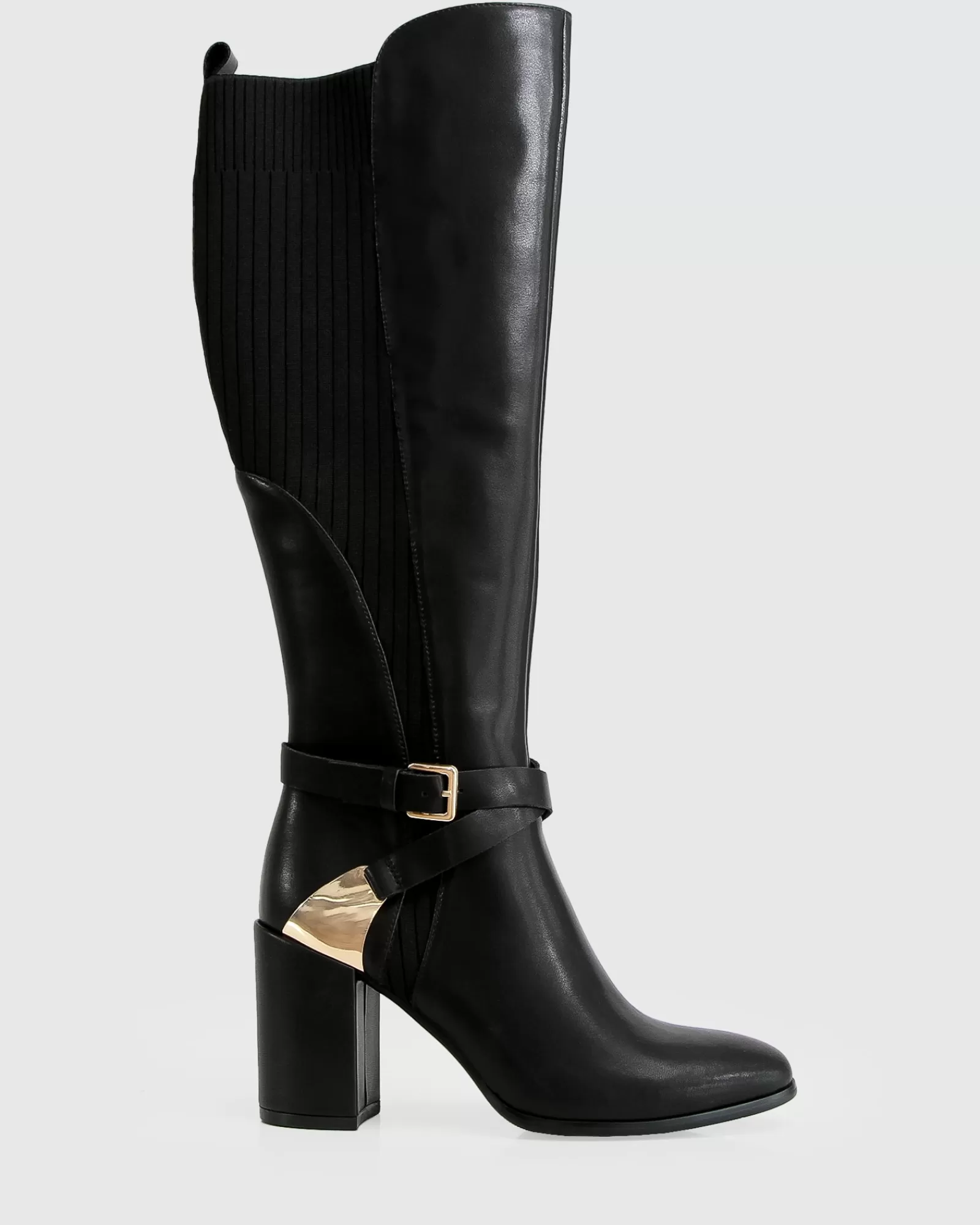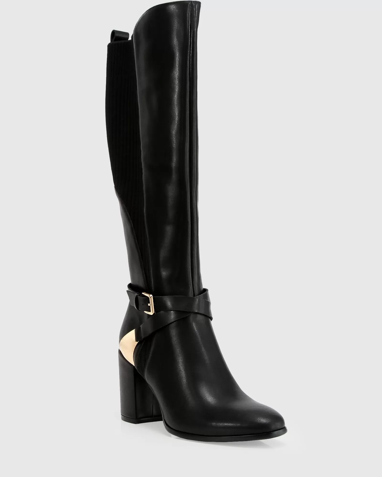 Polished gold hardware, slender leather straps and ribbed panels add an equestrian edge to the Breton Knee-High Boot in smooth leather with the perfect height heel to take you comfortably from day to night.