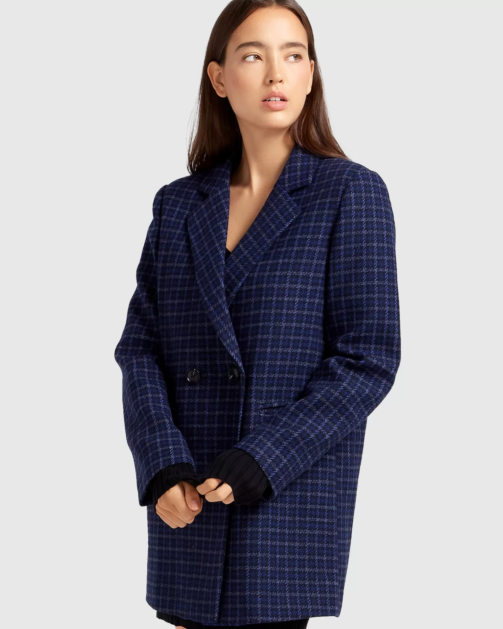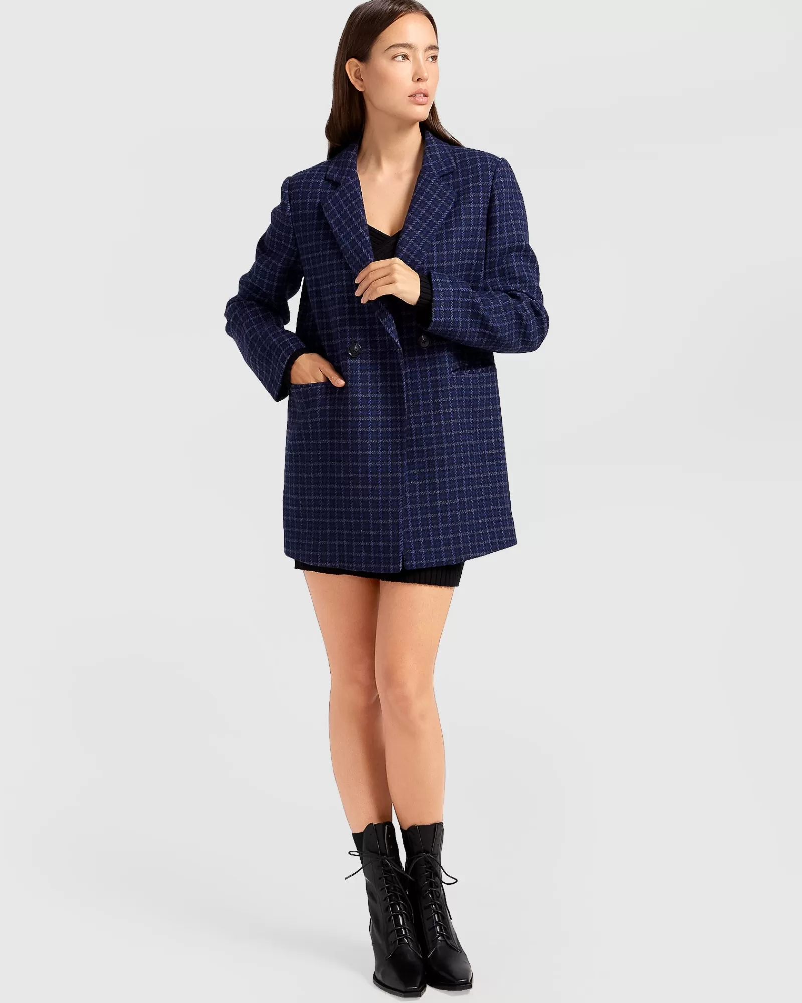 Taking inspiration from the halls of the Ivy Leagues, the Cambridge Oversized Wool Blazer is a modern twist on a classic. Clean lines and a sleek check, make this wool blazer a timeless classic. Featuring an oversized cut, button closure, pockets and a notch lapel, it’s perfect for any occasion.