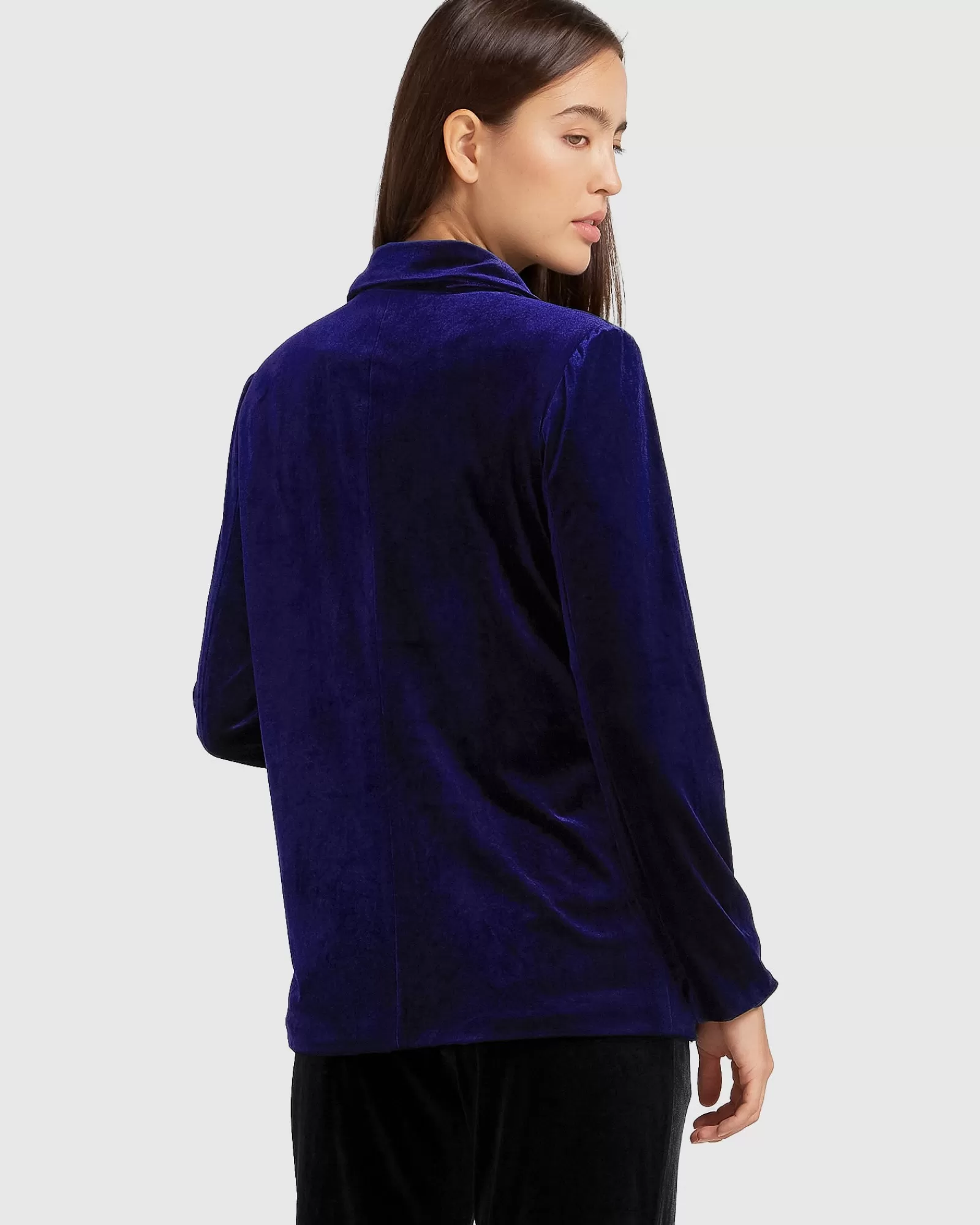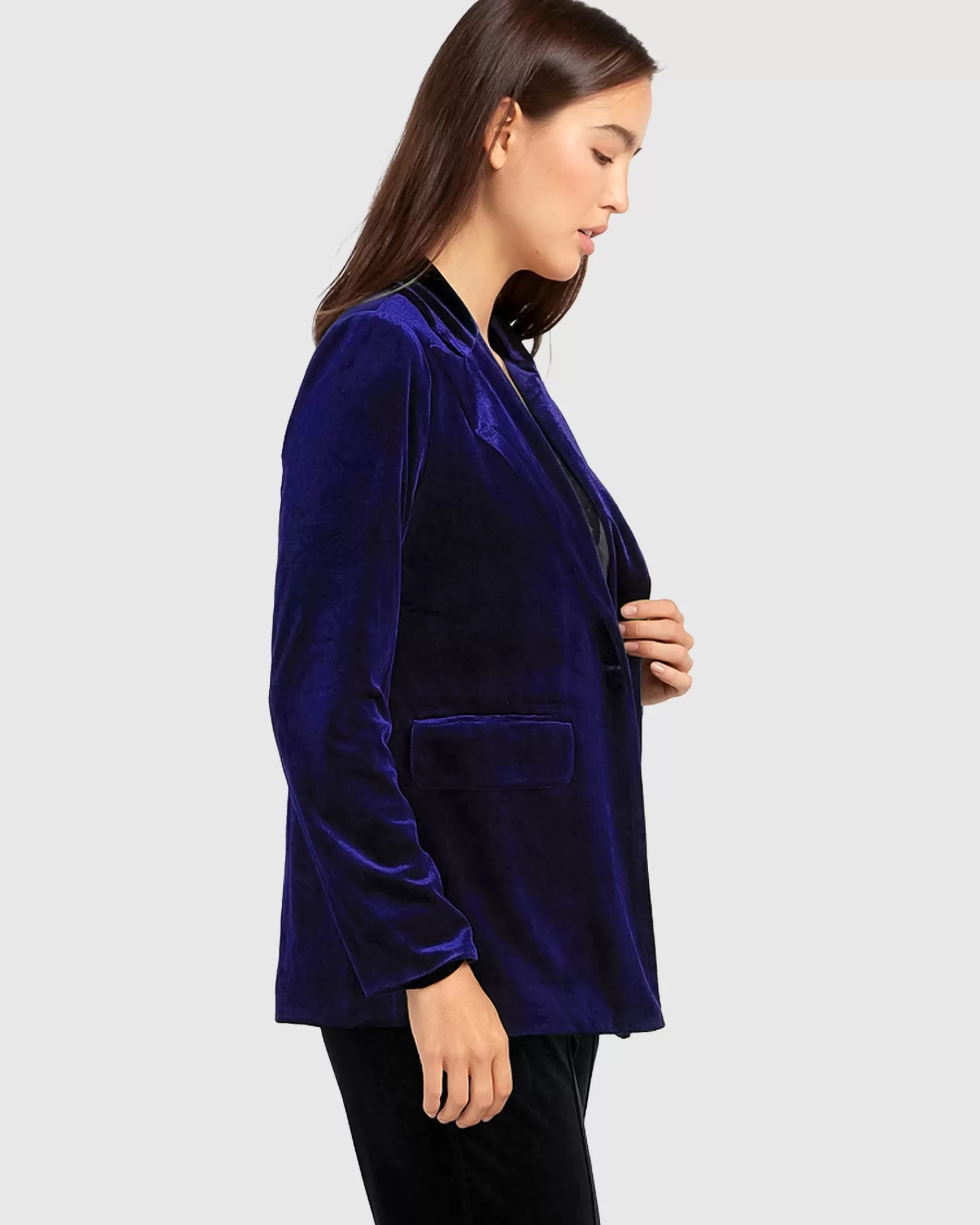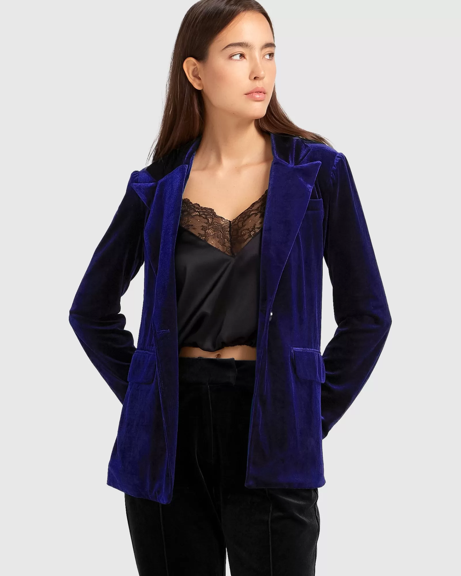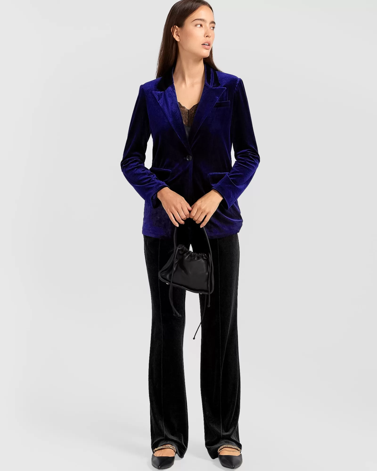 Whether worn casual or dressy, the Eternity Velvet Blazer looks opulent and chic in its loose, modern cut.