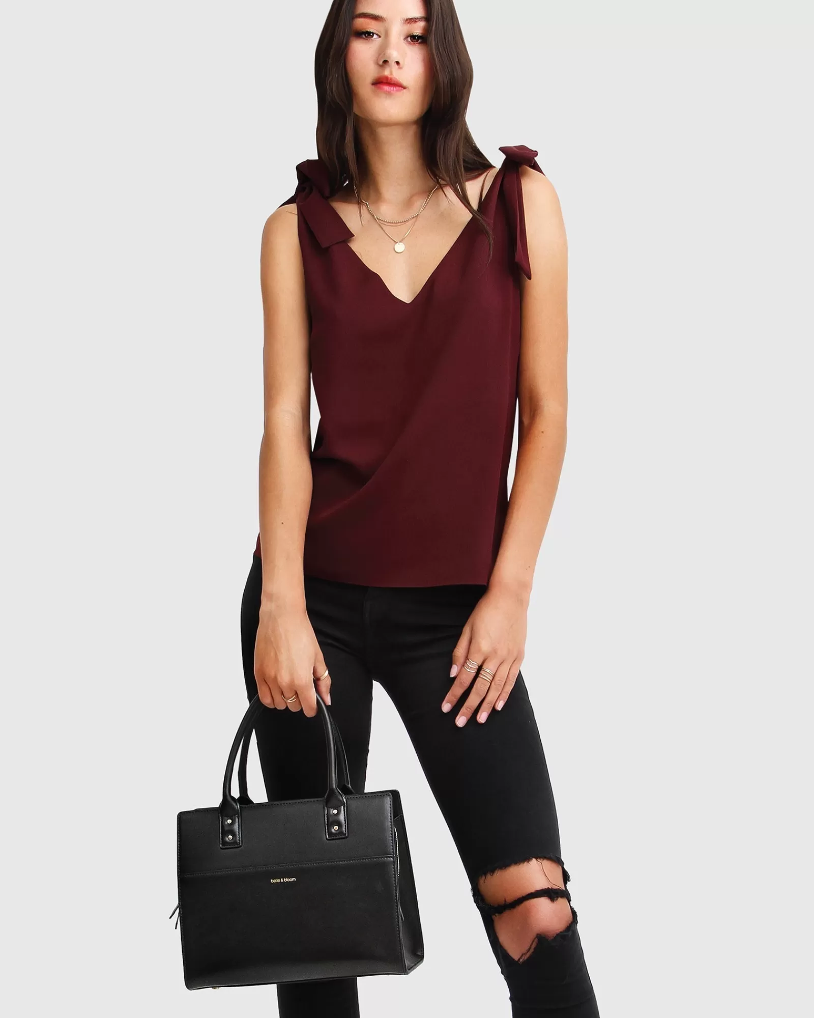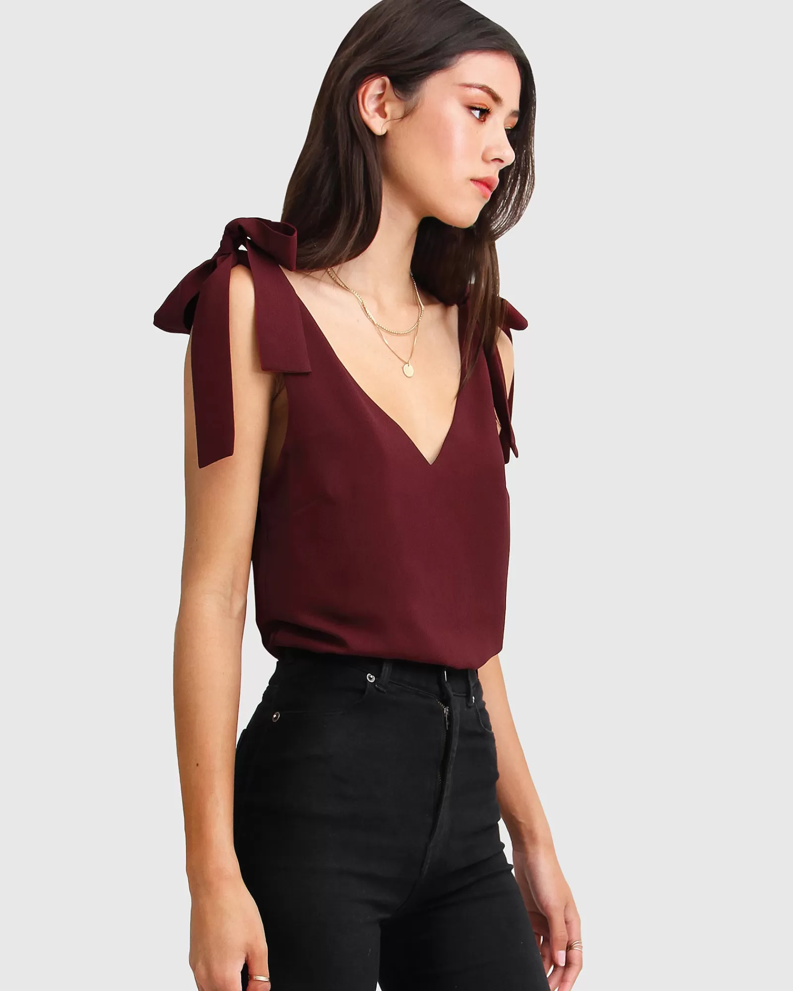 Belle & Bloom Feel For You V-Neck Top – Burgundy