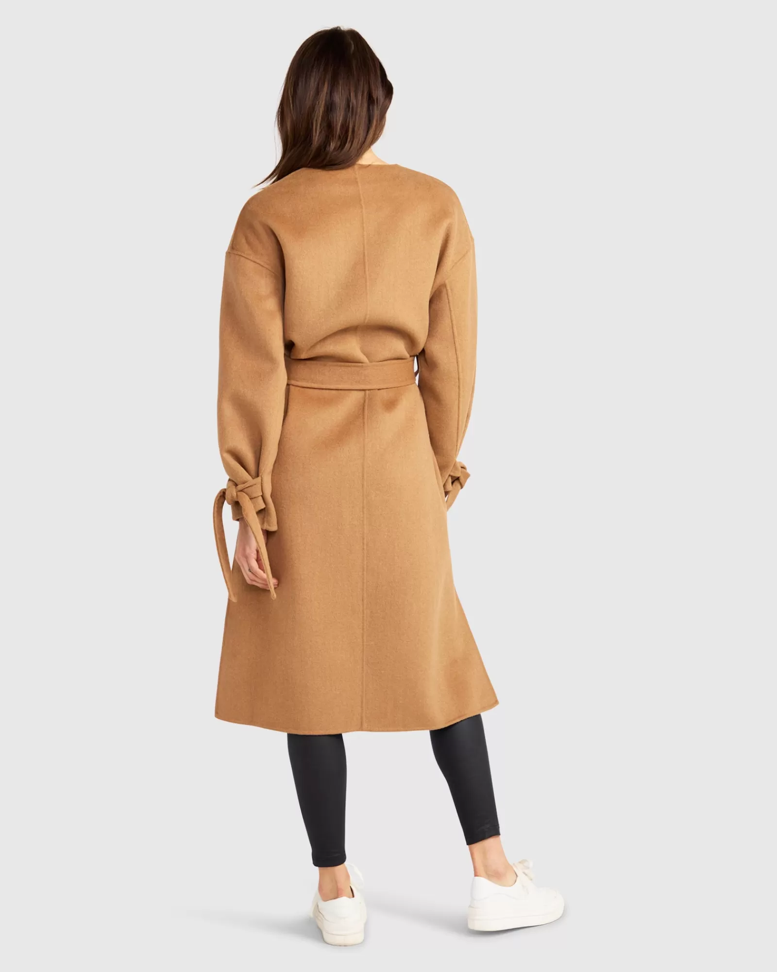 A lesson in effortless chic, the Head Over Heels Collarless Robe Coat is a relaxed wrap coat with a draped lapel and tie…