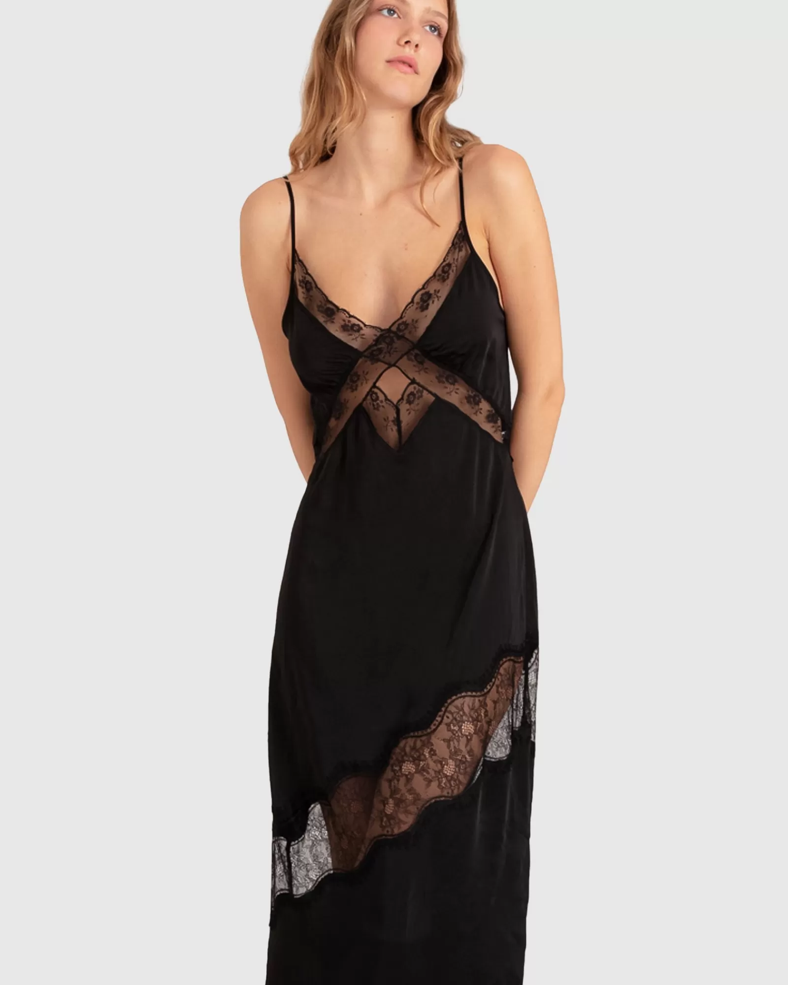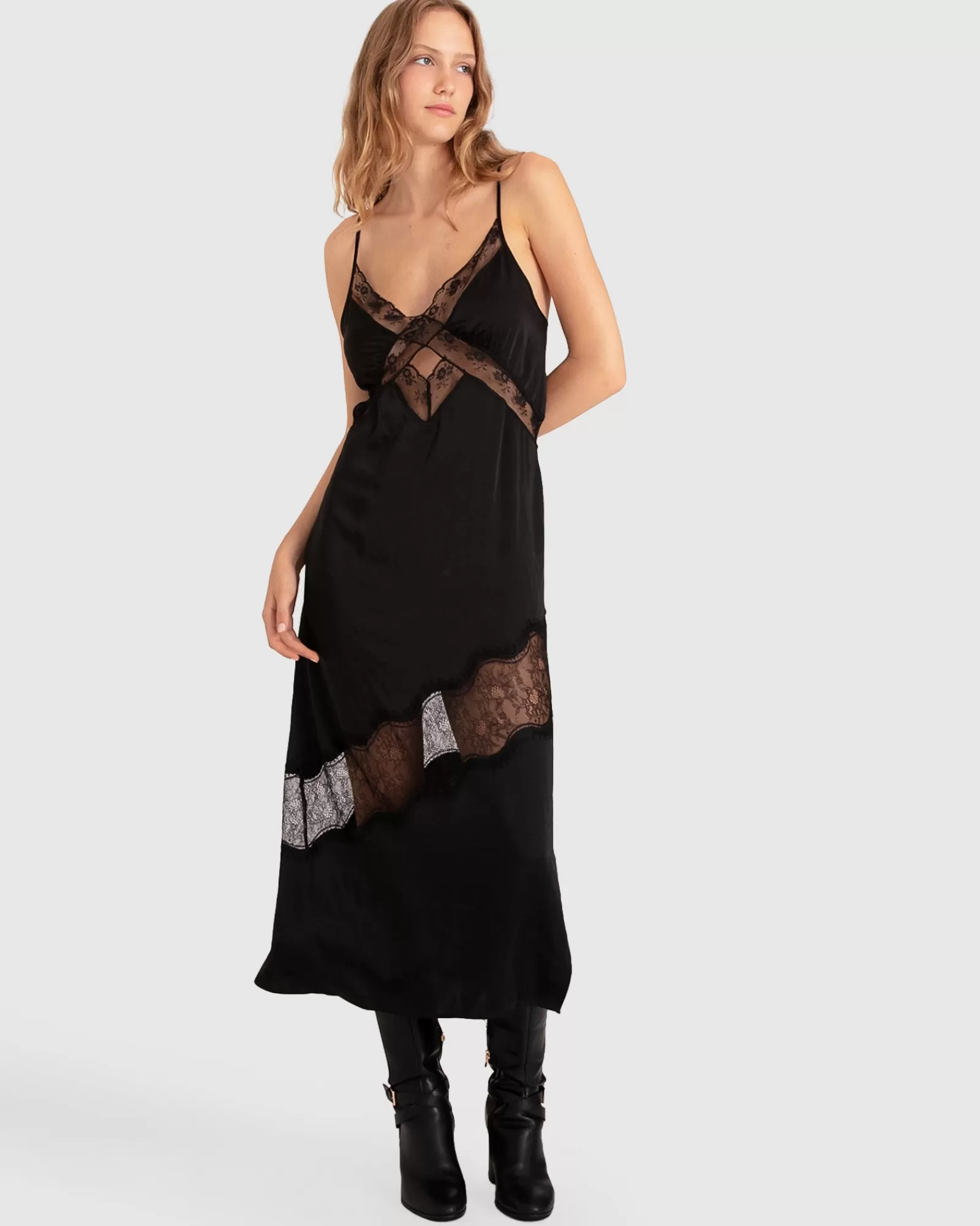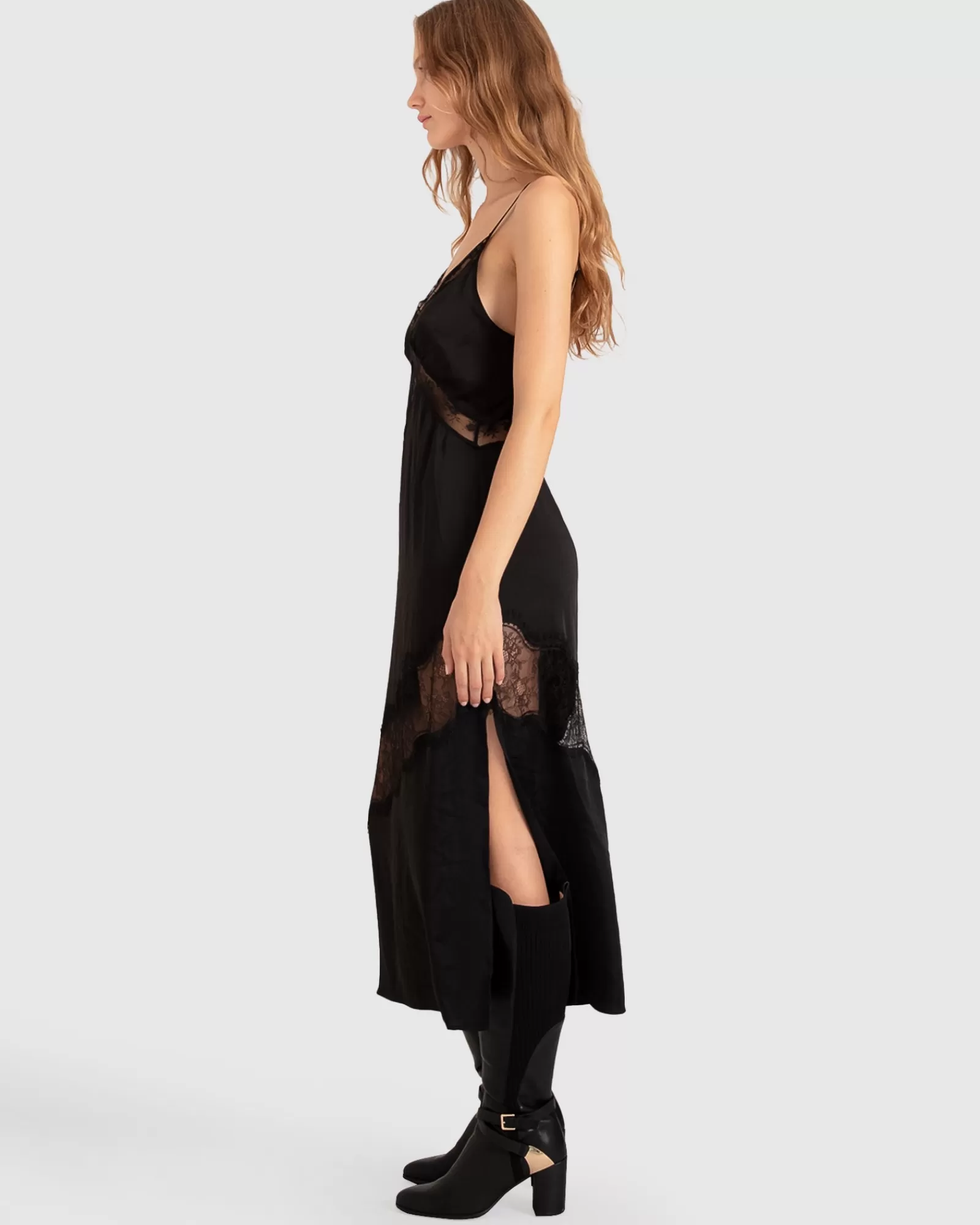 The Heavenly Bodies Lace Slip Dress is a nod to vintage glam with a contemporary twist. The soft satin and side split ensure all-day comfort, while its versatility allows for effortless styling – pair it with heels for a night out or embrace casual chic with sneakers and a leather jacket.