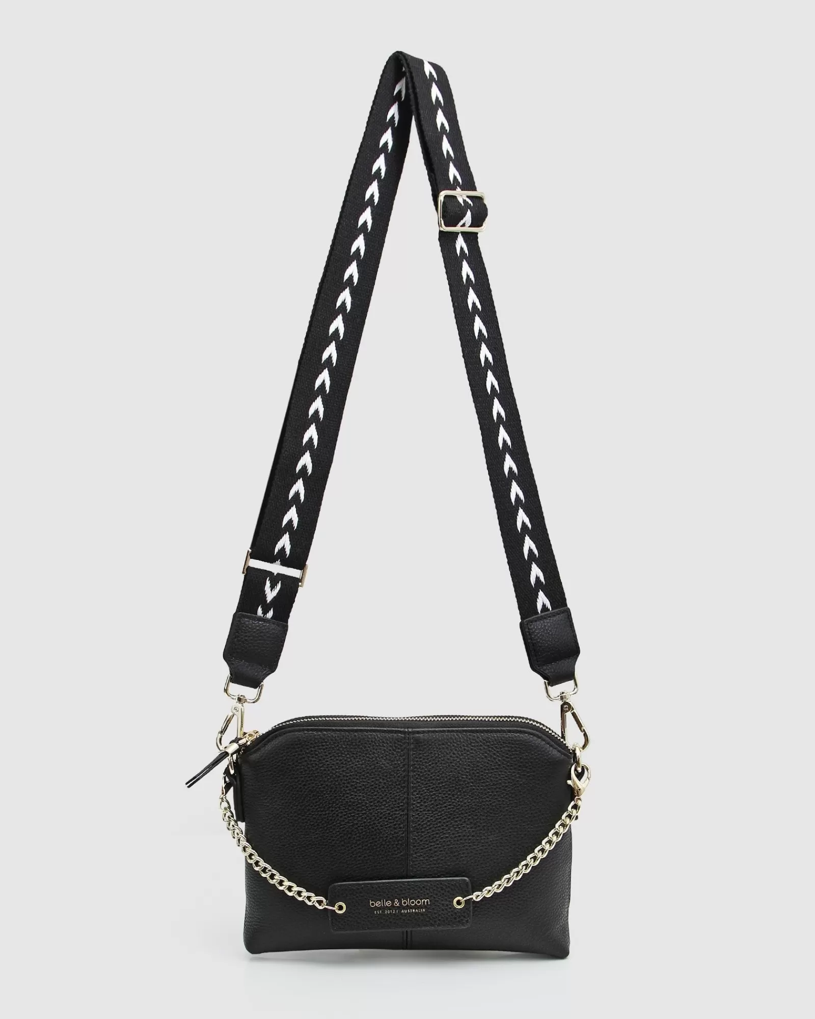 - Detachable decorative chain with leather logo badge