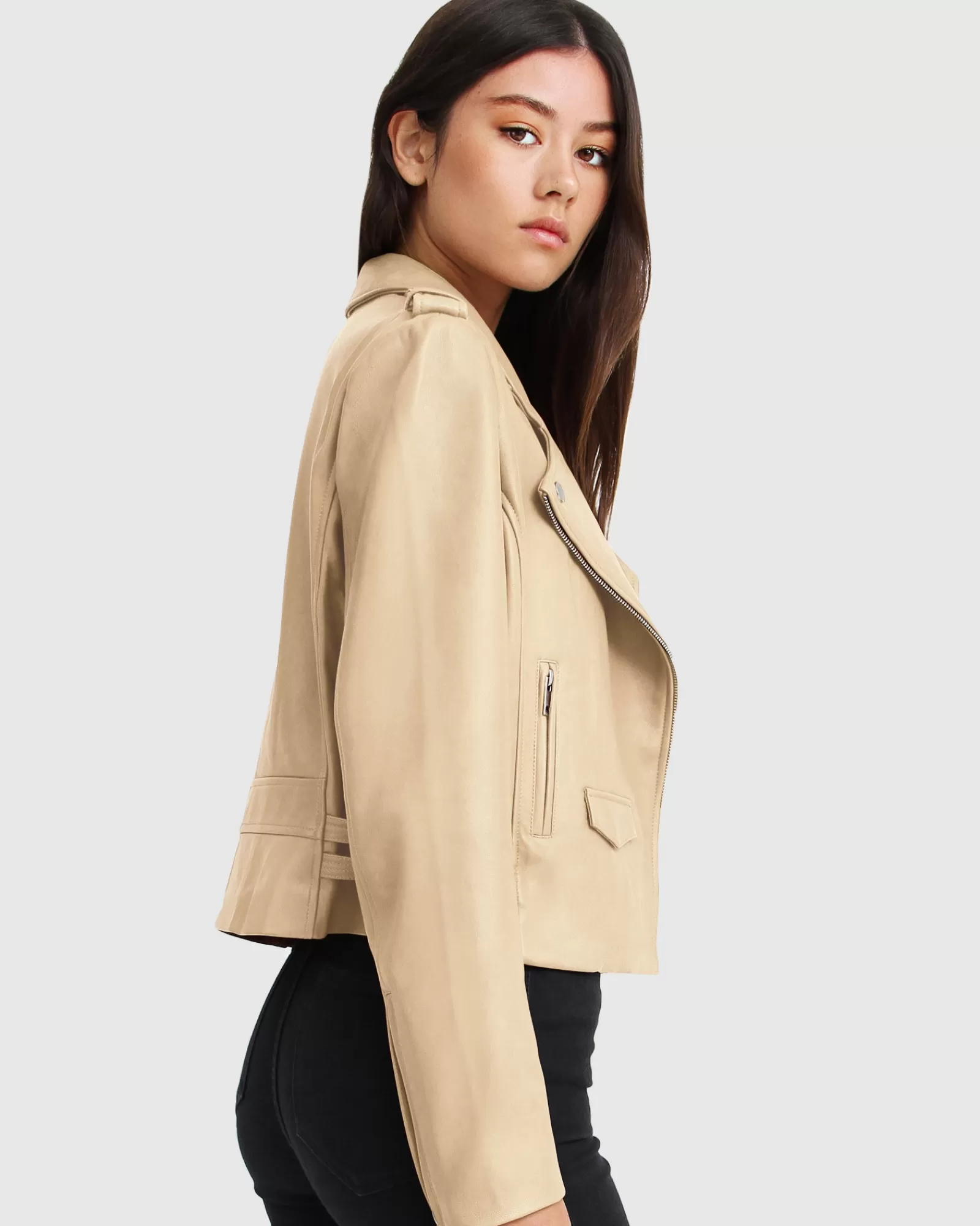 Bring an effortless luxe feel to any outfit with the Just Friends Leather Jacket by Belle & Bloom. A true wardrobe staple, this jacket is entirely crafted from genuine sheep leather and punctuated with silver-toned hardware. It features a zip-through front, notched lapels, zip-open cuffs and two zipped pockets.