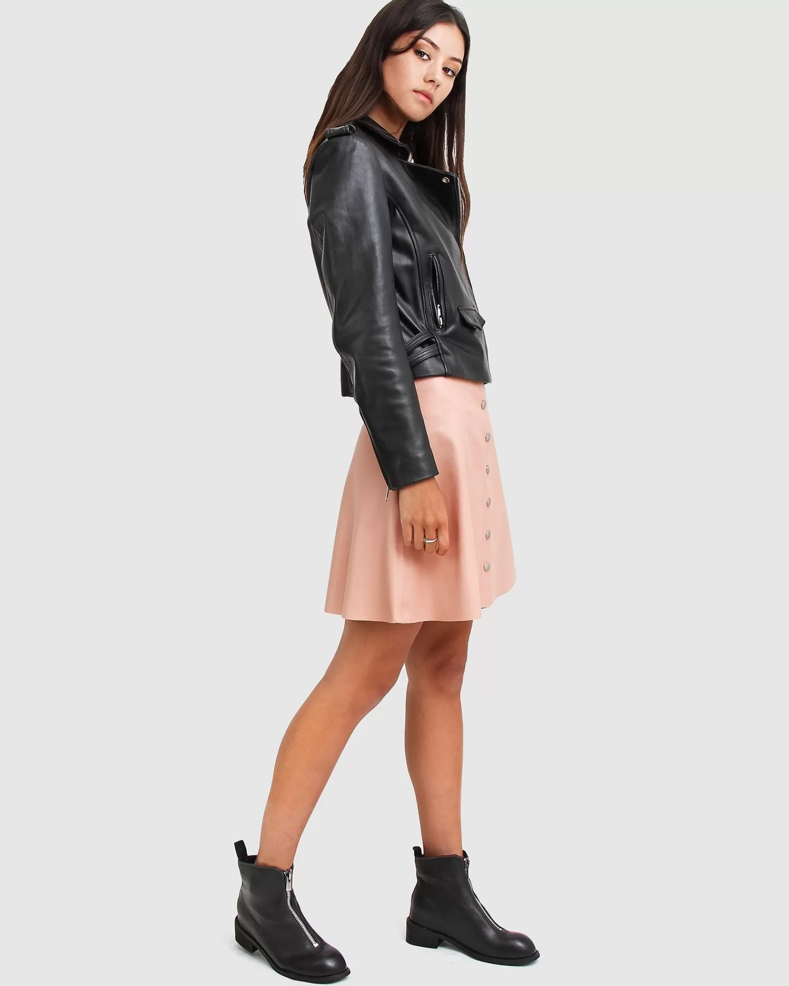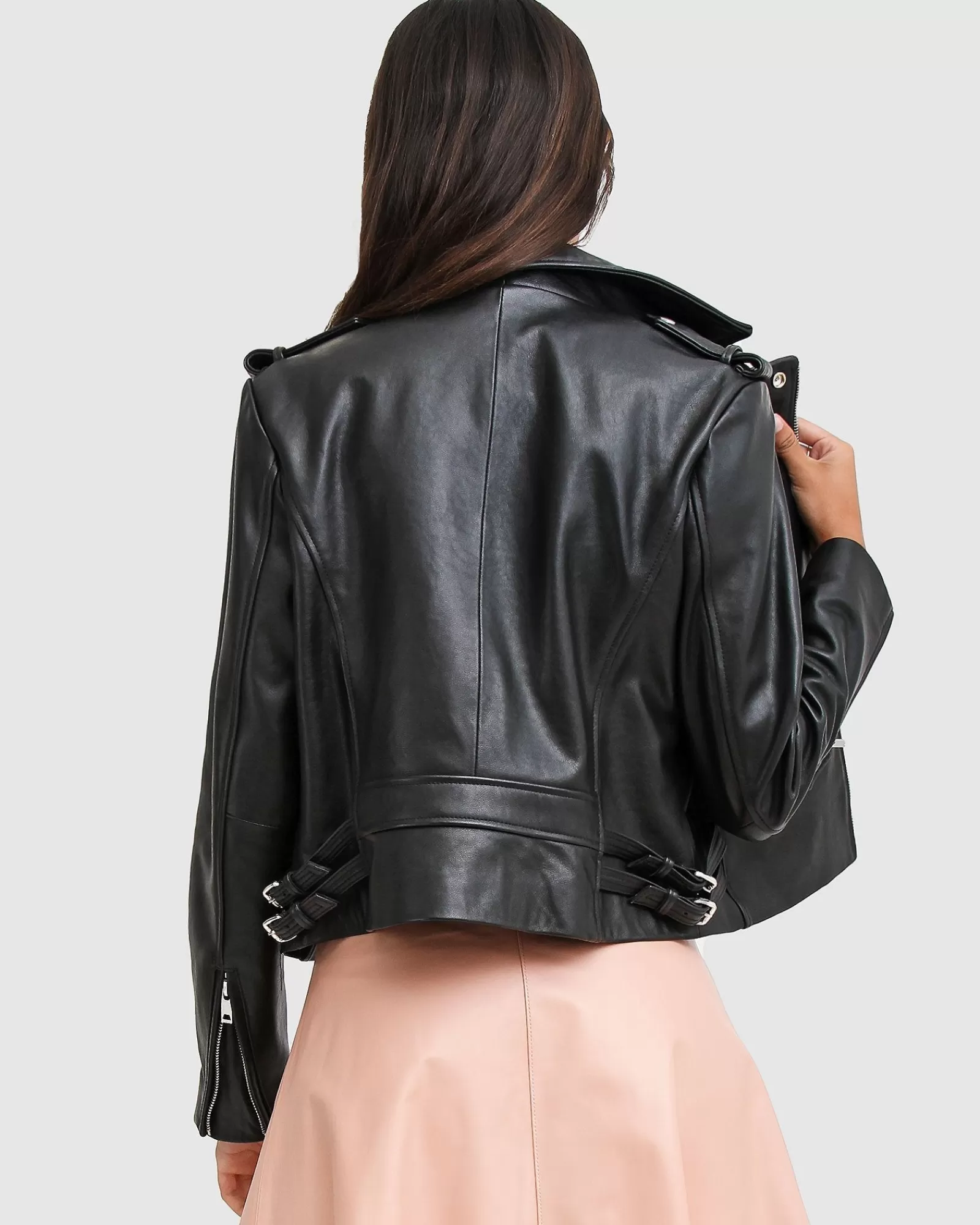 Bring an effortless luxe feel to any outfit with the Just Friends Leather Jacket by Belle & Bloom. A true wardrobe staple, this jacket is entirely crafted from genuine sheep leather and punctuated with silver-toned hardware. It features a zip-through front, notched lapels, zip-open cuffs and two zipped pockets.