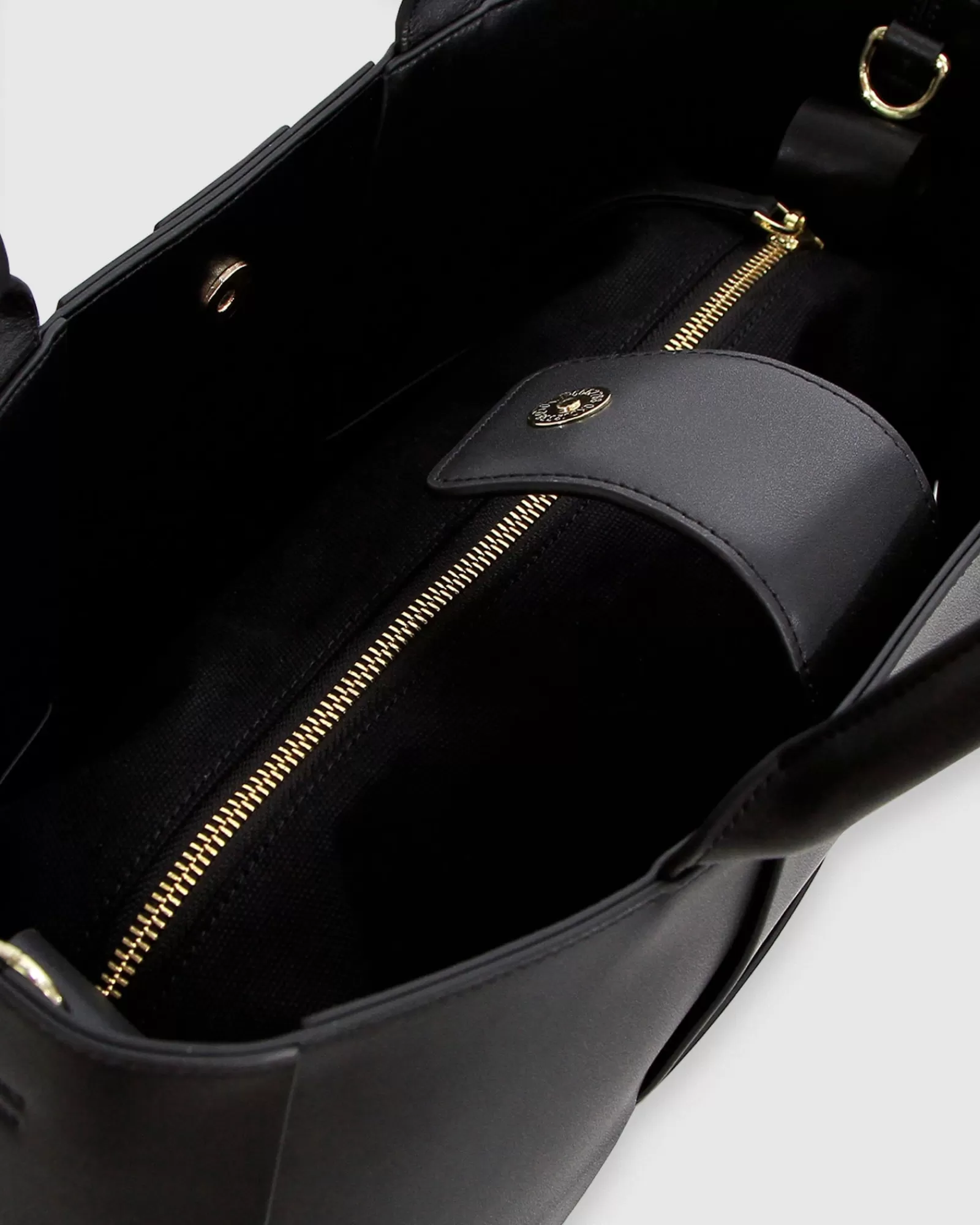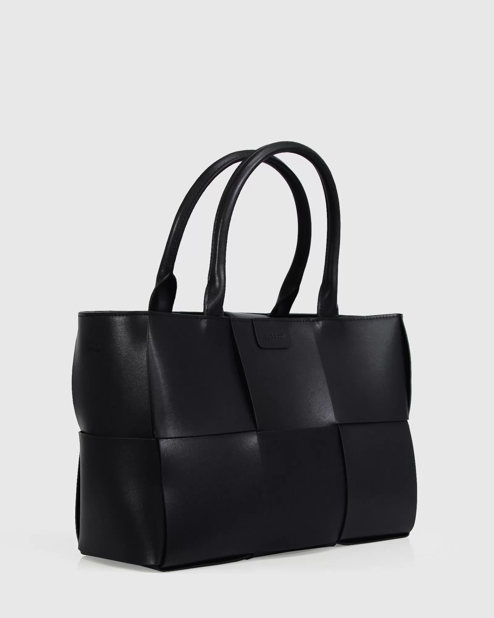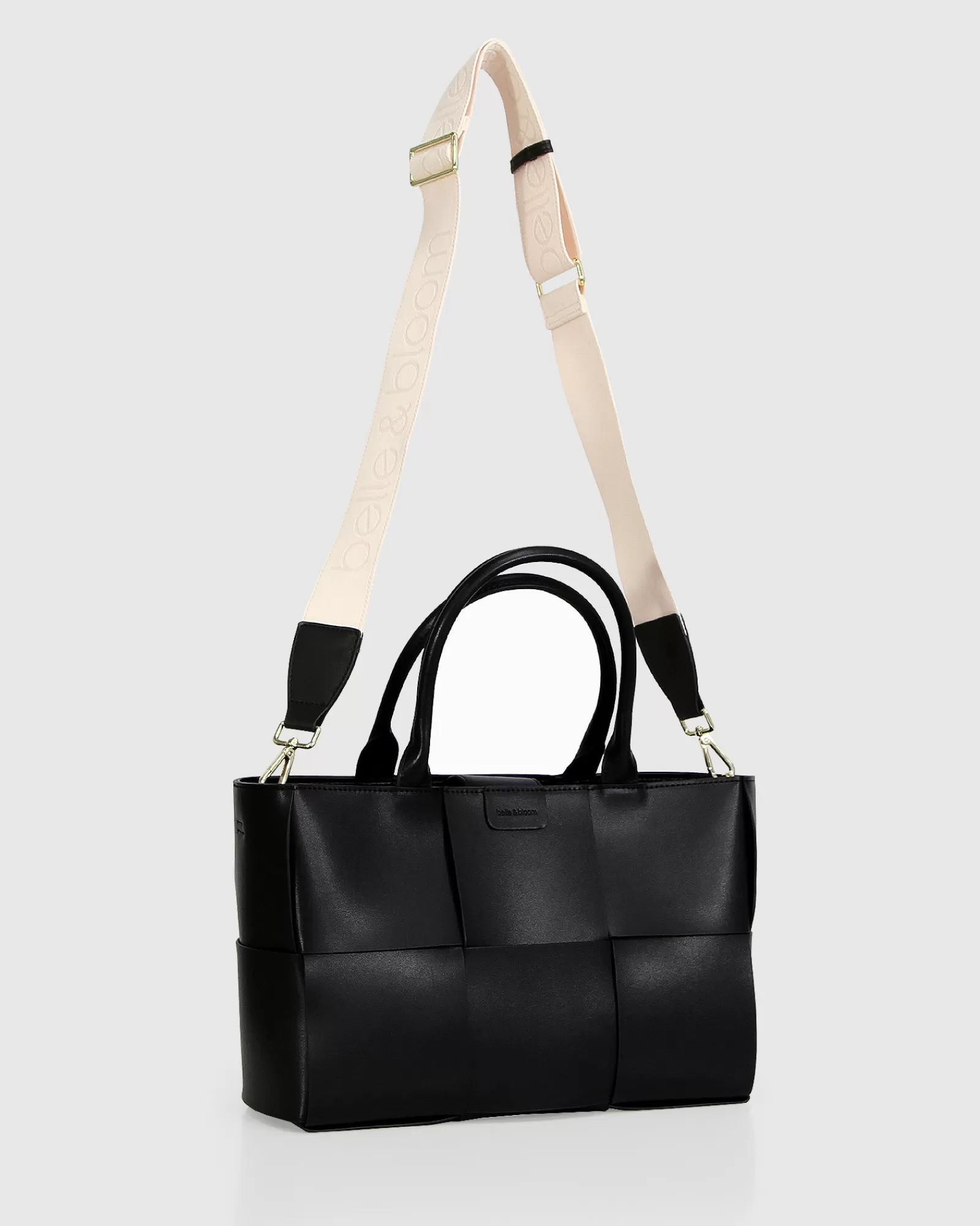 Large woven leather panels add major texture to the Long Way Home Woven Tote. Featuring a removable internal zip up bag …