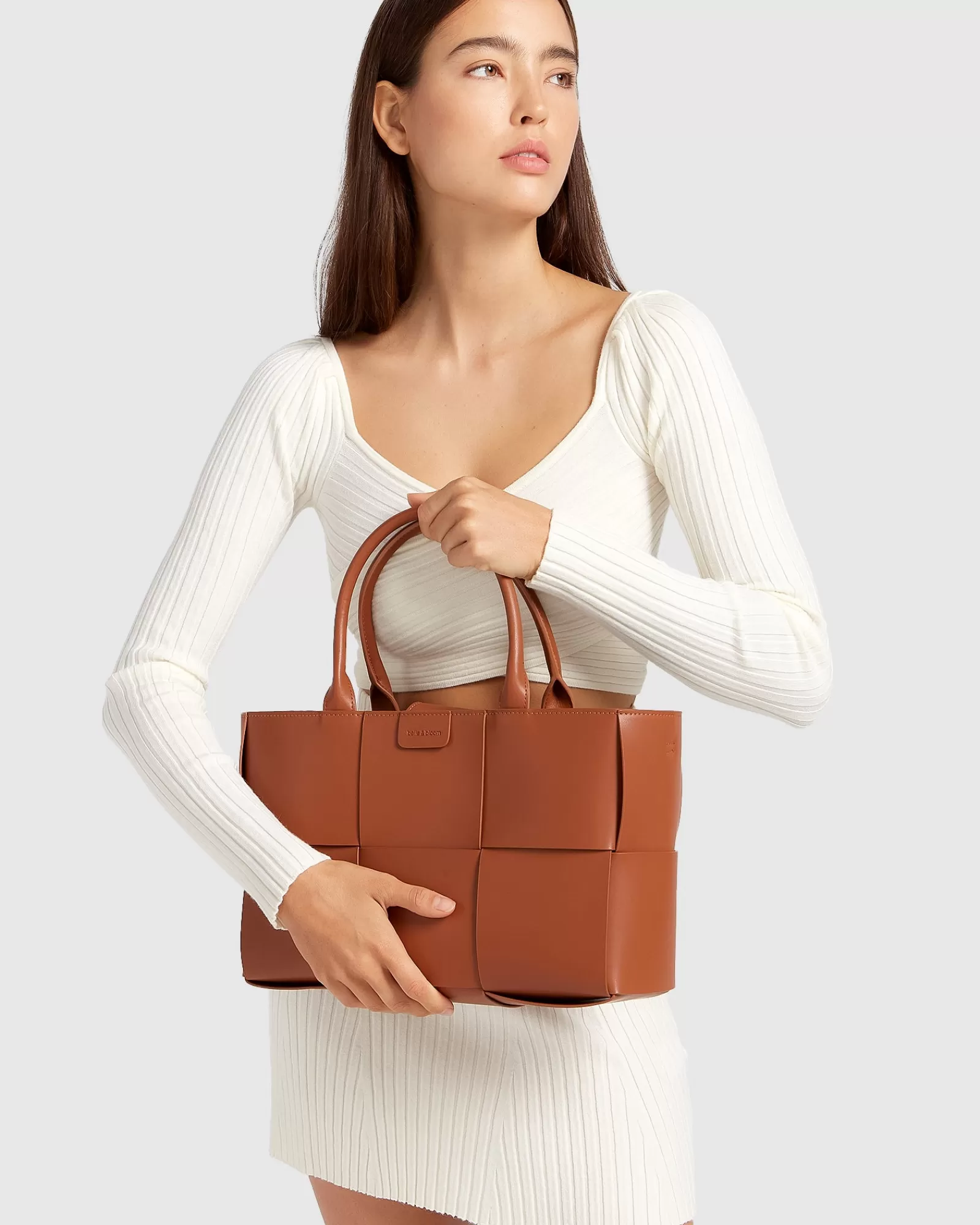 Large woven leather panels add major texture to the Long Way Home Woven Tote. Featuring a removable internal zip up bag …