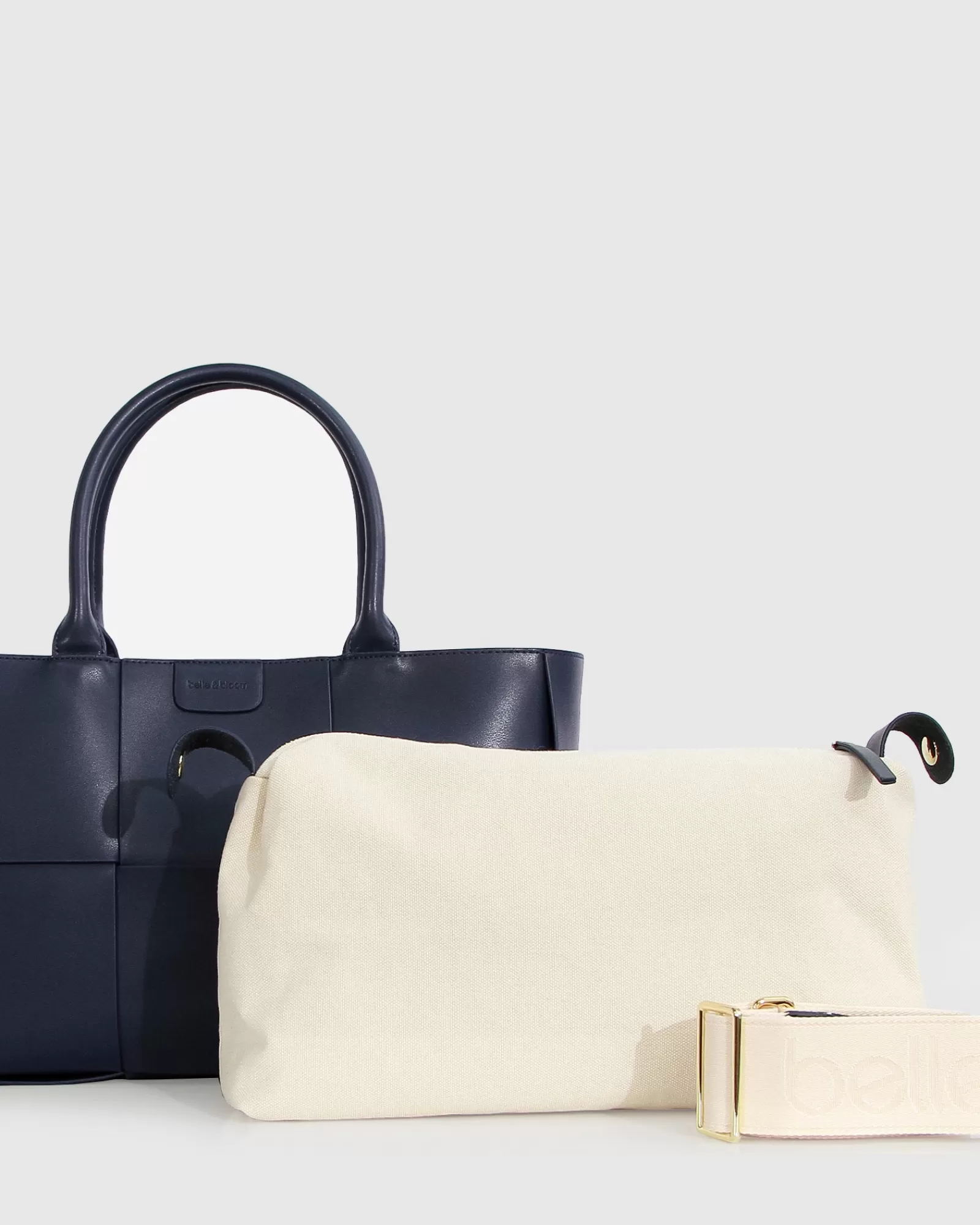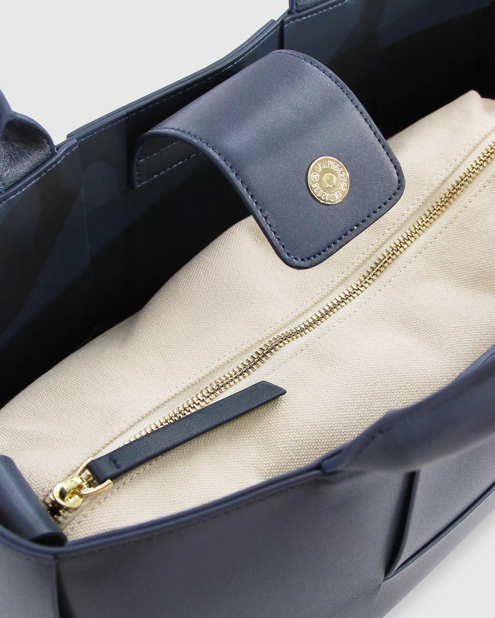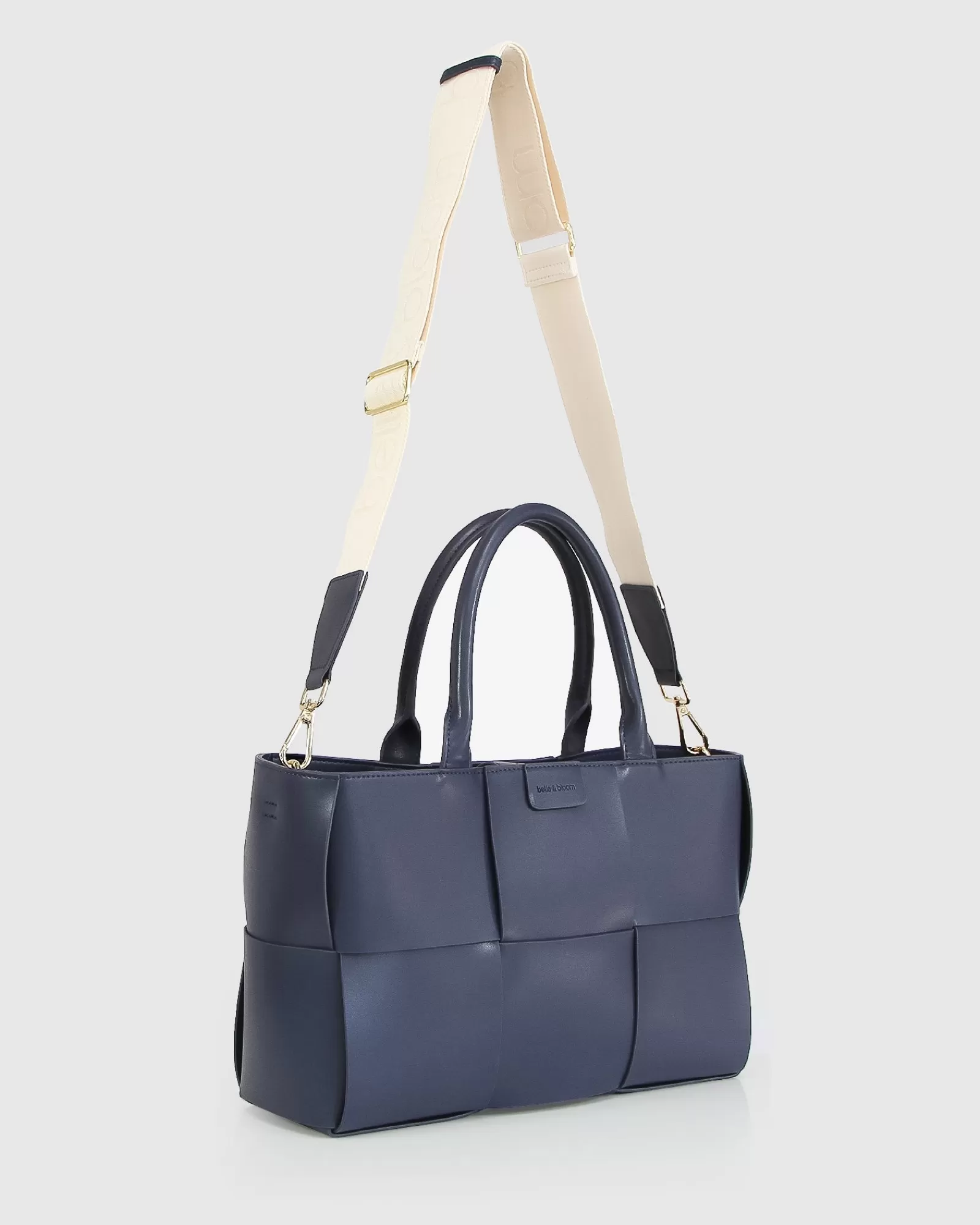 Large woven leather panels add major texture to the Long Way Home Woven Tote. Featuring a removable internal zip up bag and custom cream weft strap, this bag has everything you need for a busy day in or out of the office.