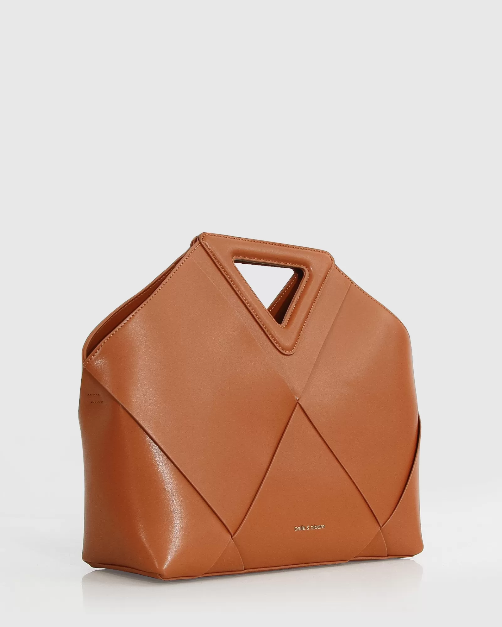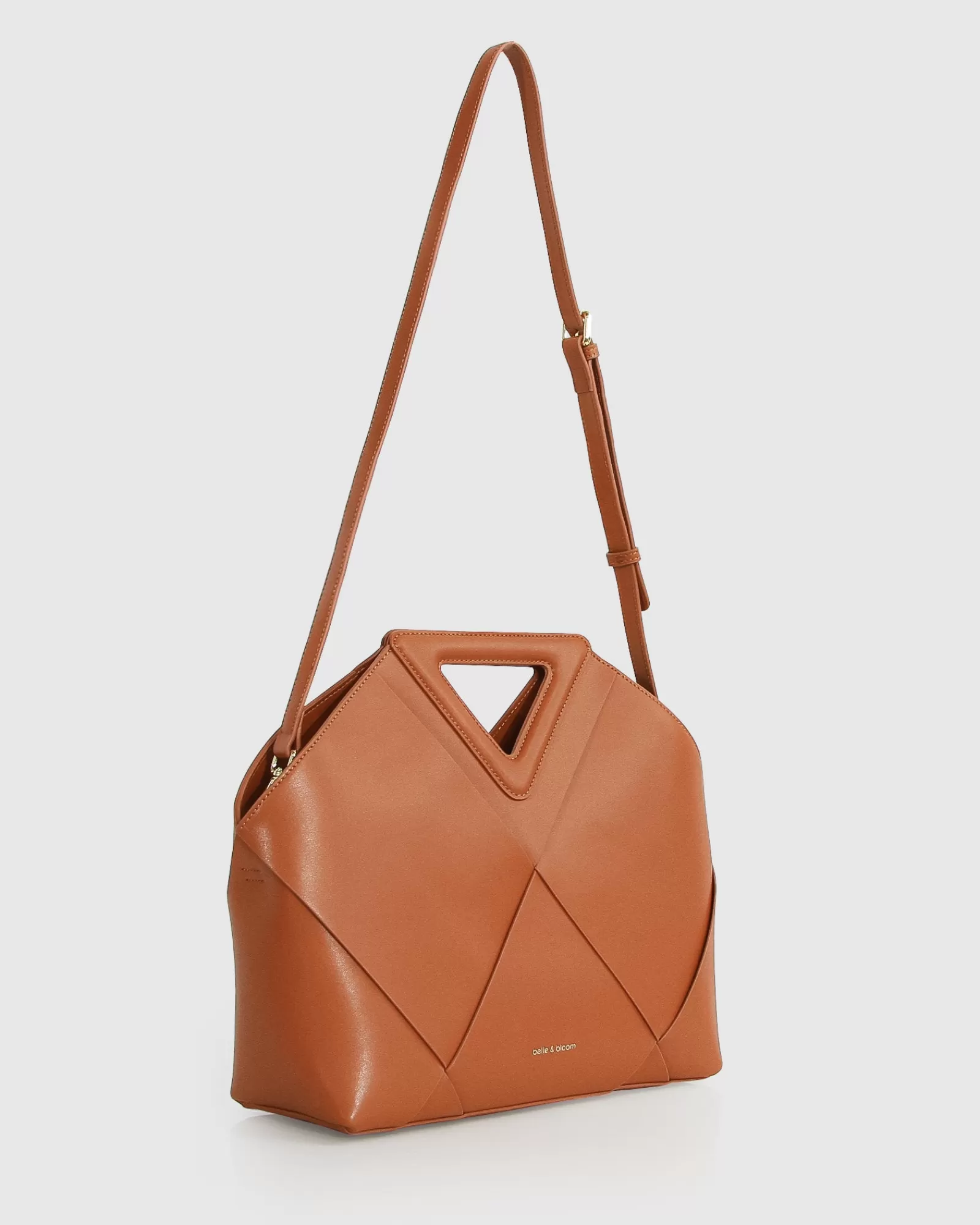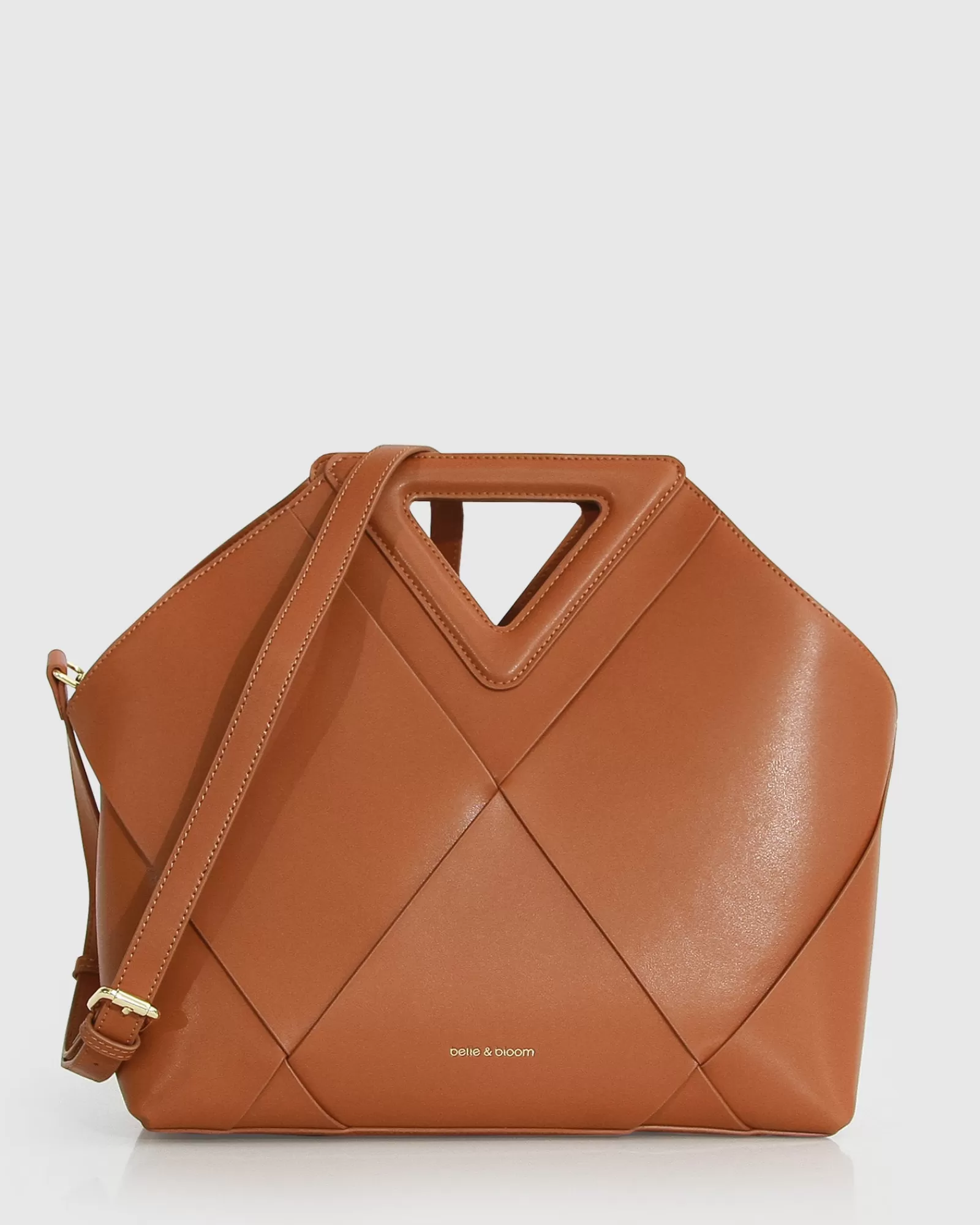 Crafted from woven leather panels, the Love Locked Handbag embodies elegance and texture. The unique inverted triangle handle adds a touch of contemporary flair, while the detachable crossbody strap offers versatile carrying options.