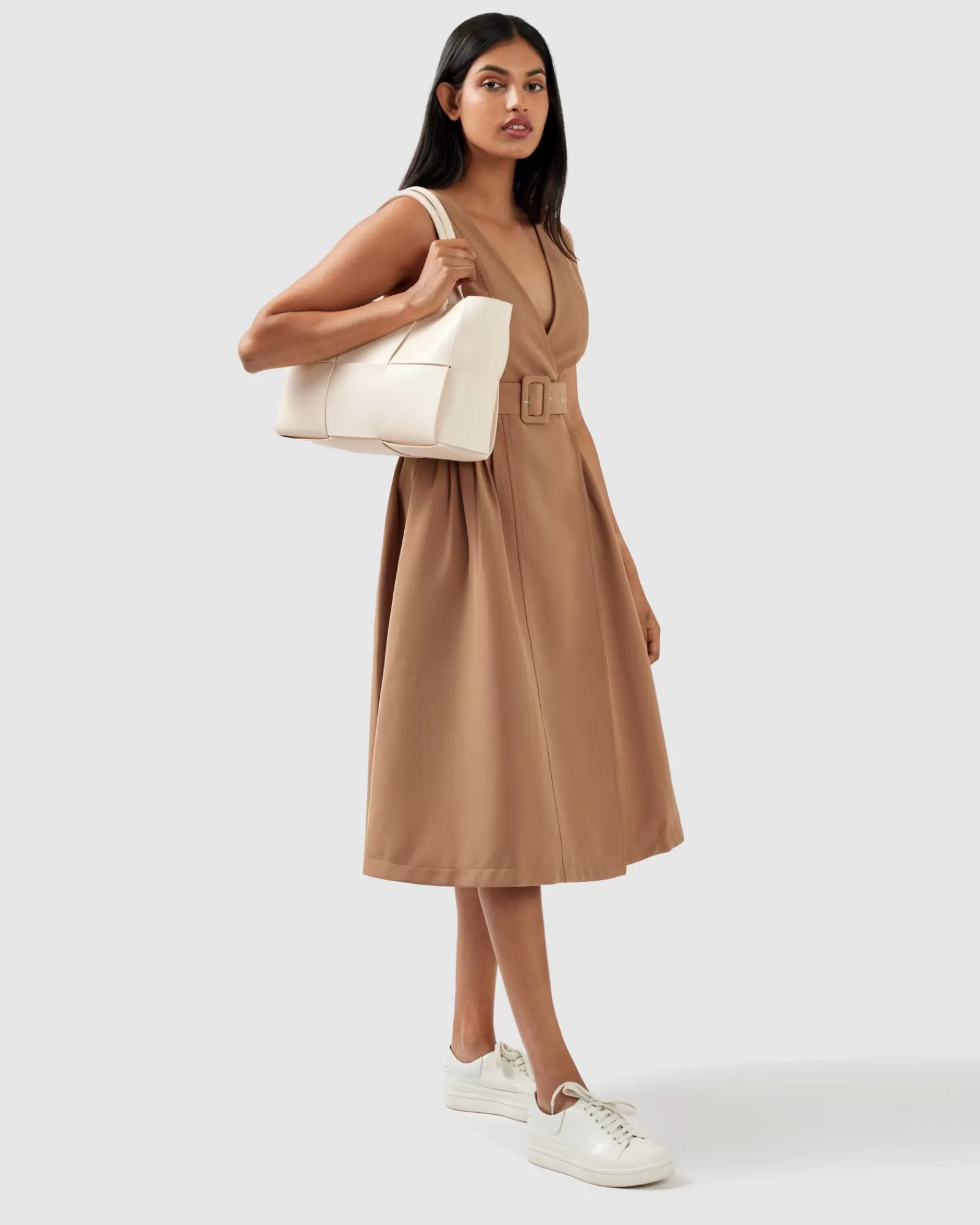 The Miss Independence Midi Dress is a perfect match for the Manhattan Cropped Trench. A simply styled, flattering silhouette that looks effortlessly chic.