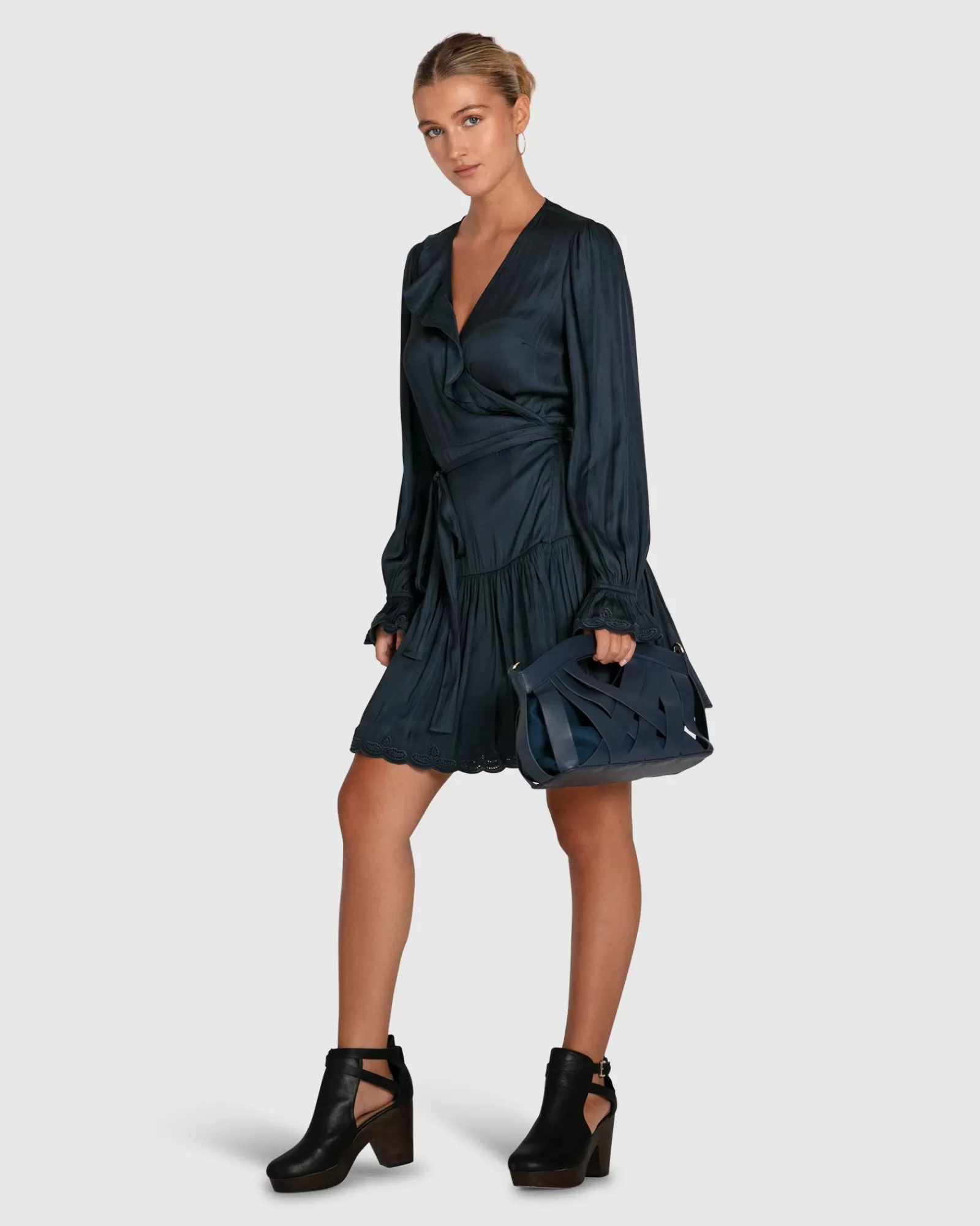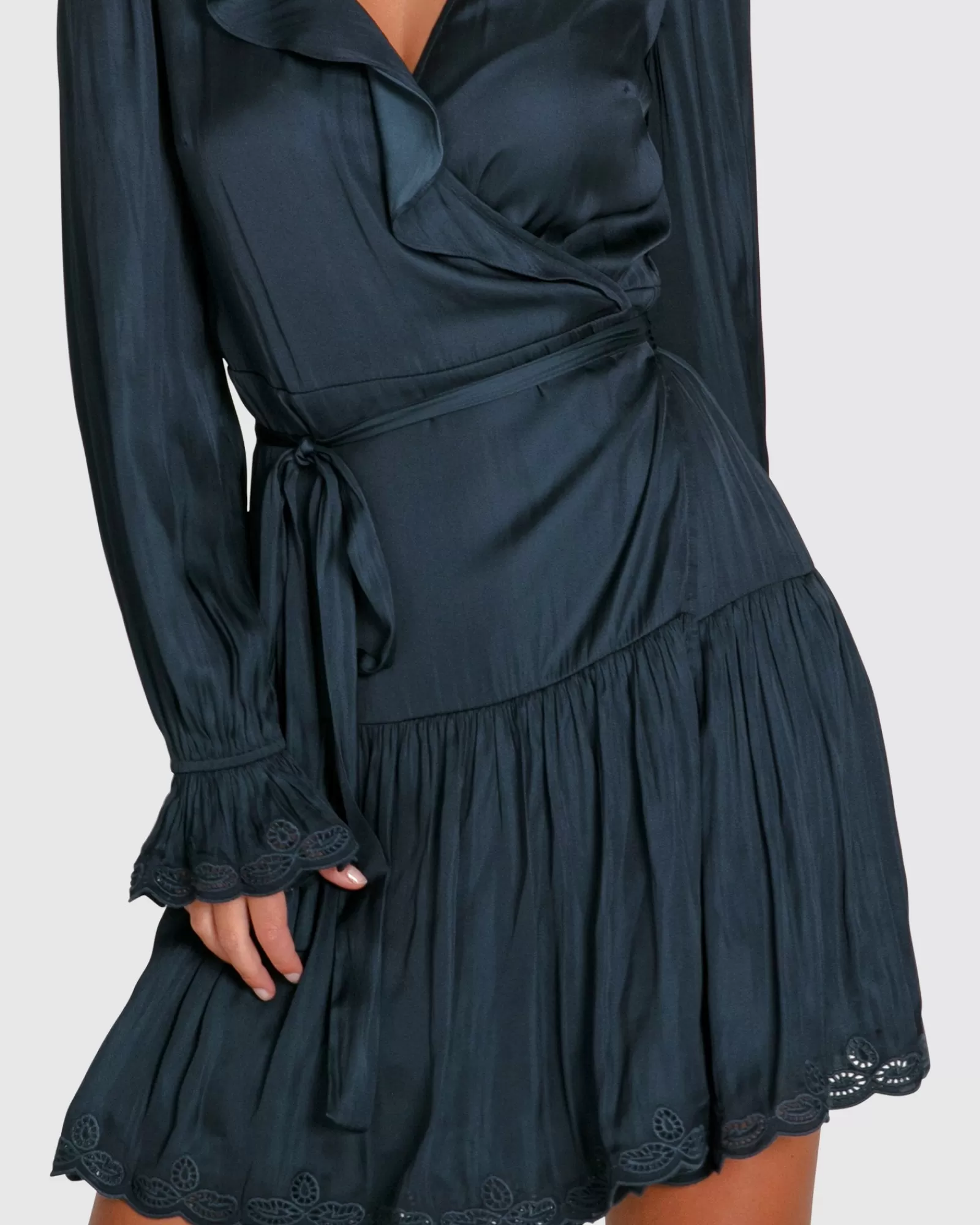Delicate embroidery trails around the cuffs and hem of the Wild Flower Embroidered Wrap Dress, whilst a tie waist ensures the perfect adjustable fit on this flattering wardrobe go-to.