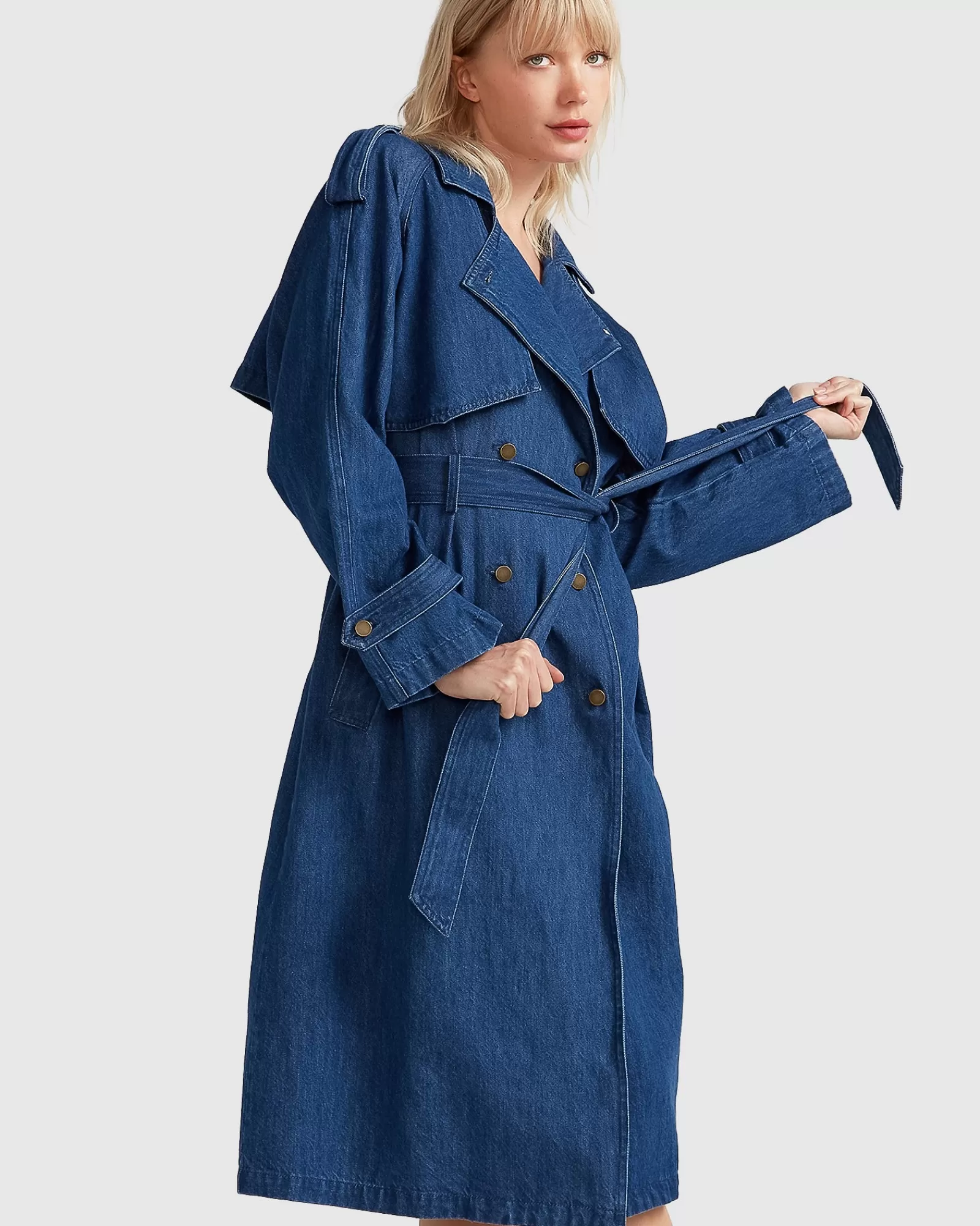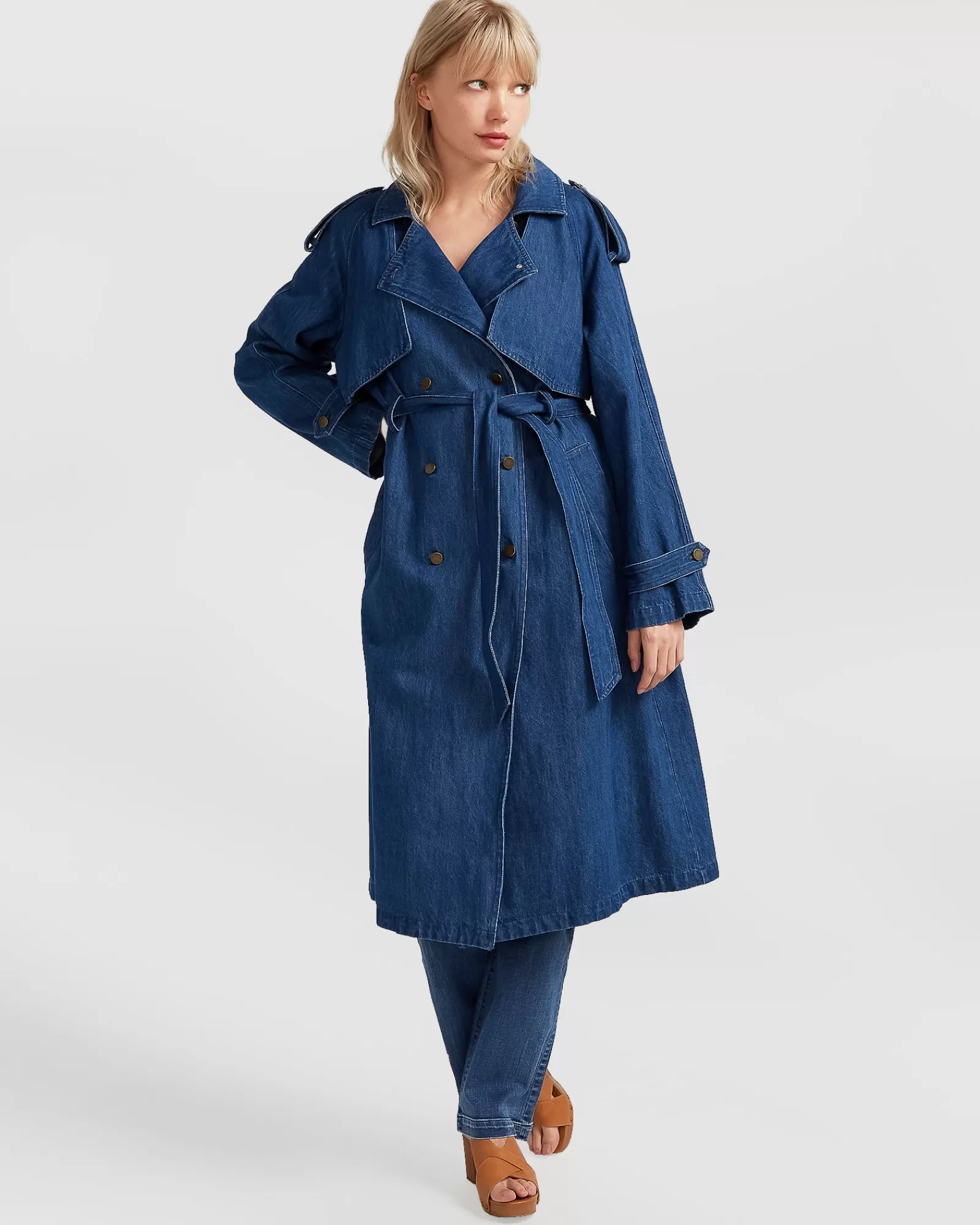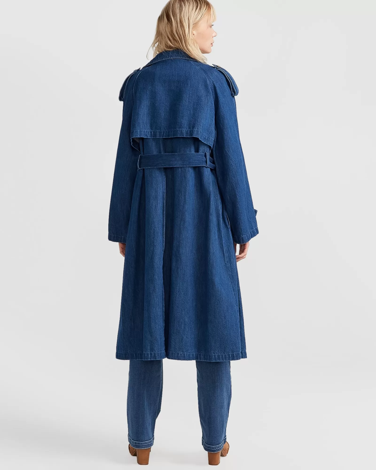 Sleek, dark denim provides a modern take on the classic trench coat. Giving the Wild Skies Denim Trench a decidedly po…
