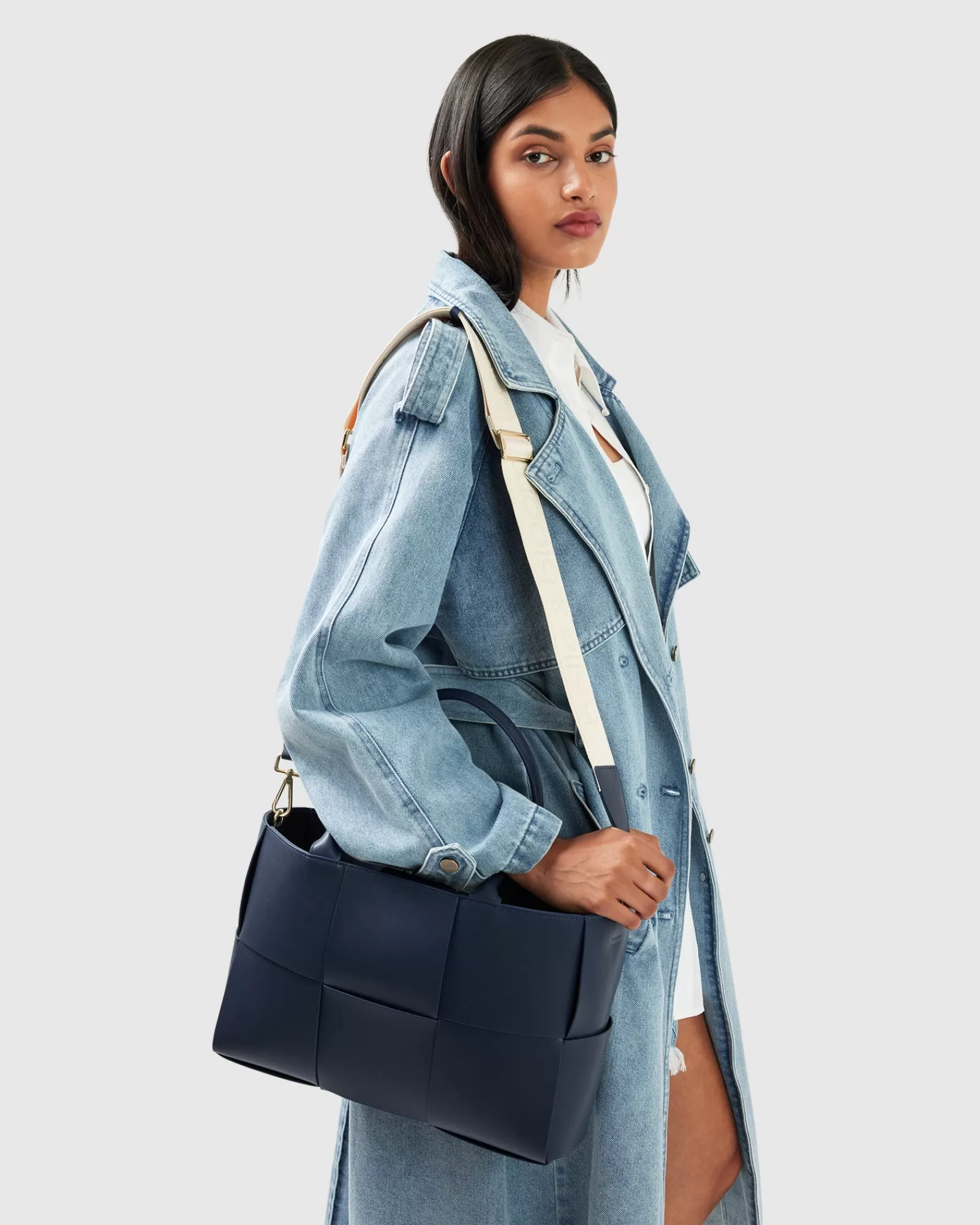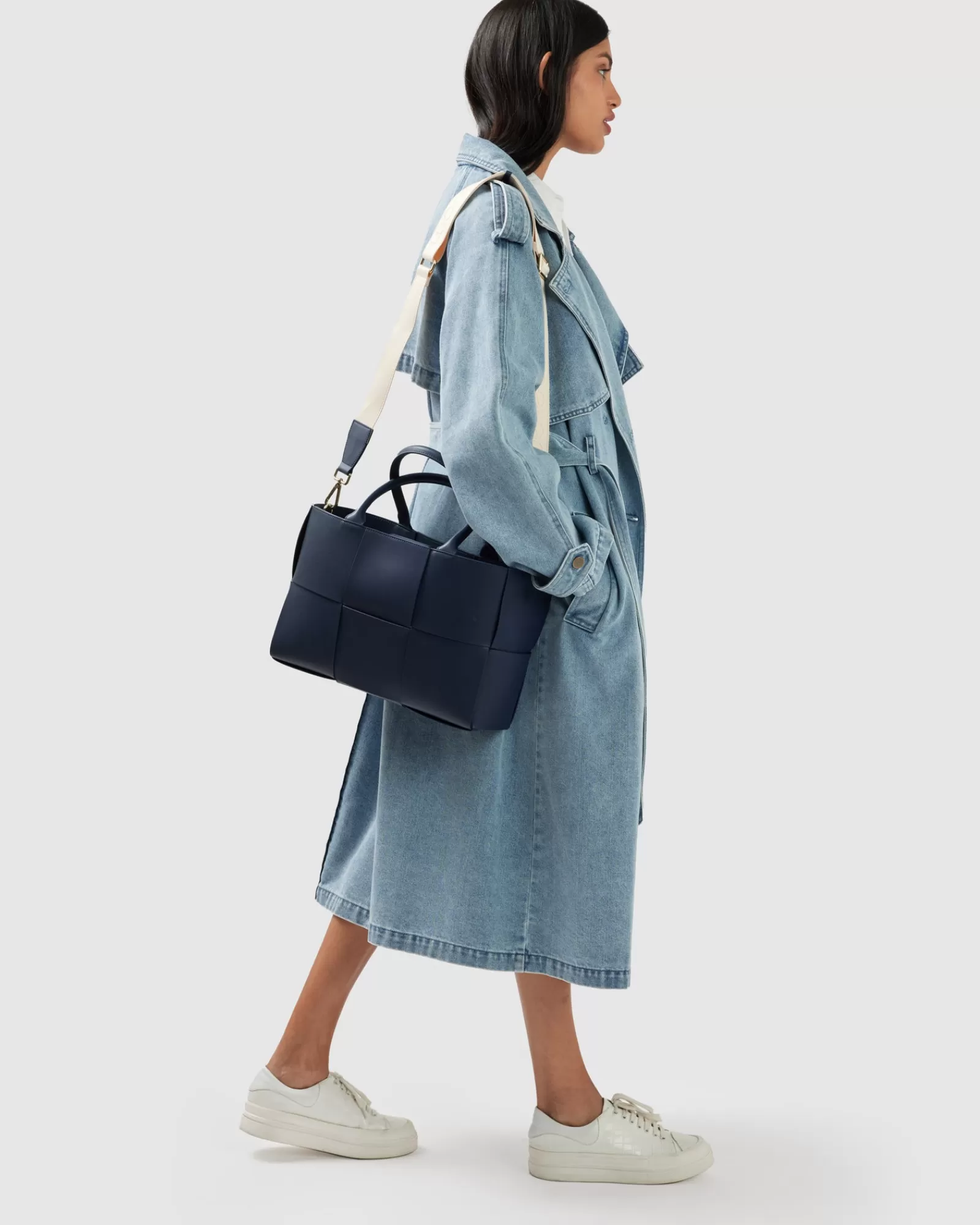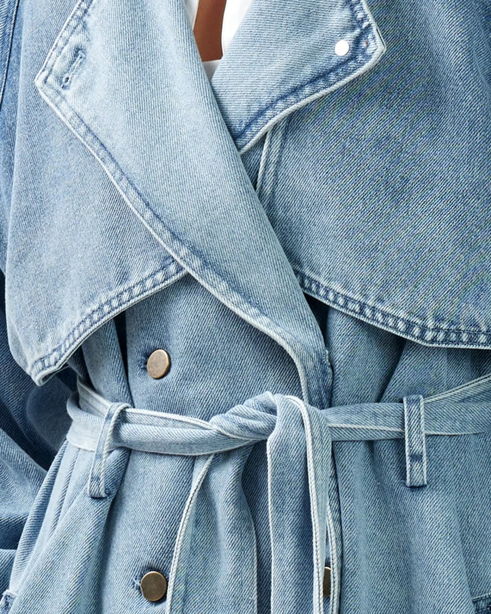 Sleek, dark denim provides a modern take on the classic trench coat. Giving the Wild Skies Denim Trench a decidedly powerful look.