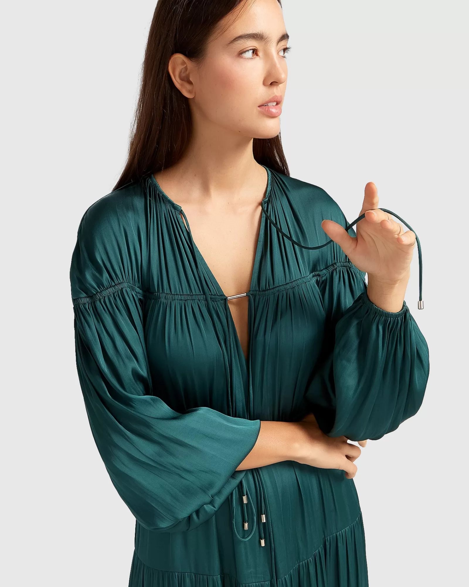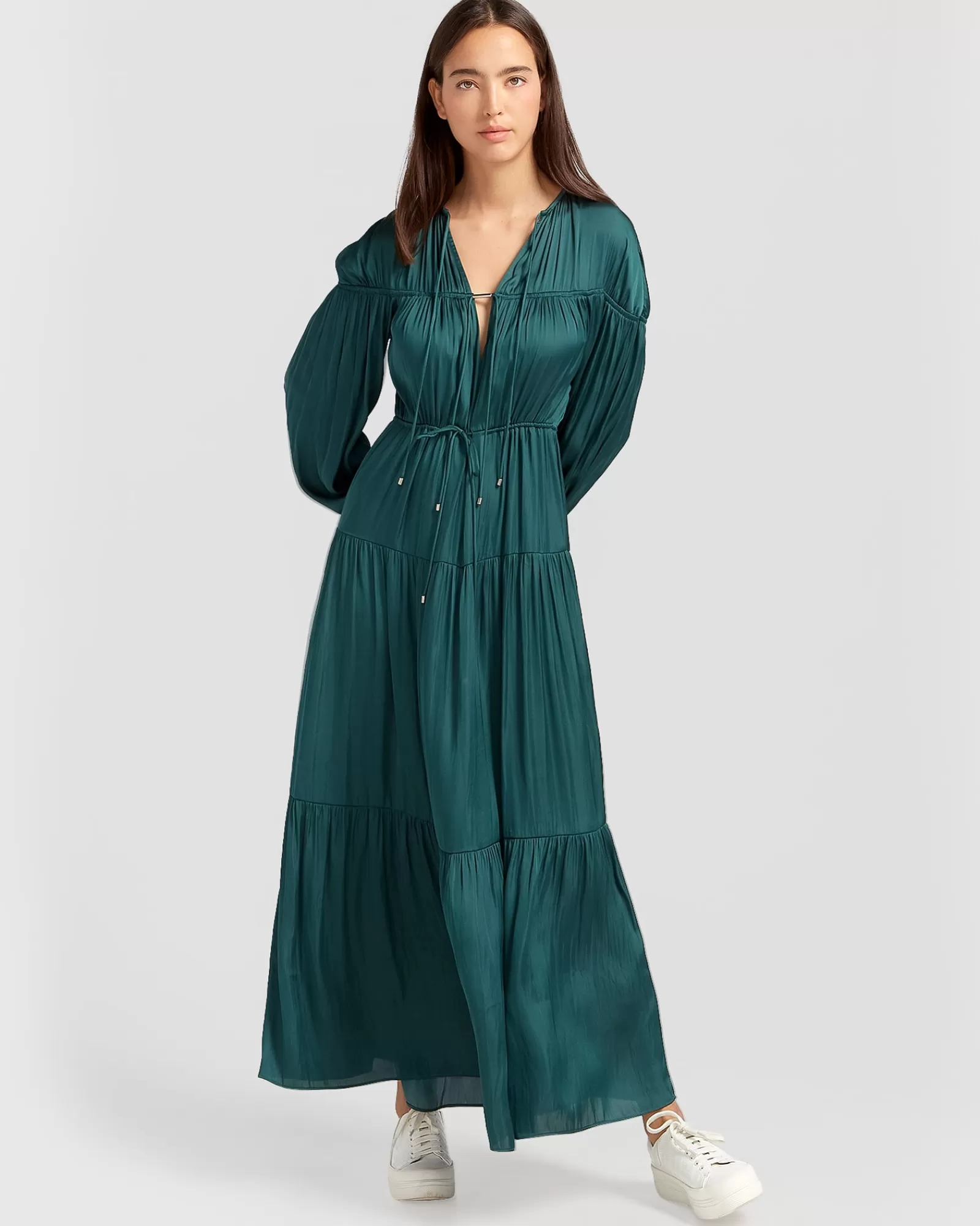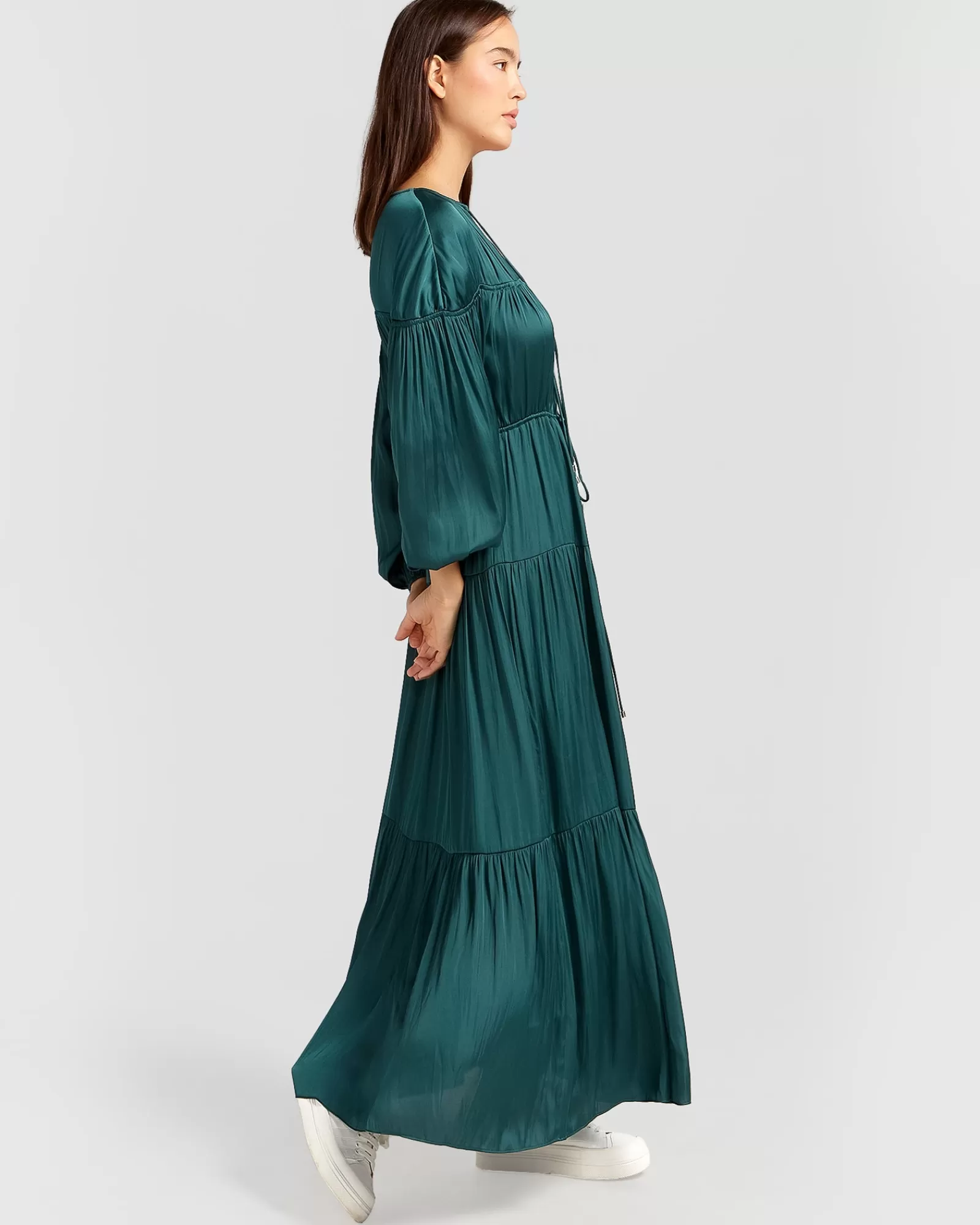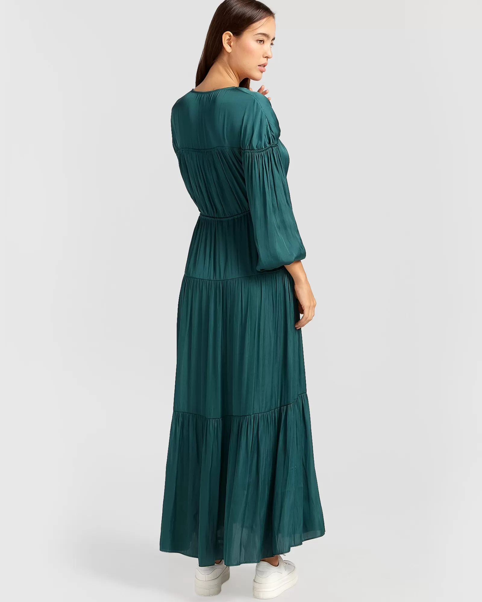 Enjoy the freedom to dress comfortably while still looking beautiful in our luxe Window Seat Tiered Maxi Dress. Featuring voluminous bishop sleeves, a plunging neckline and tiered skirt that makes you feel like you are walking through a field of flowers.