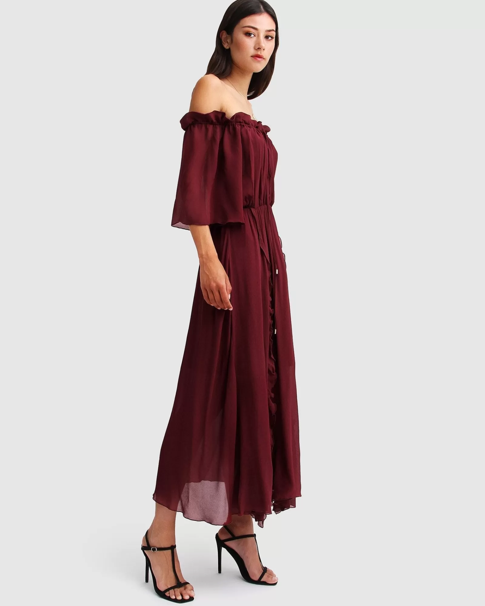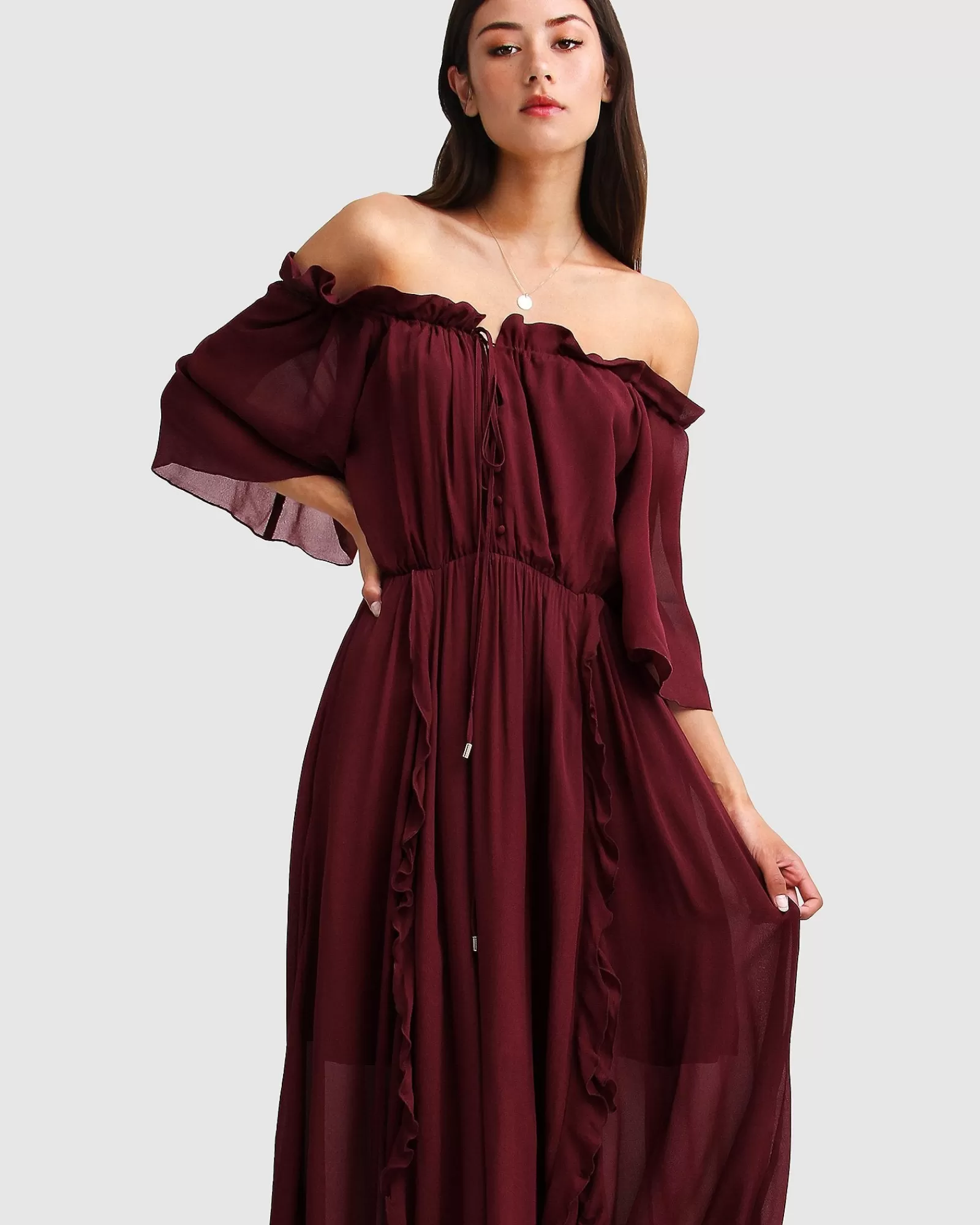 The Amour Amour Ruffled Midi Dress is an ultra boho dress, wear it on or off the shoulder. Pair it with sandals for the beach, or glam it up with heels and statement earrings for the evening.