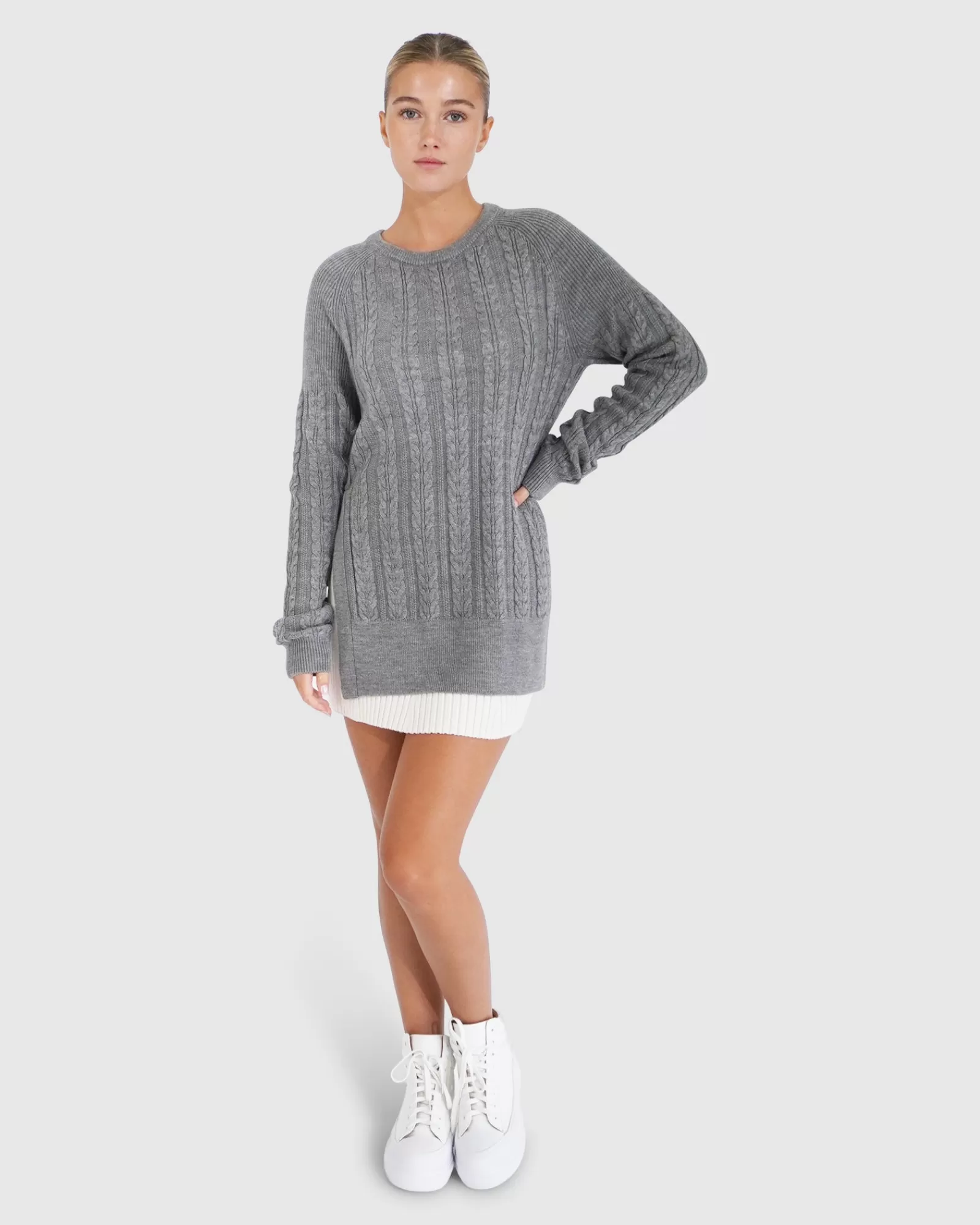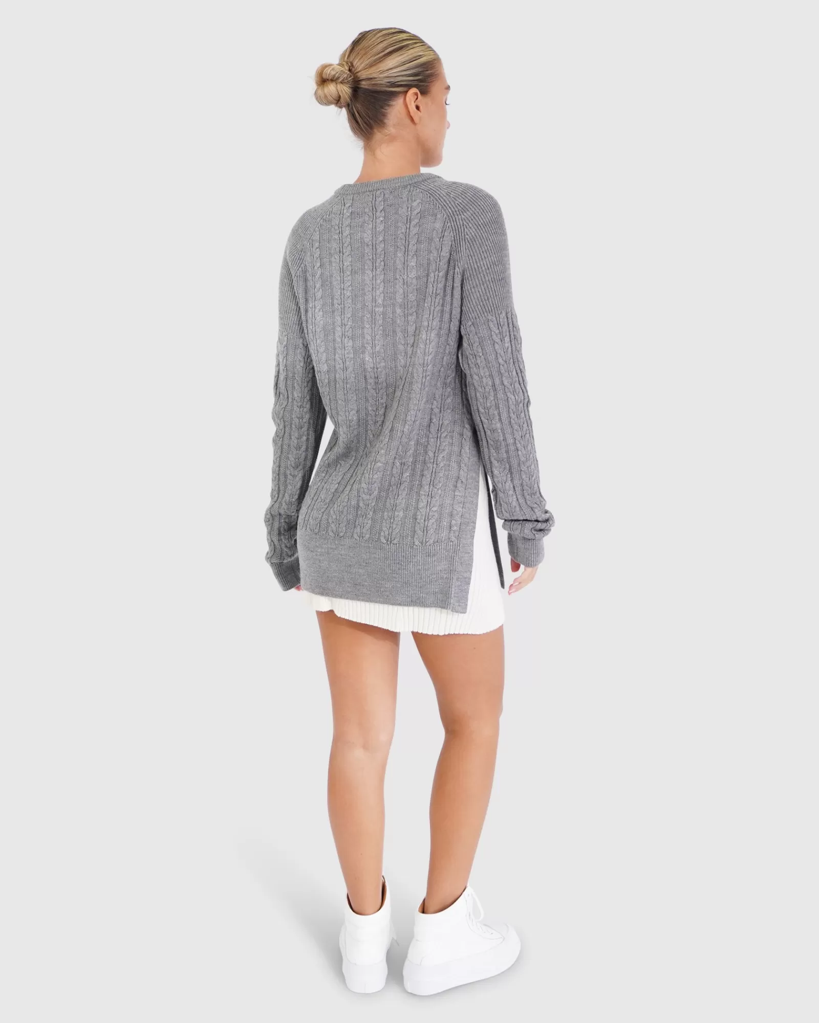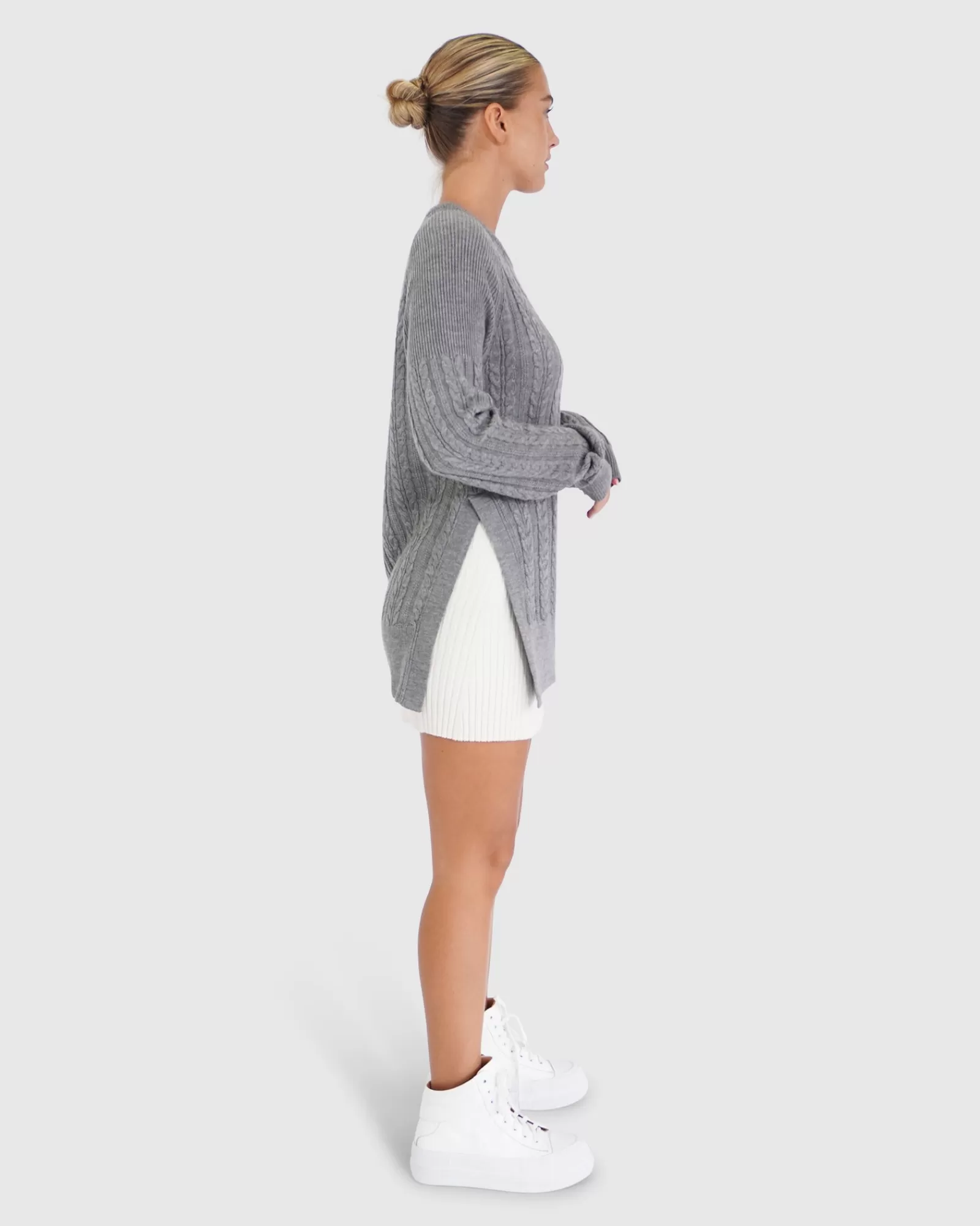 With a beautiful mix of textures, the At Last Cable Knit Jumper with Slit is expertly crafted in a soft, wool blend yarn. This casual crewneck looks great over leggings or belted over a skirt if you’re looking to dress it up.