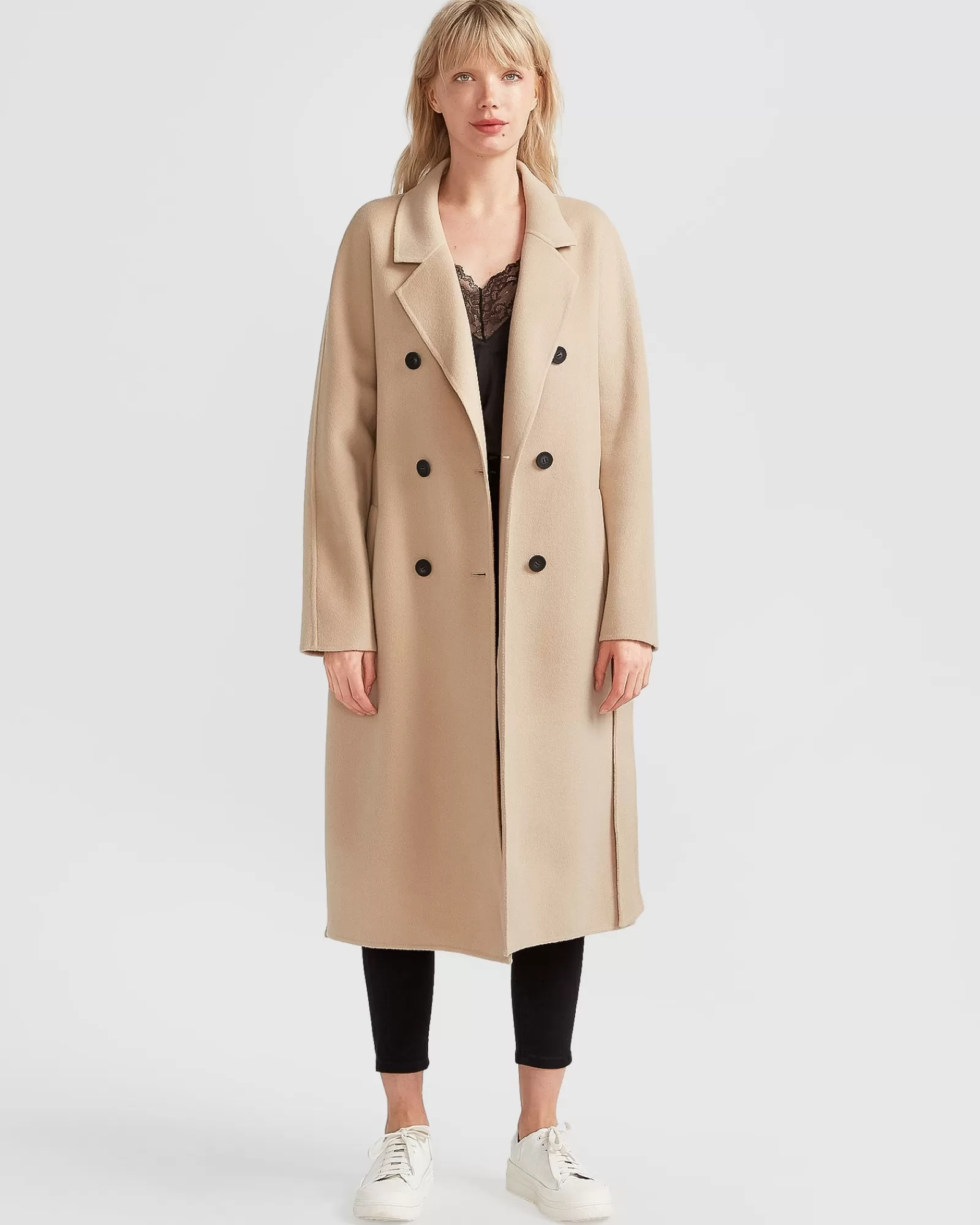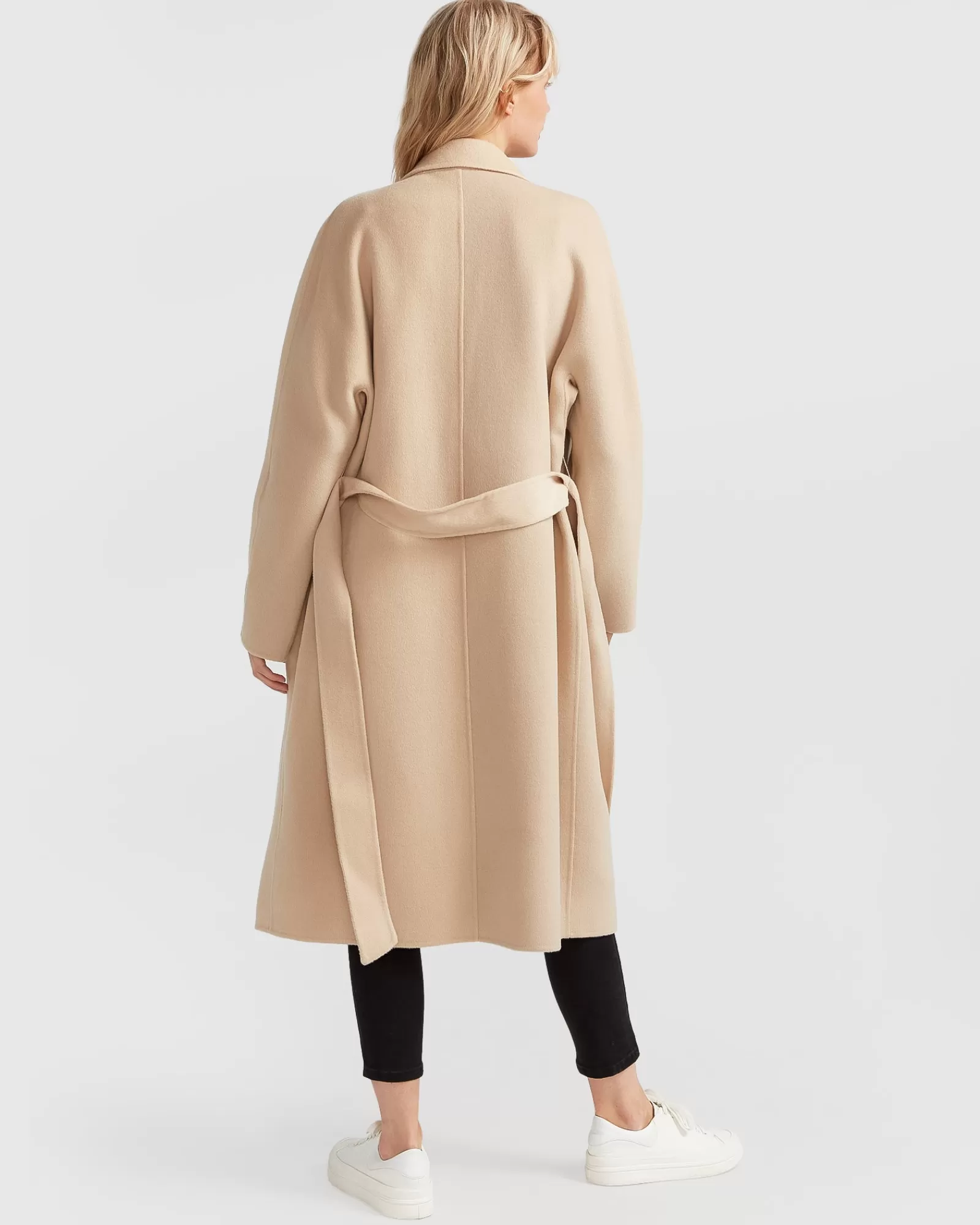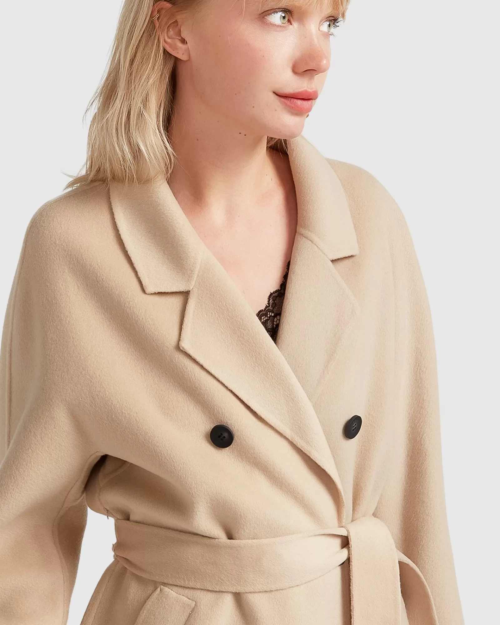 Belle & Bloom Boss Girl Double-Breasted Lined Wool Coat – Pale Oat