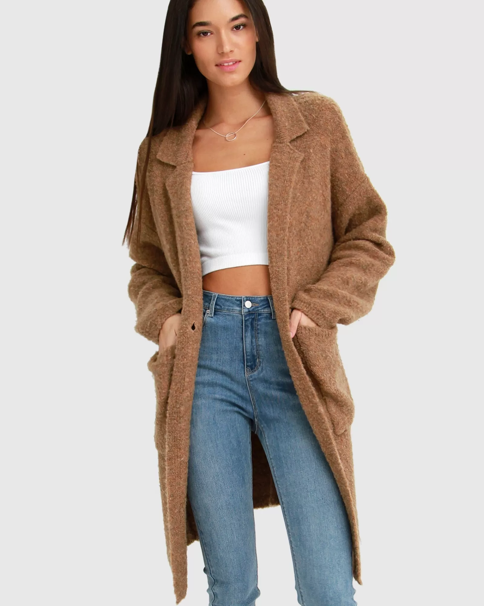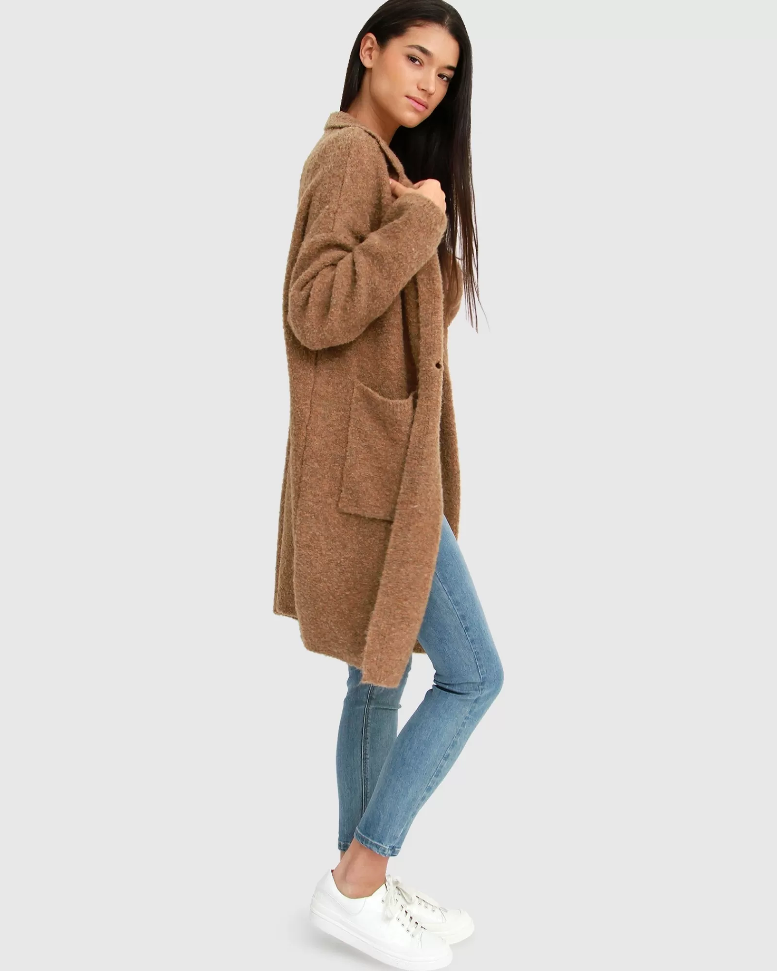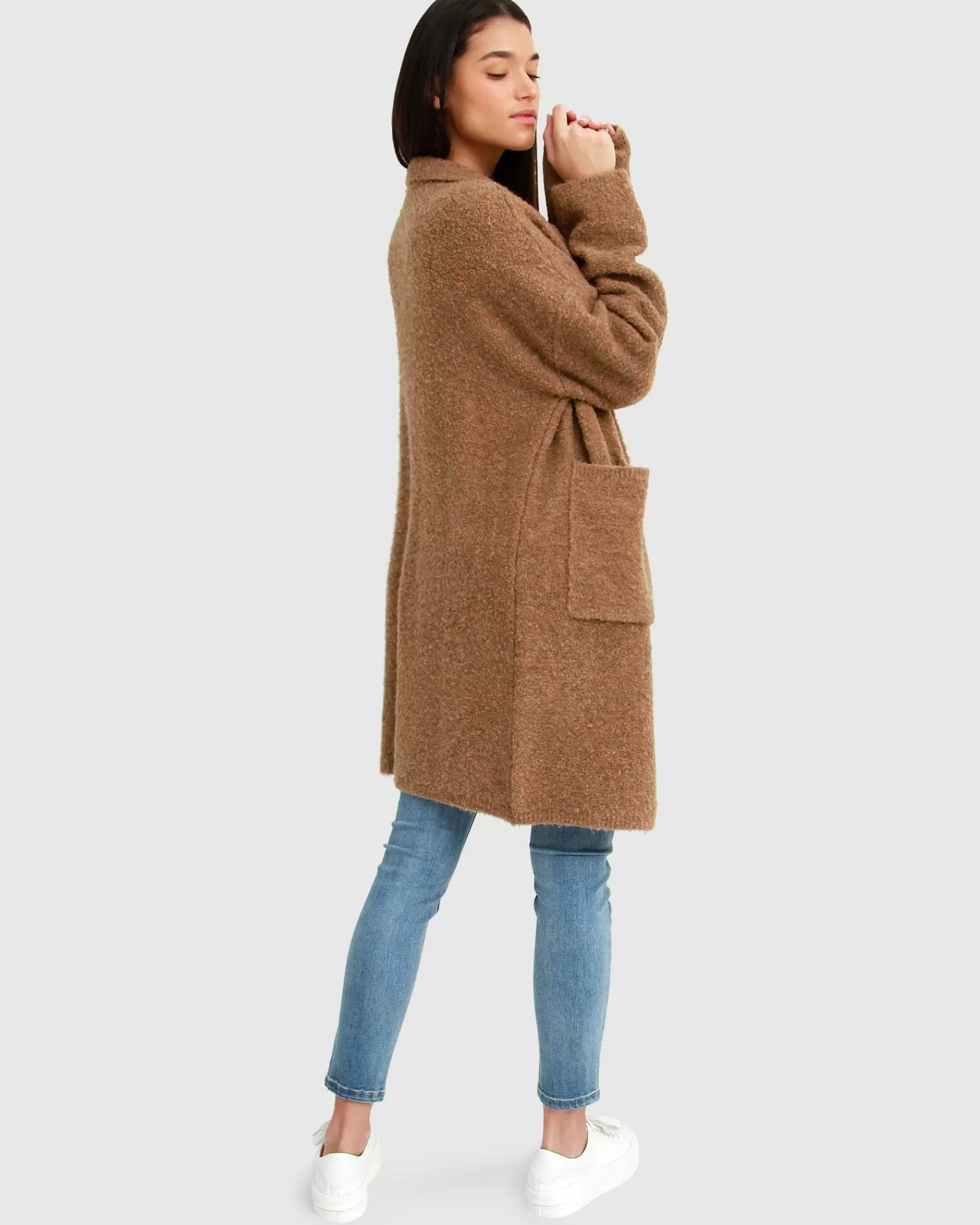 A fuzzy knit in a menswear inspired design, the Days Go By Sustainable Blazer Cardigan brings even more warmth to a longline cardigan with an easy-to-layer silhouette knit in a recycled polyester blend.