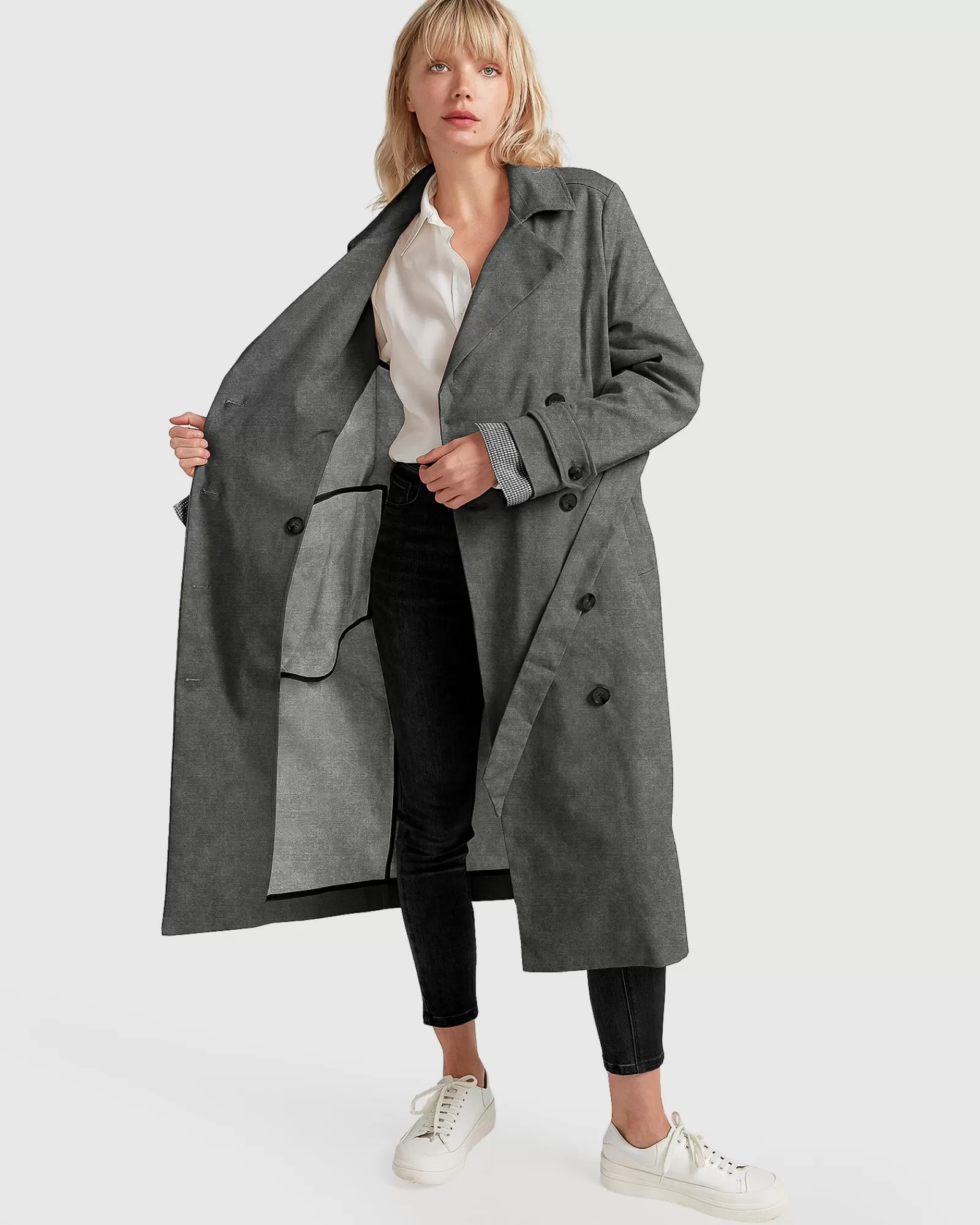 The definitive wardrobe staple: Our Empirical City Trench Coat is a classic, with a twist. Made from a heavy cotton twill, this double-breasted coat features removable cuff details and oversized styling that creates an effortlessly cool silhouette.