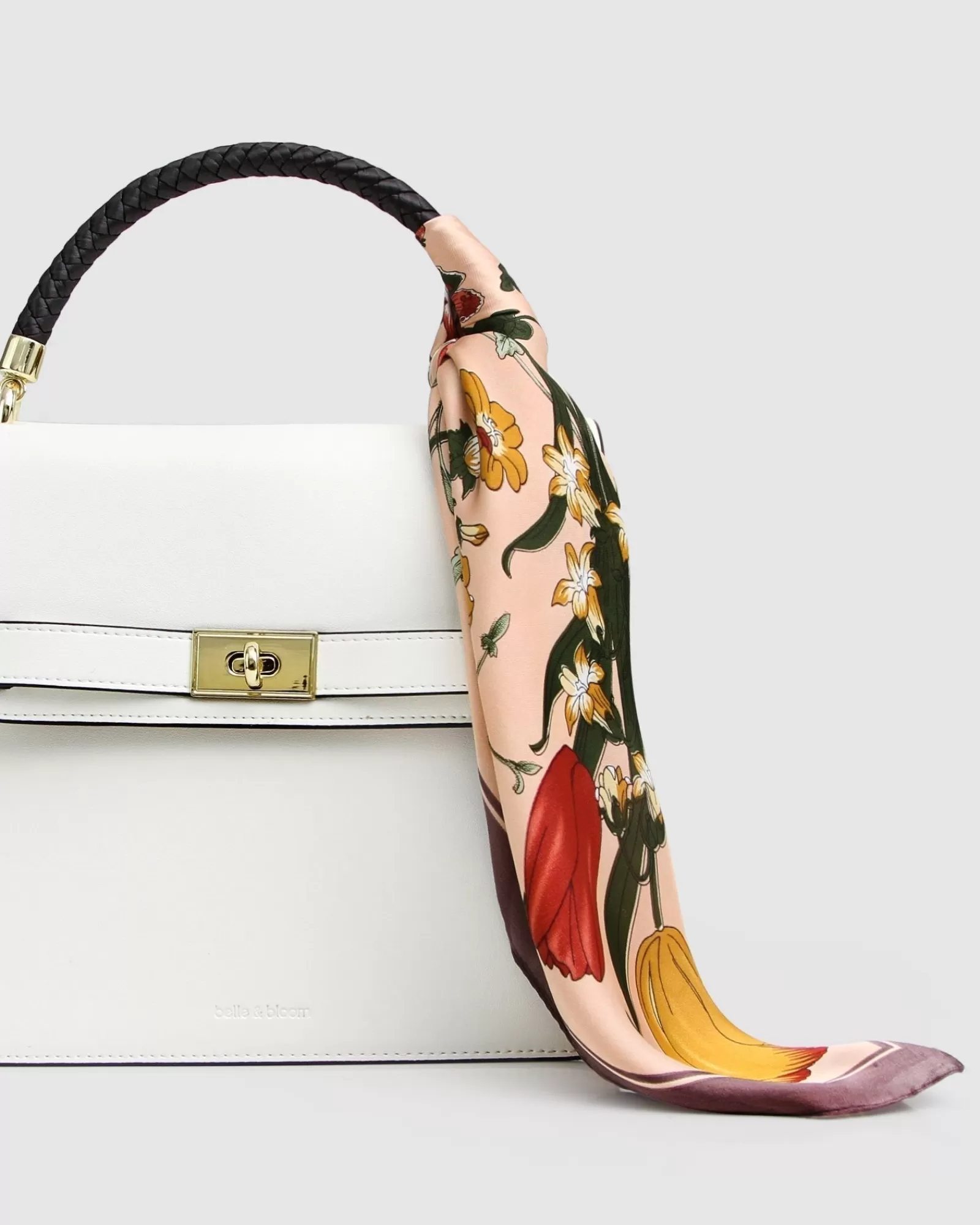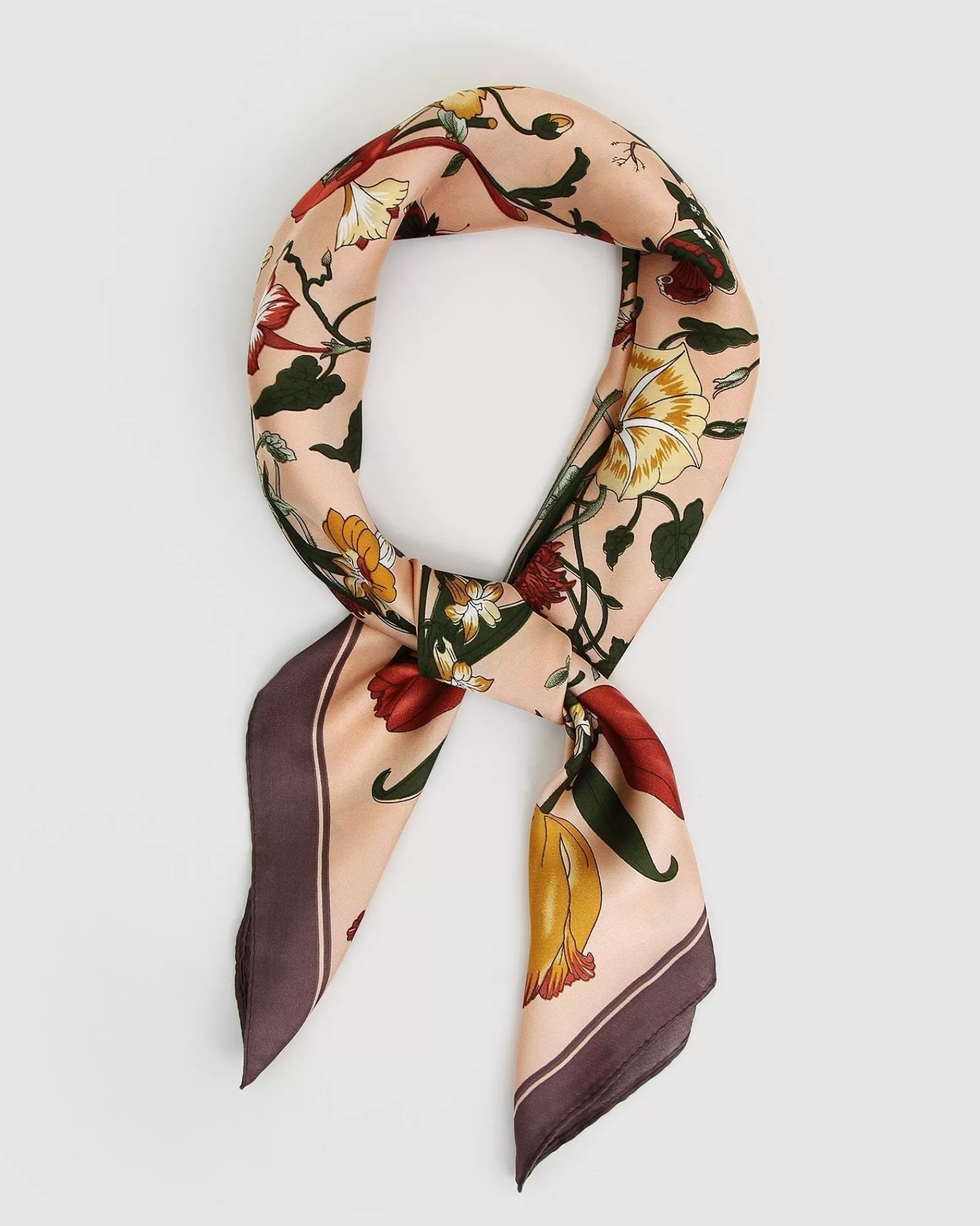 Get your hands on the hottest accessory of the season! Our English Garden Fashion Scarf features a vintage inspired floral print and rolled hems finishing. Wear it around your neck, ponytail or tie it to your favourite handbag for the bold finishing touch to any look.