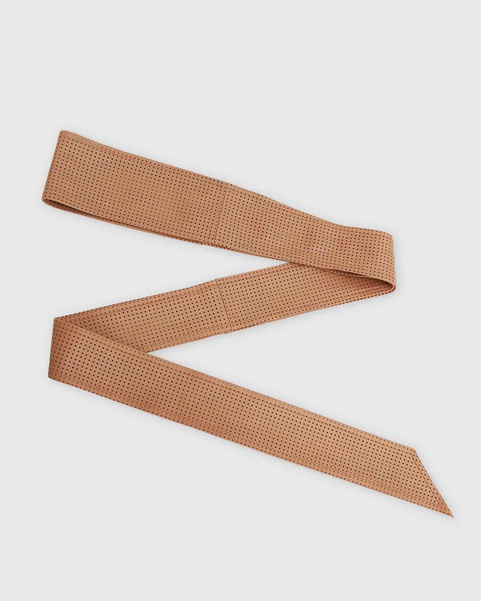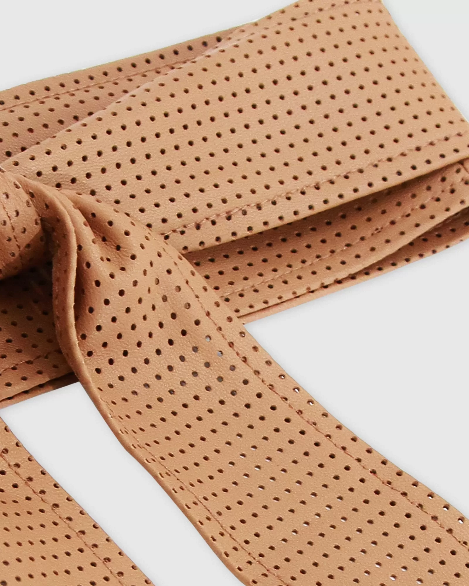 The Escalate Perforated Leather Belt takes inspiration from our Odyssey belt. This soft, flexible, leather allows you to finish your look with a knot, a bow, or a fancy twist. With mitred ends and perforated detailing the Escalate belt is sure to level up your look.