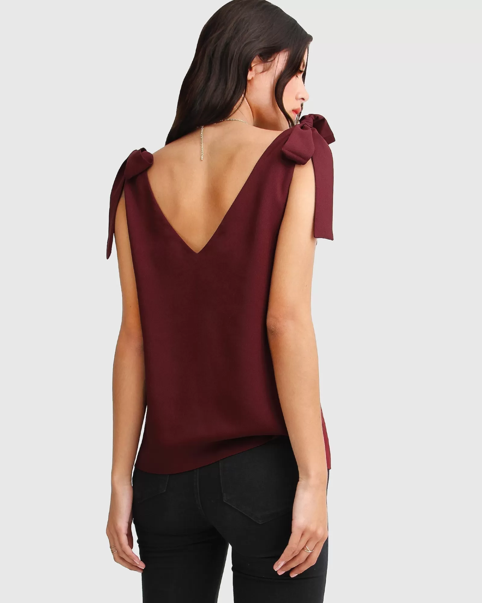 Belle & Bloom Feel For You V-Neck Top – Burgundy