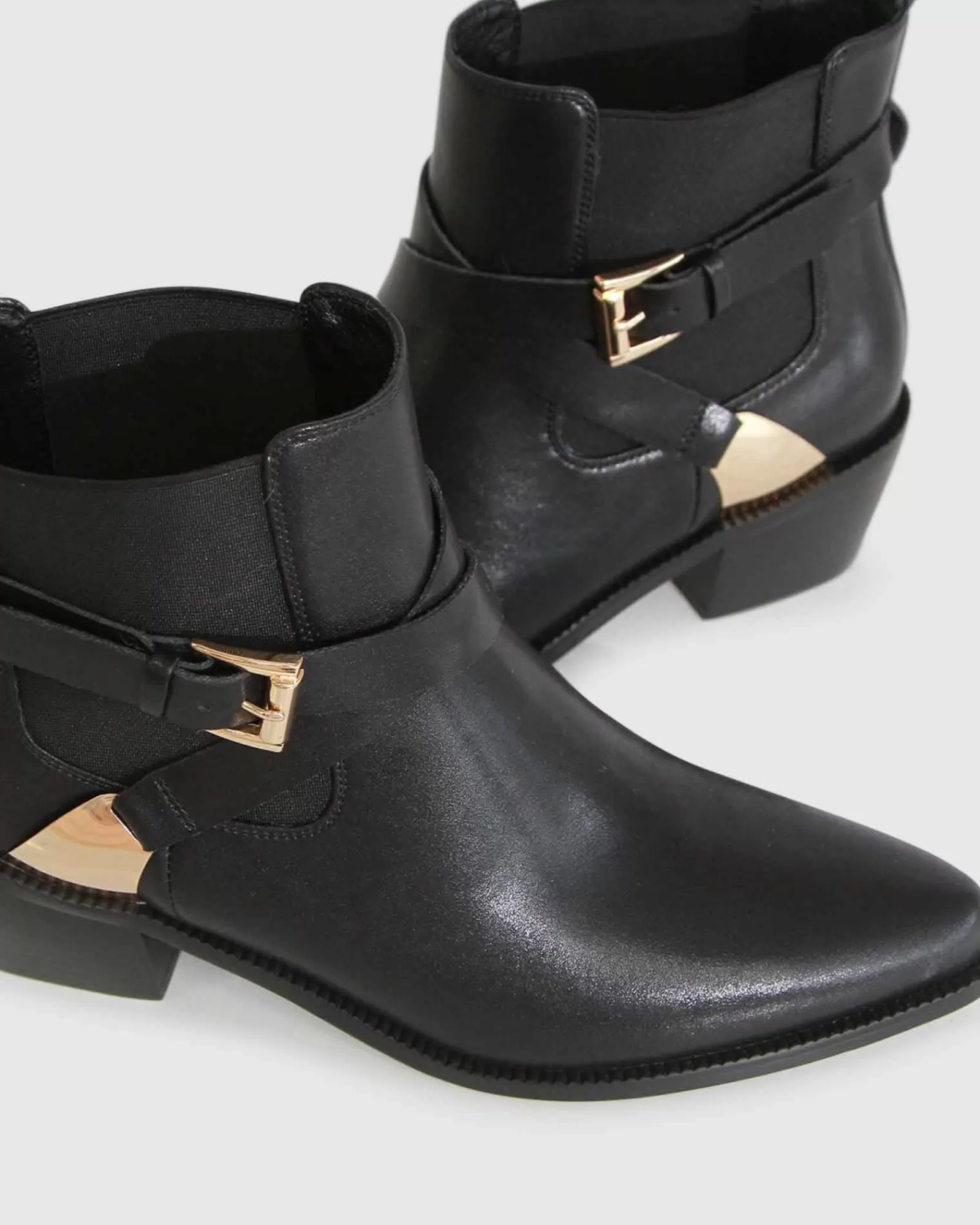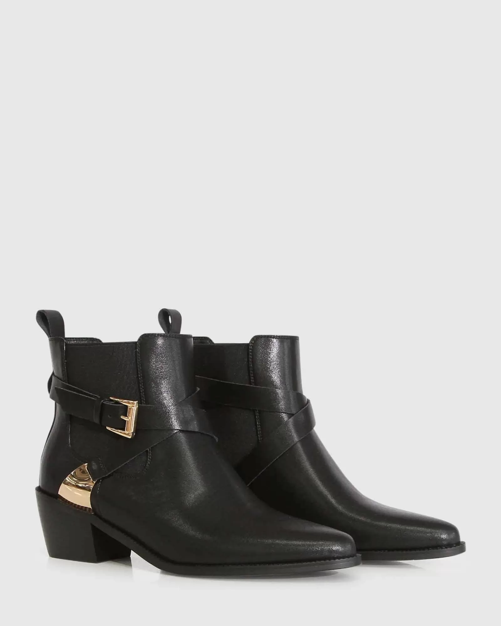 This ankle height Chelsea boot is anything but ordinary with its eye catching equestrian-inspired gold hardware and leather harness straps. Featuring an almond toe and small block heel get ready to feel elevated every day with the Full Moon Ankle Boot.