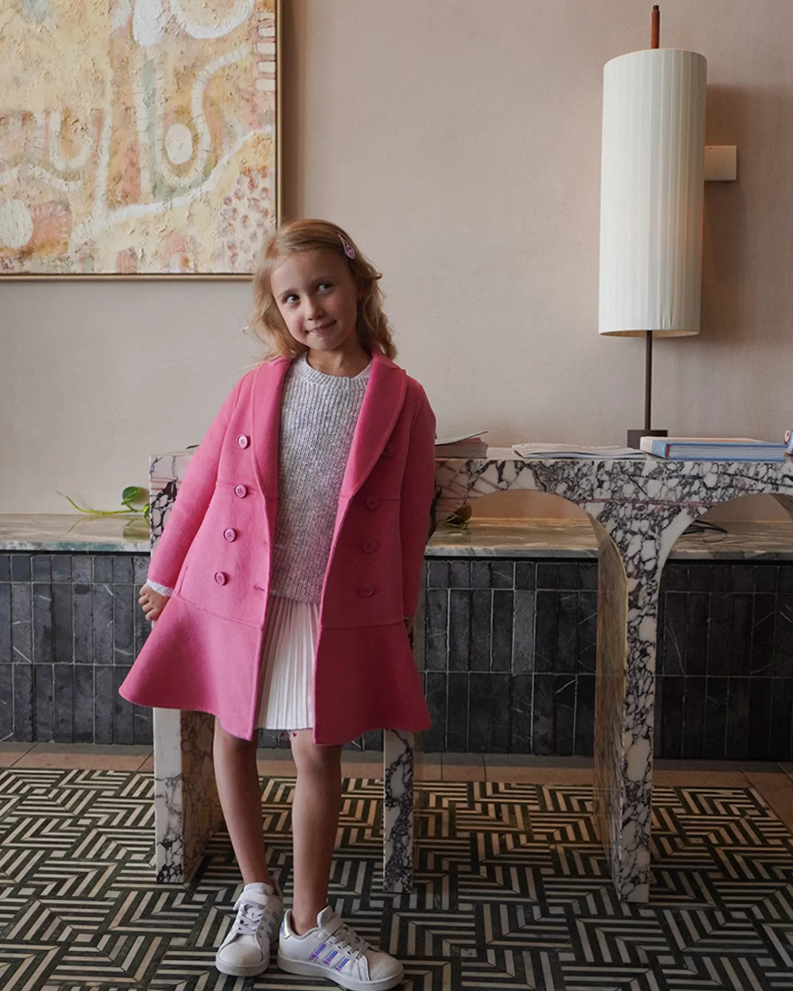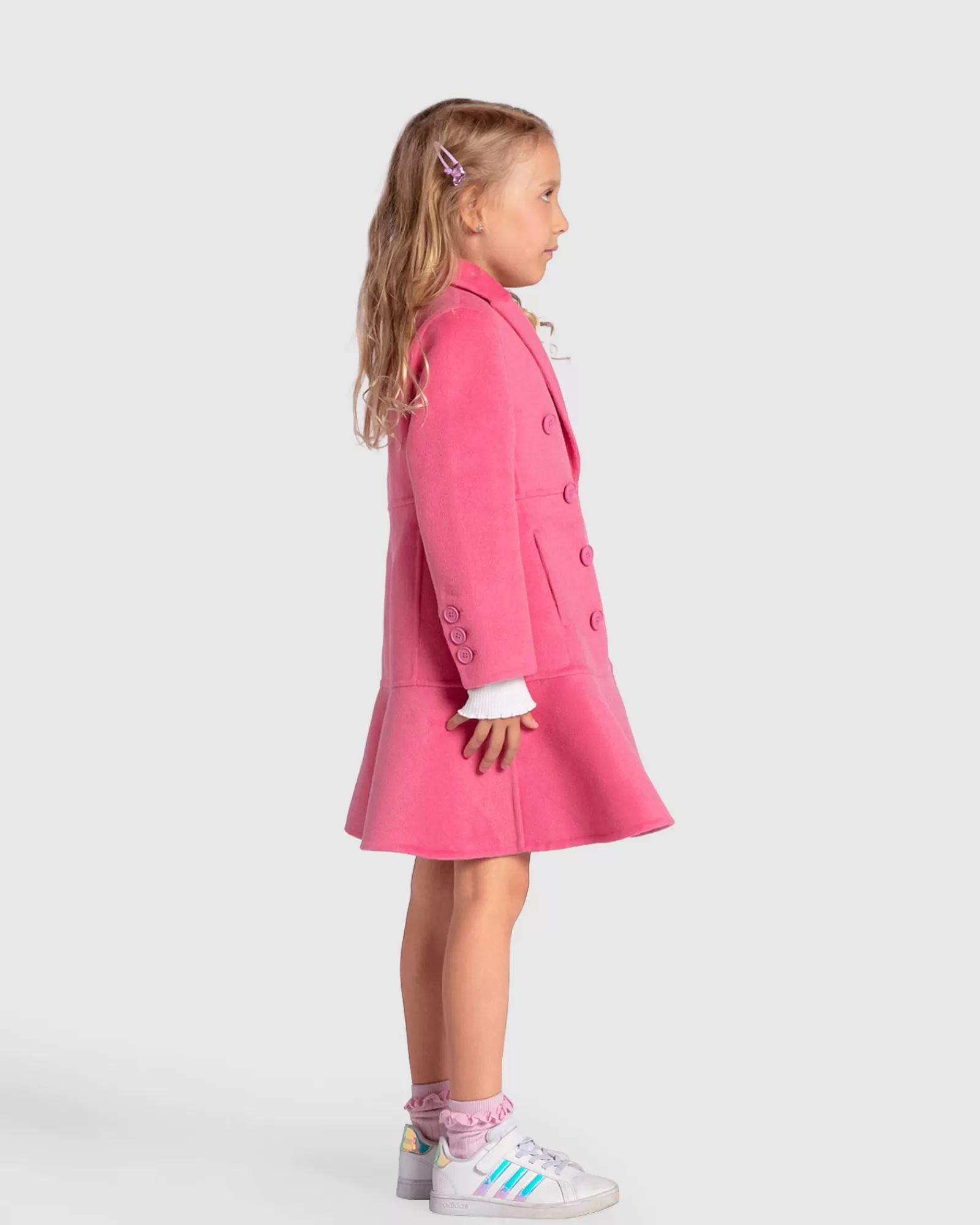 Good Manners Wool Blend Fitted Coat is a timeless wardrobe staple, crafted from our signature double-brushed wool. This hot pink coat’s slender fit is highlighted by a lovely peplum detail, making it a standout piece in your child’s wardrobe. The design has been carefully considered to make sure your young one looks effortlessly chic and elegant while rocking this vibrant colour.