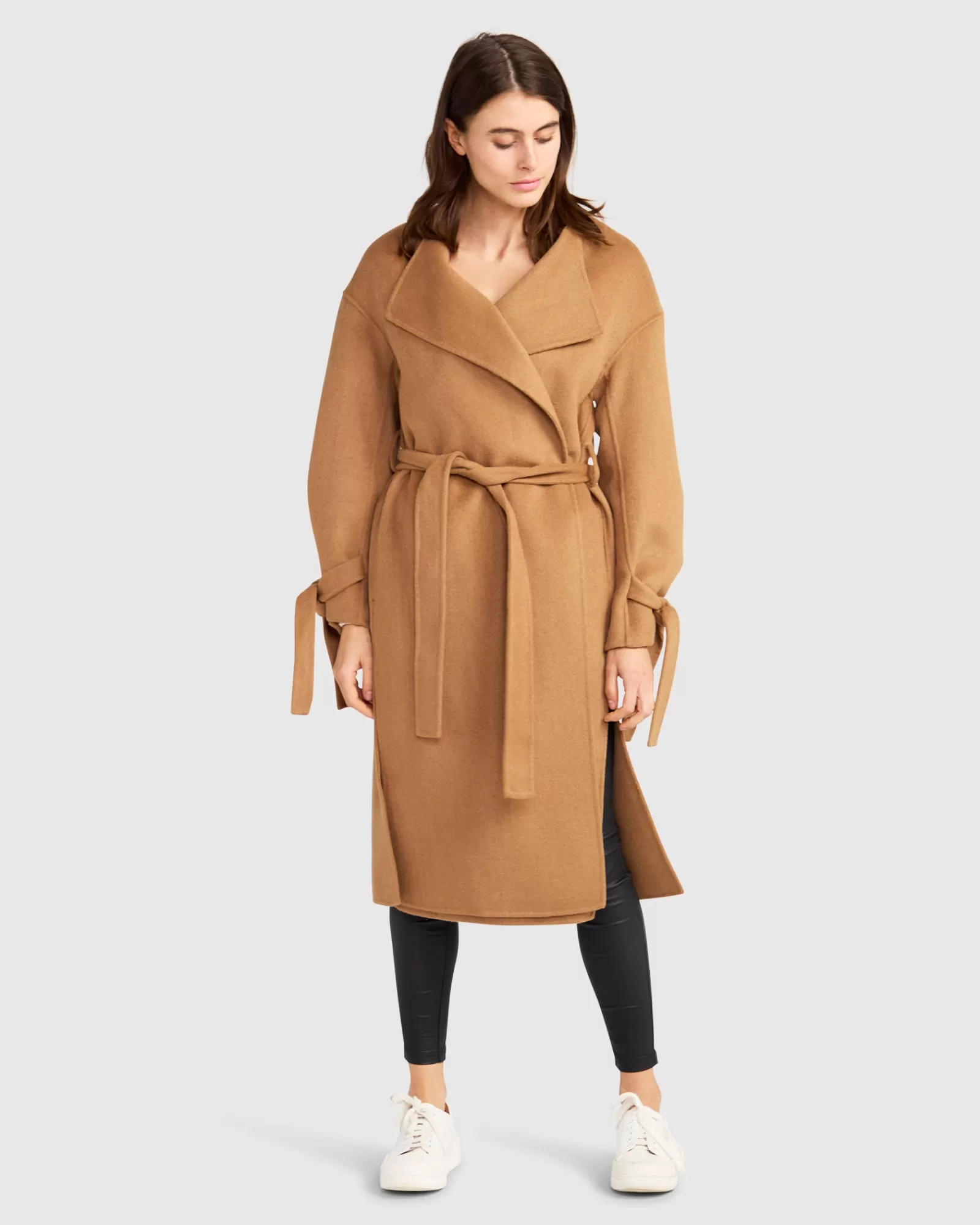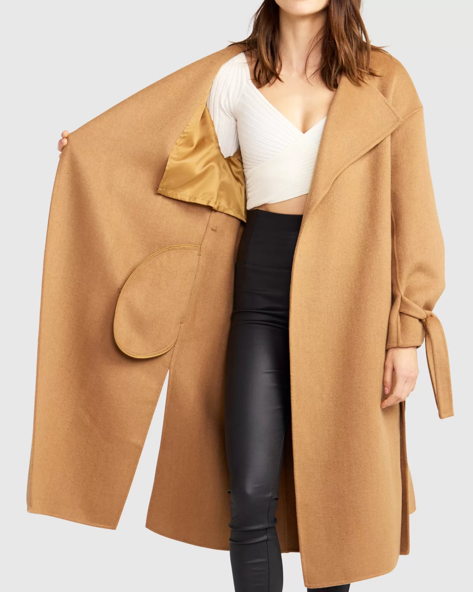 A lesson in effortless chic, the Head Over Heels Collarless Robe Coat is a relaxed wrap coat with a draped lapel and tie…