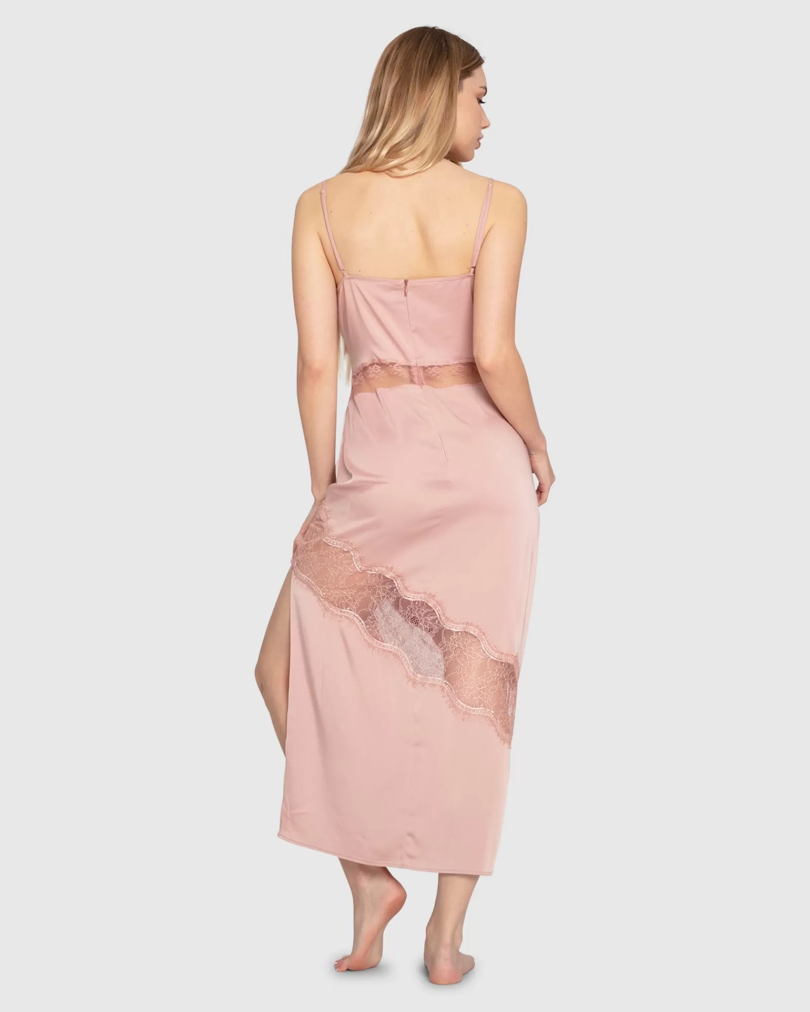 The Heavenly Bodies Lace Slip Dress is a nod to vintage glam with a contemporary twist. The soft satin and side split en…