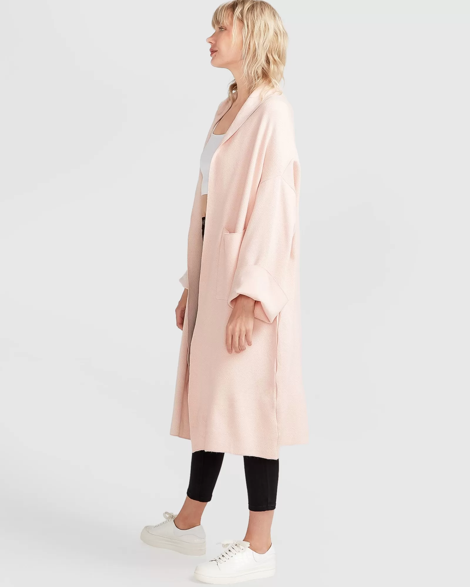 Fashion’s latest mashup, we bring you the Hold The Line Coatigan, a cardigan so big that it can double as a coat. It’s easy to throw on for cool summer nights or year round. Fold up the sleeves and enjoy the herringbone pattern over any casual look.