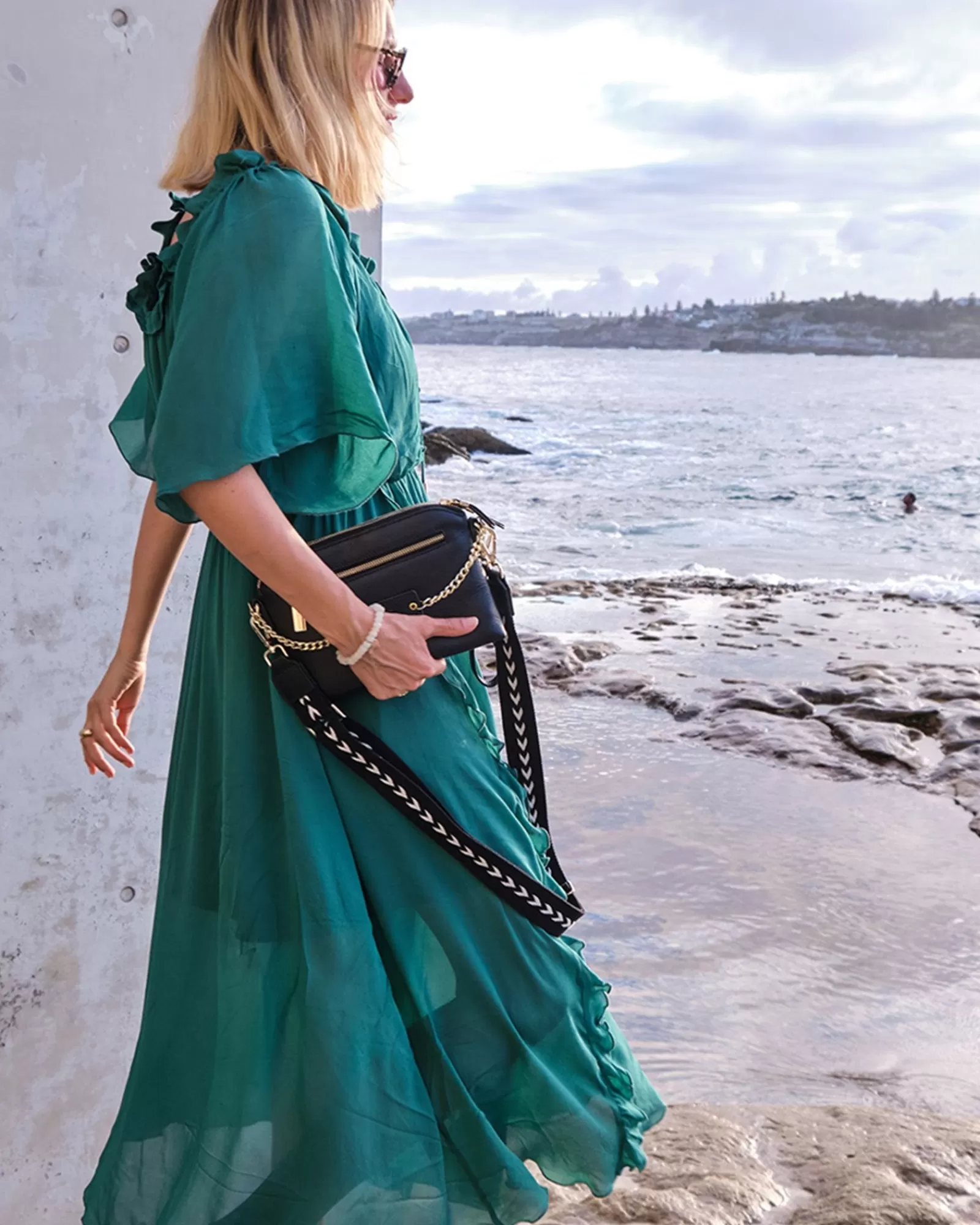 - Gold-tone hardware
