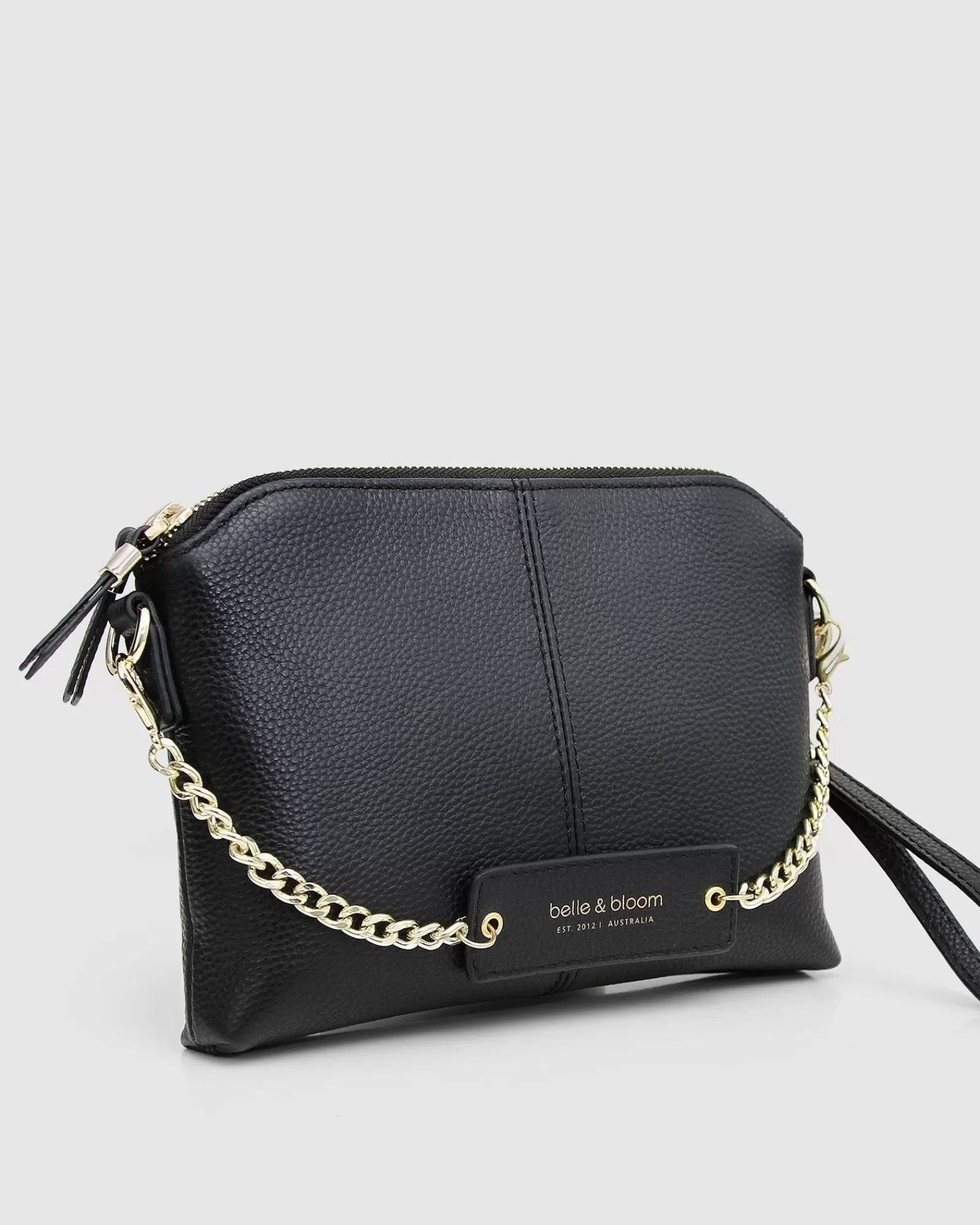 - Detachable decorative chain with leather logo badge