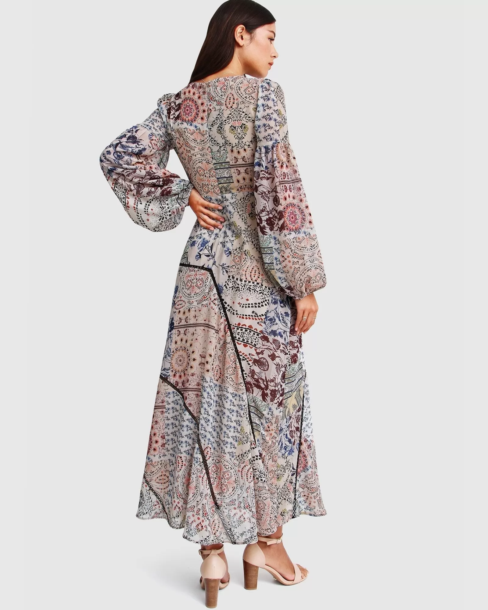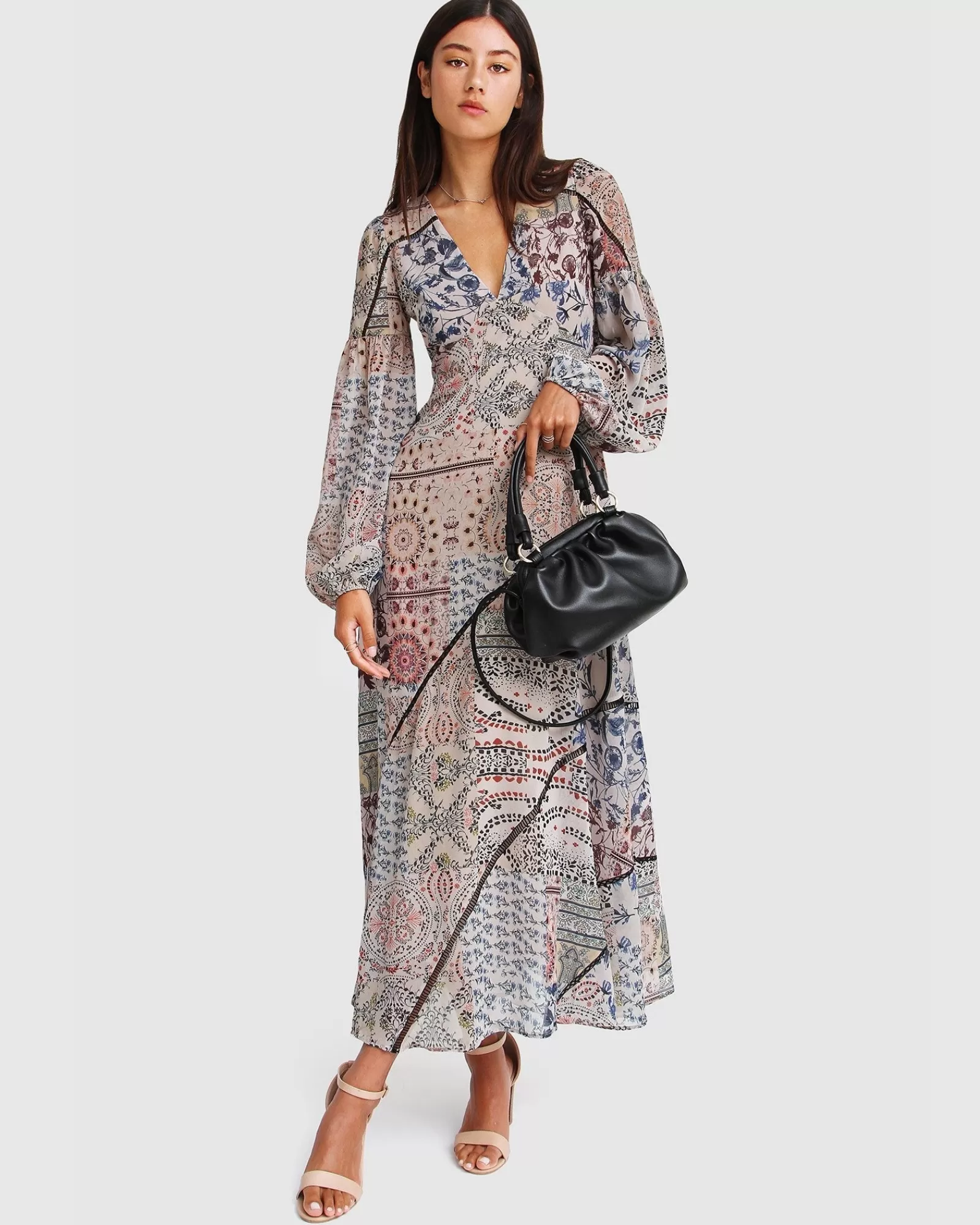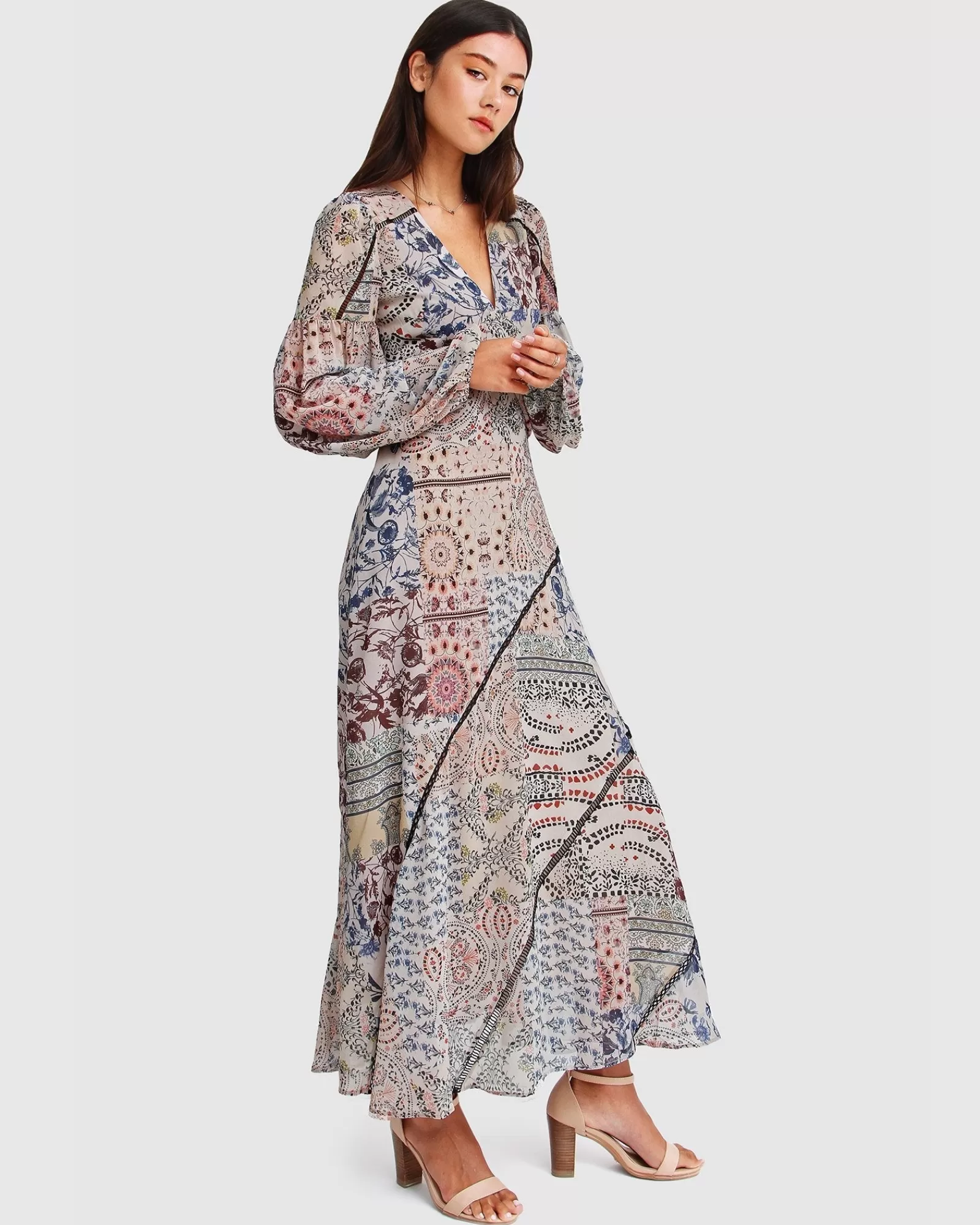 Beautifully cut on the bias, the In Your Dreams Maxi Dress hugs your curves in a feminine and bohemian print complete with billowy balloon sleeves.