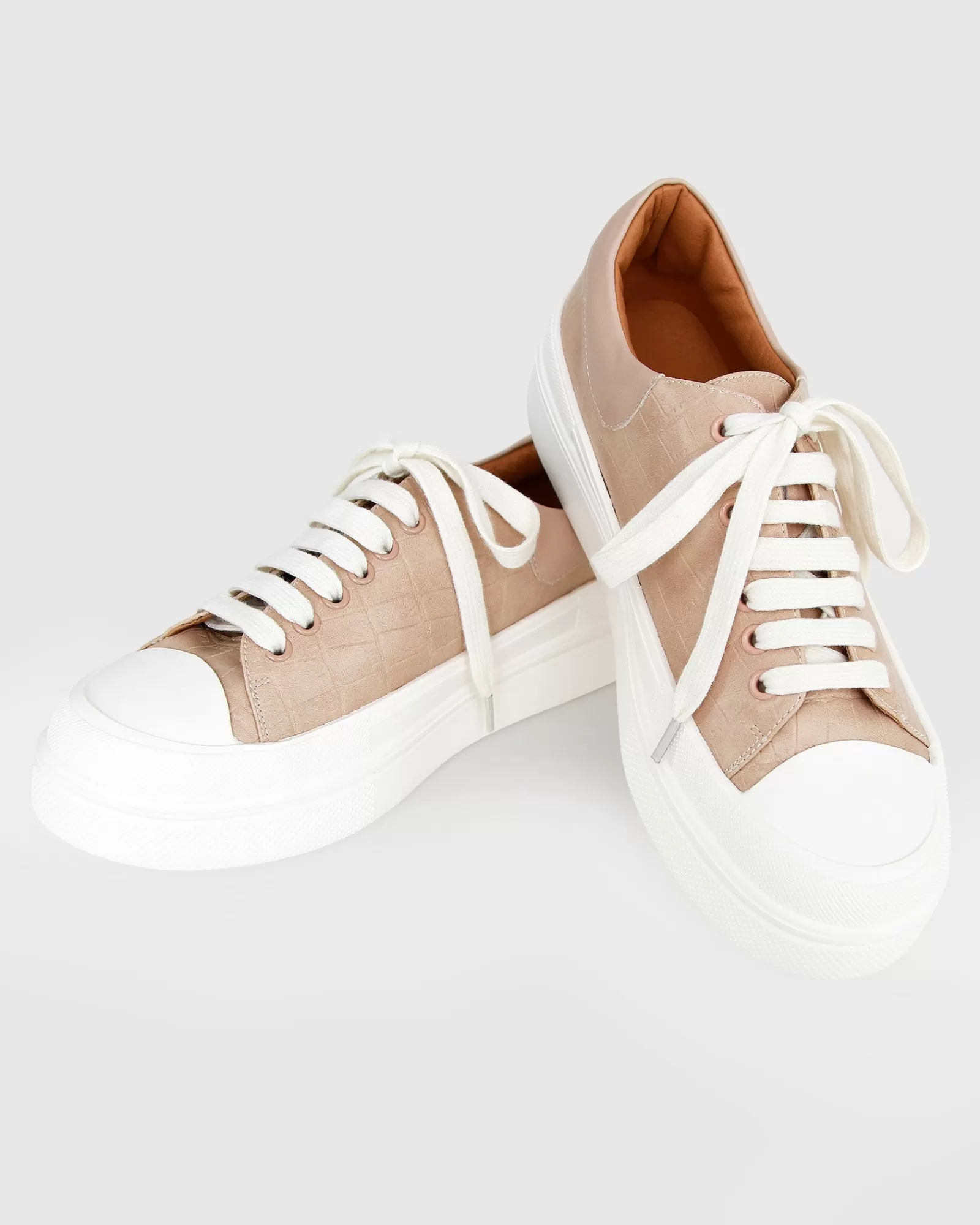 Elevate your weekend wardrobe with the Just A Dream Croc Leather Sneaker. The chunky stacked platform sole and exclusive croc embossed pattern elevate the classic silhouette while keeping it easy to style, making it the perfect essential for every wardrobe.