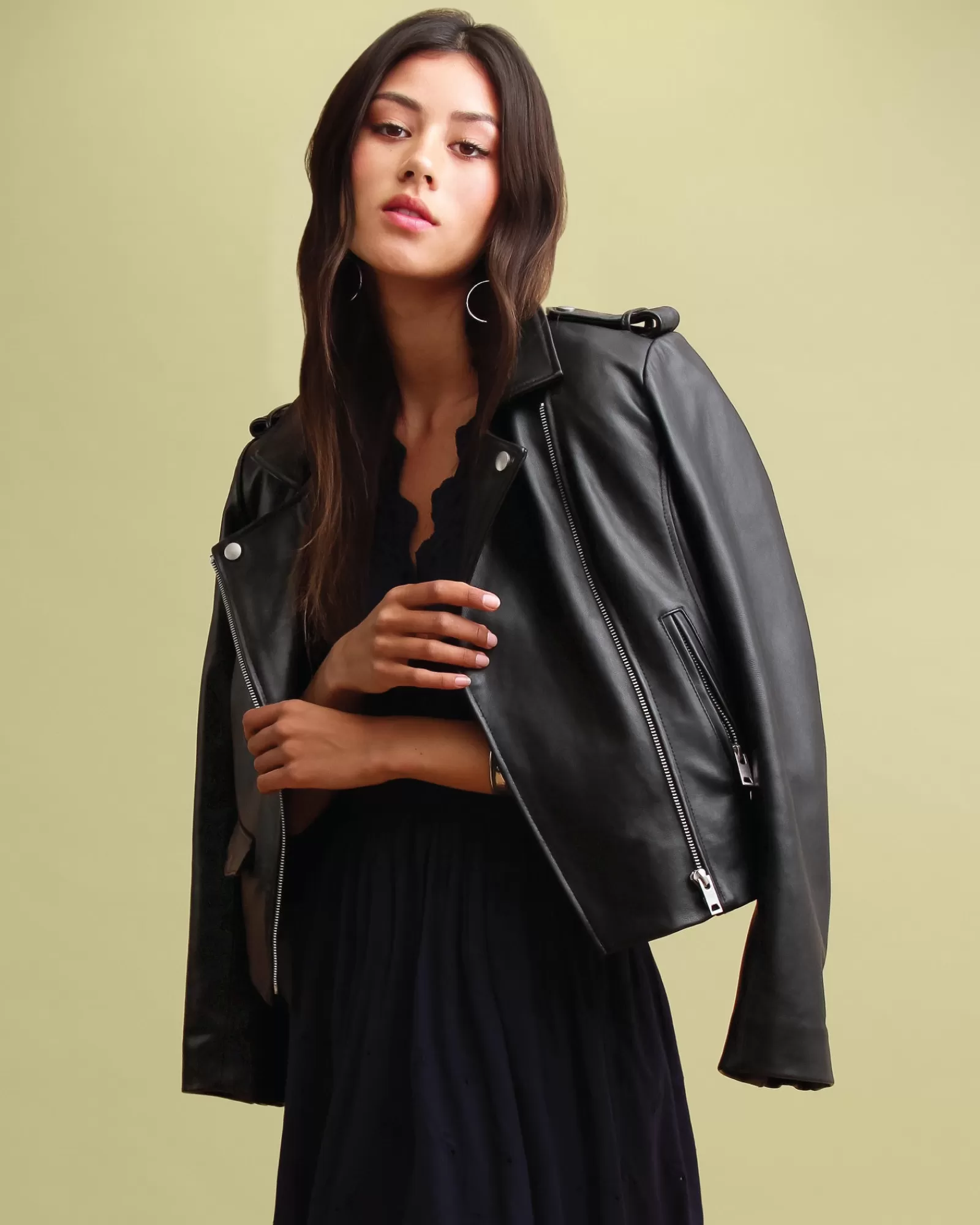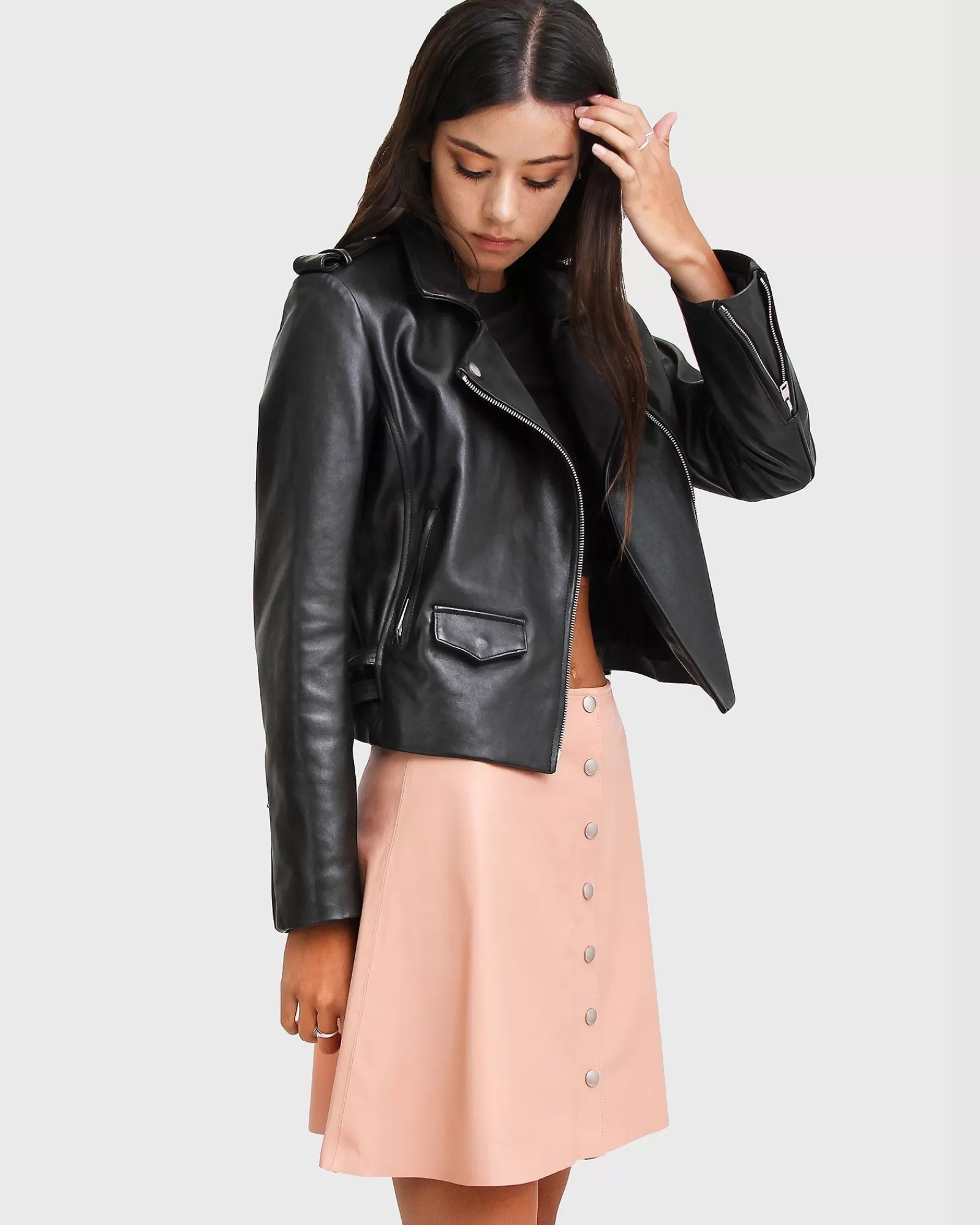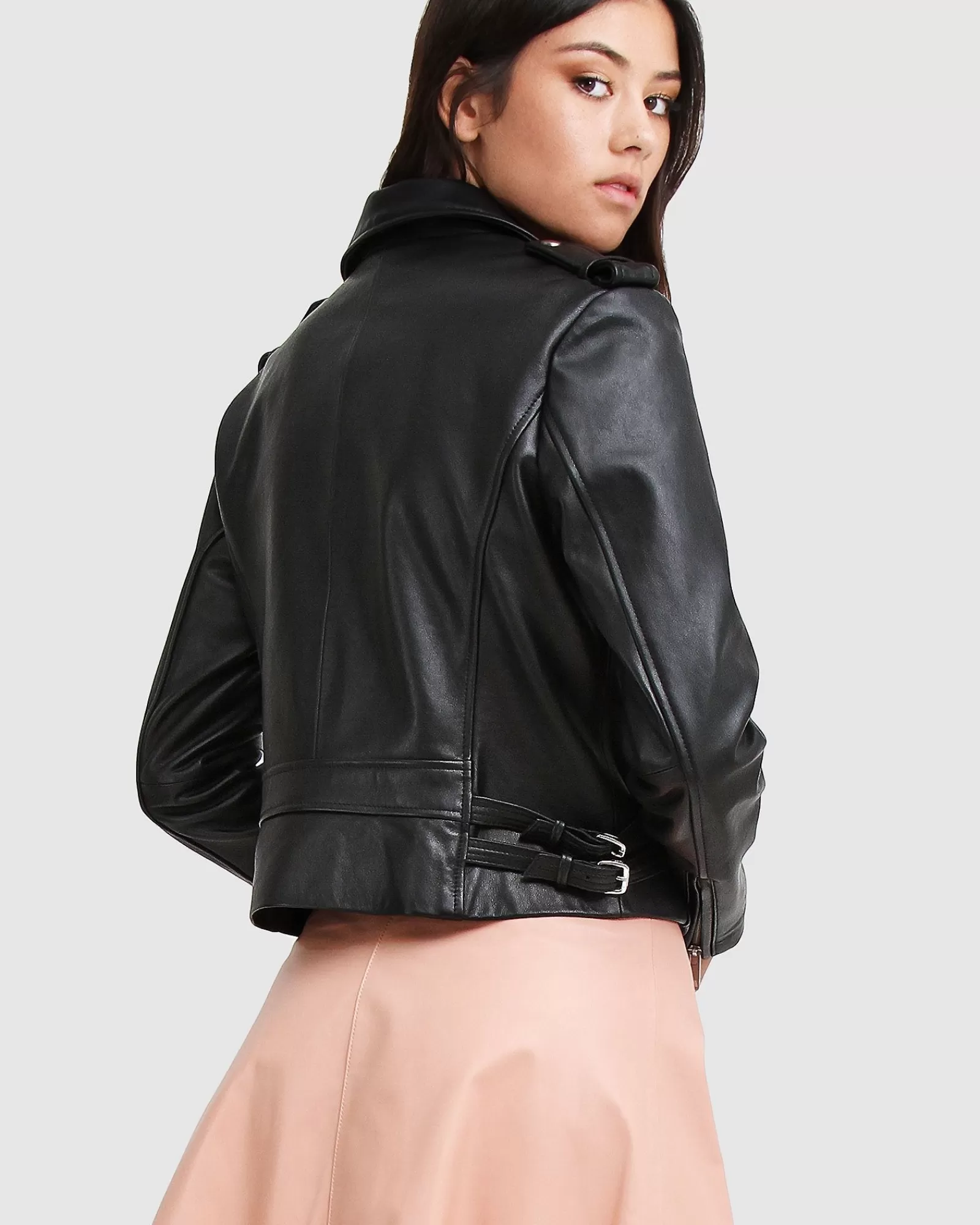 Bring an effortless luxe feel to any outfit with the Just Friends Leather Jacket by Belle & Bloom. A true wardrobe staple, this jacket is entirely crafted from genuine sheep leather and punctuated with silver-toned hardware. It features a zip-through front, notched lapels, zip-open cuffs and two zipped pockets.