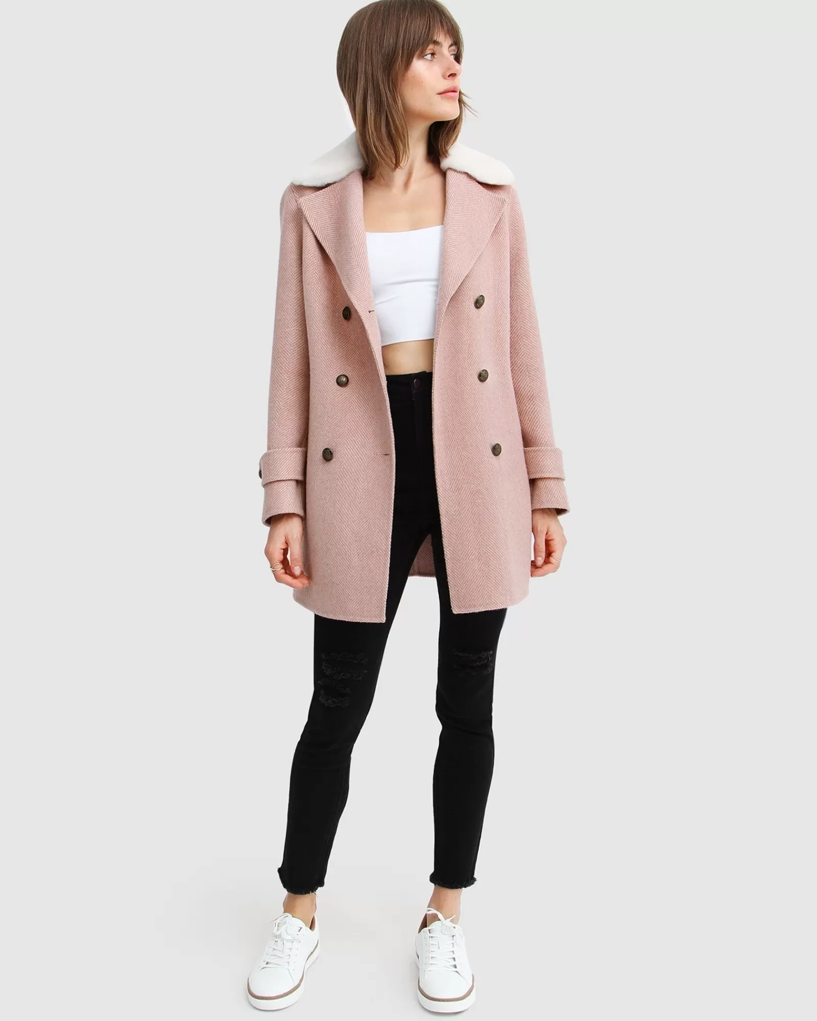 The Liberty Sherpa Collar Wool Blend Coat takes on some vintage elements to form this relaxed coat that is effortlessly cool. Outfitted with all of the details, the military brass buttons and removable Sherpa collar round out this look.