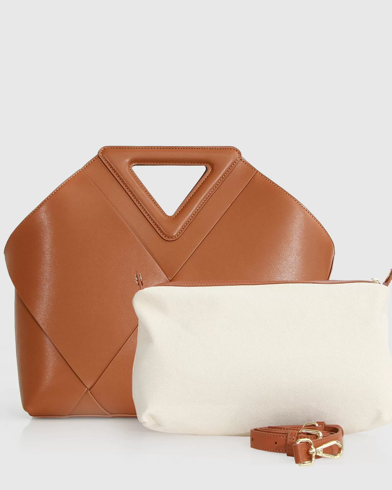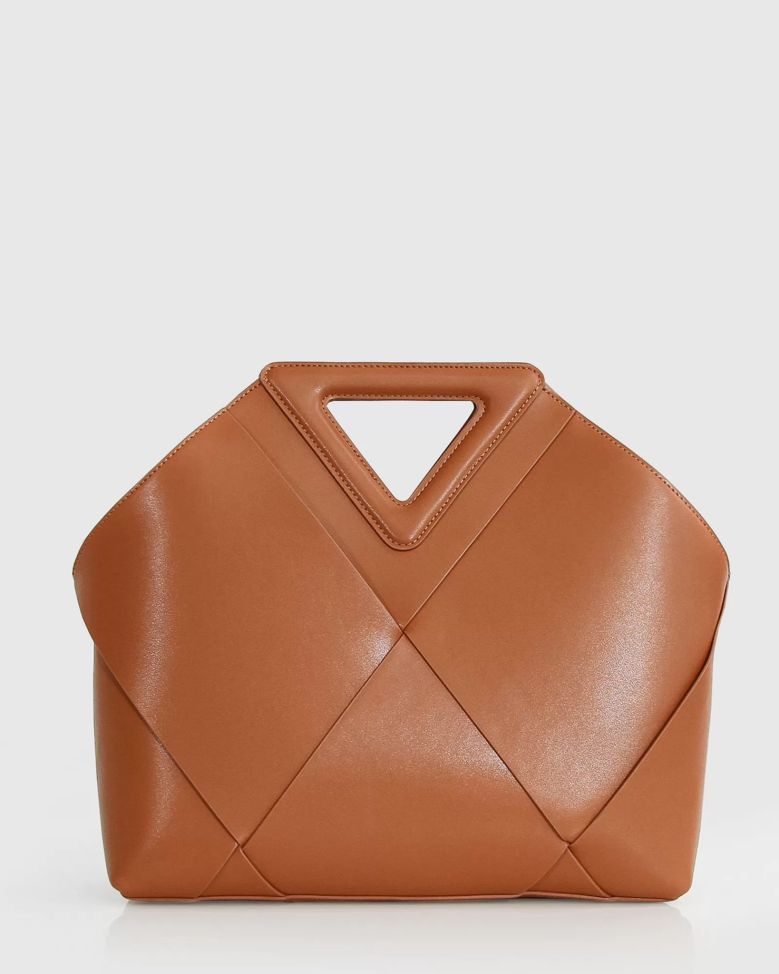 Crafted from woven leather panels, the Love Locked Handbag embodies elegance and texture. The unique inverted triangle handle adds a touch of contemporary flair, while the detachable crossbody strap offers versatile carrying options.