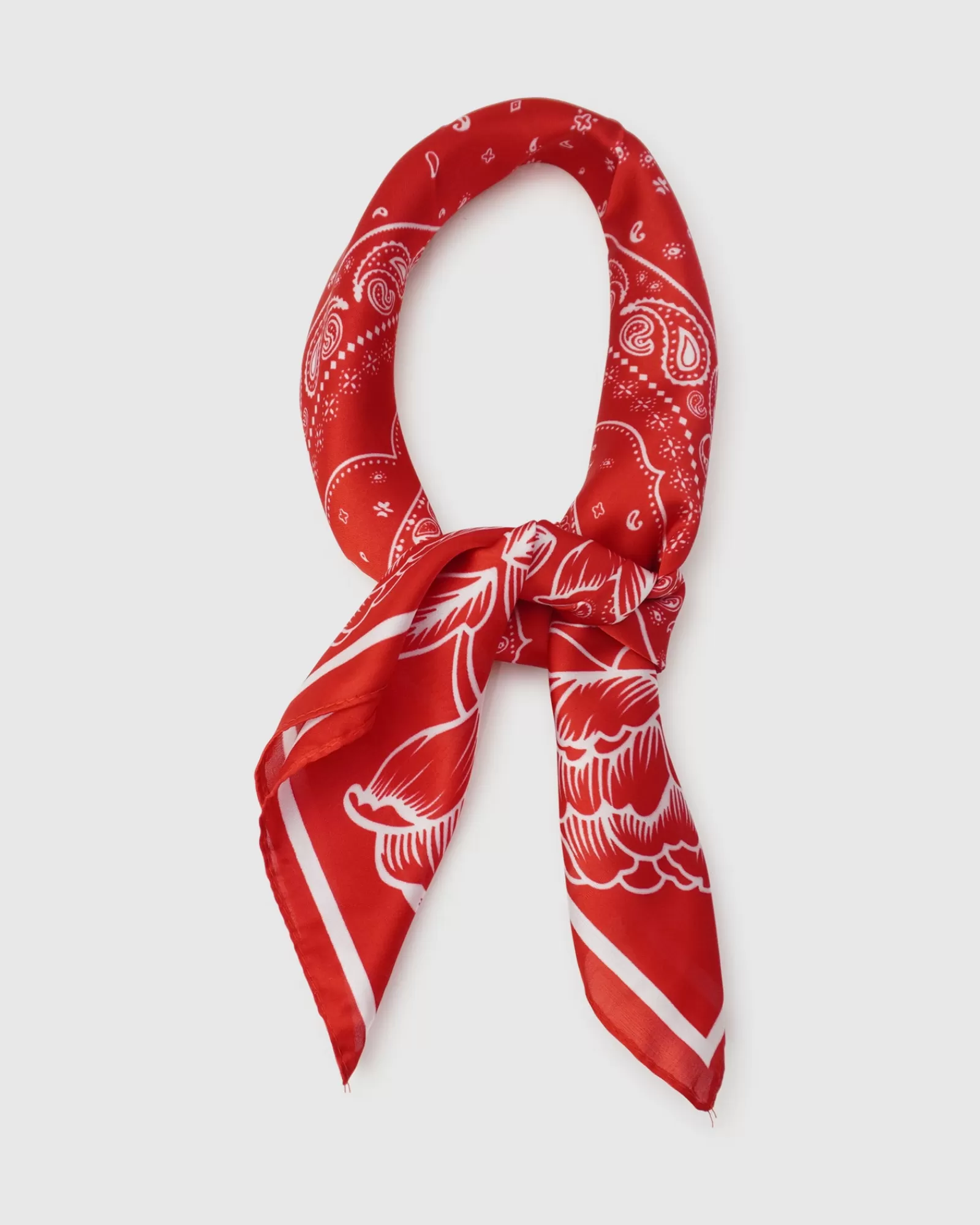 The must have accessory all year round! The Love Not War Fashion Scarf features a western inspired bandana print in a silky soft, lightweight satin. Wear it around your neck, ponytail or tie it to your favourite handbag for the bold finishing touch to any look.