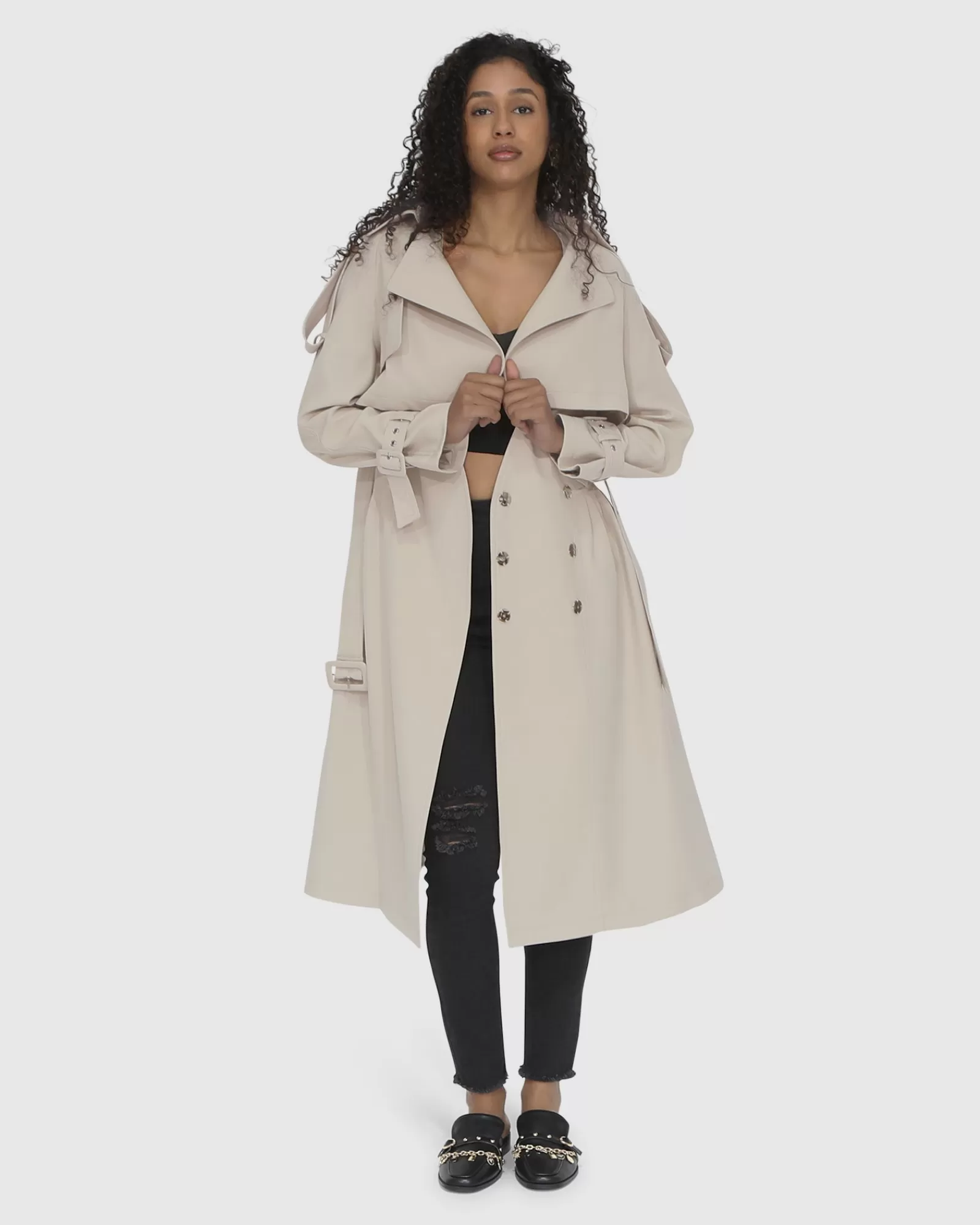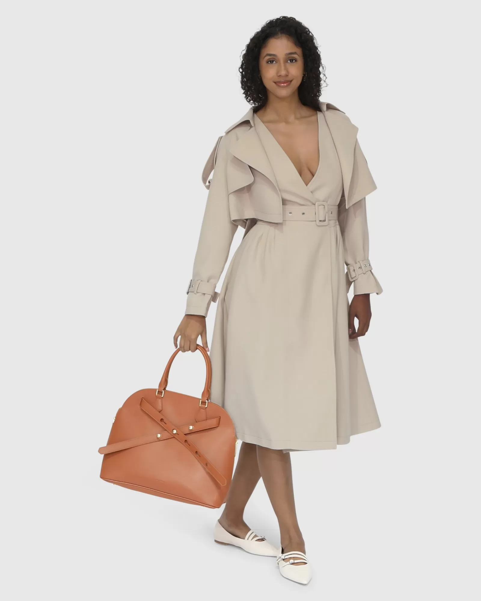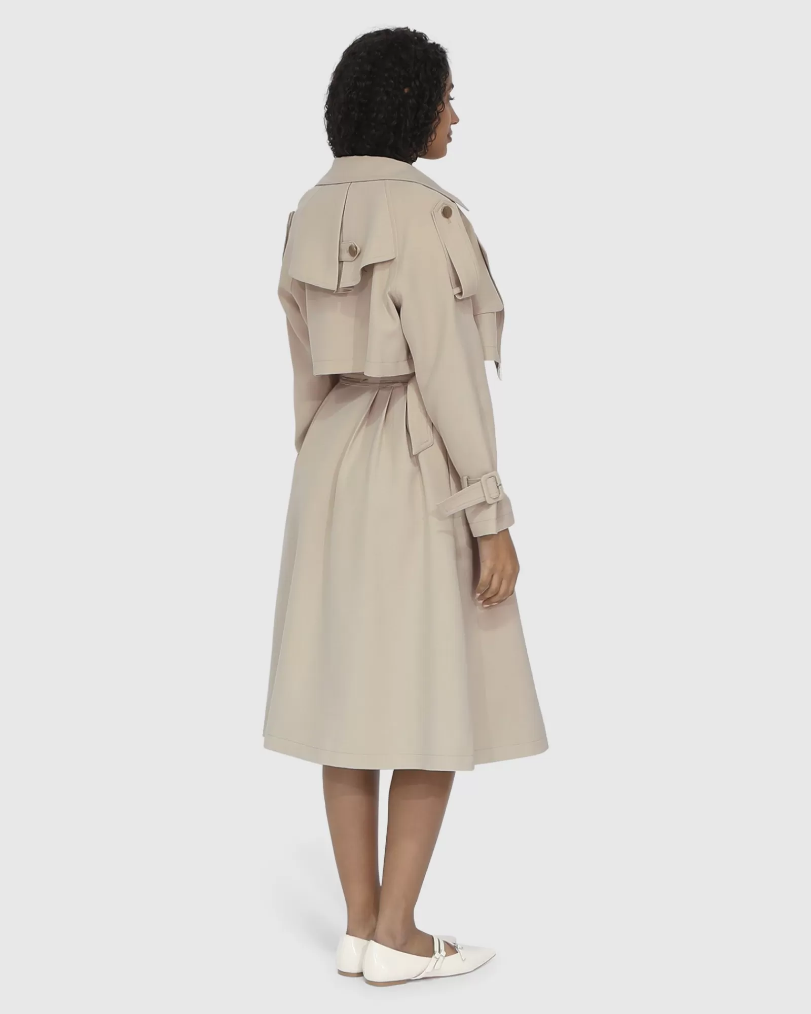 The Manhattan Cropped Trench is the perfect addition to your wardrobe. With classic storm flap detailing and finished off with gold tone hardware, this is a staple piece for all seasons! A match made in heaven for the Miss Independence Midi Dress (sold separately).