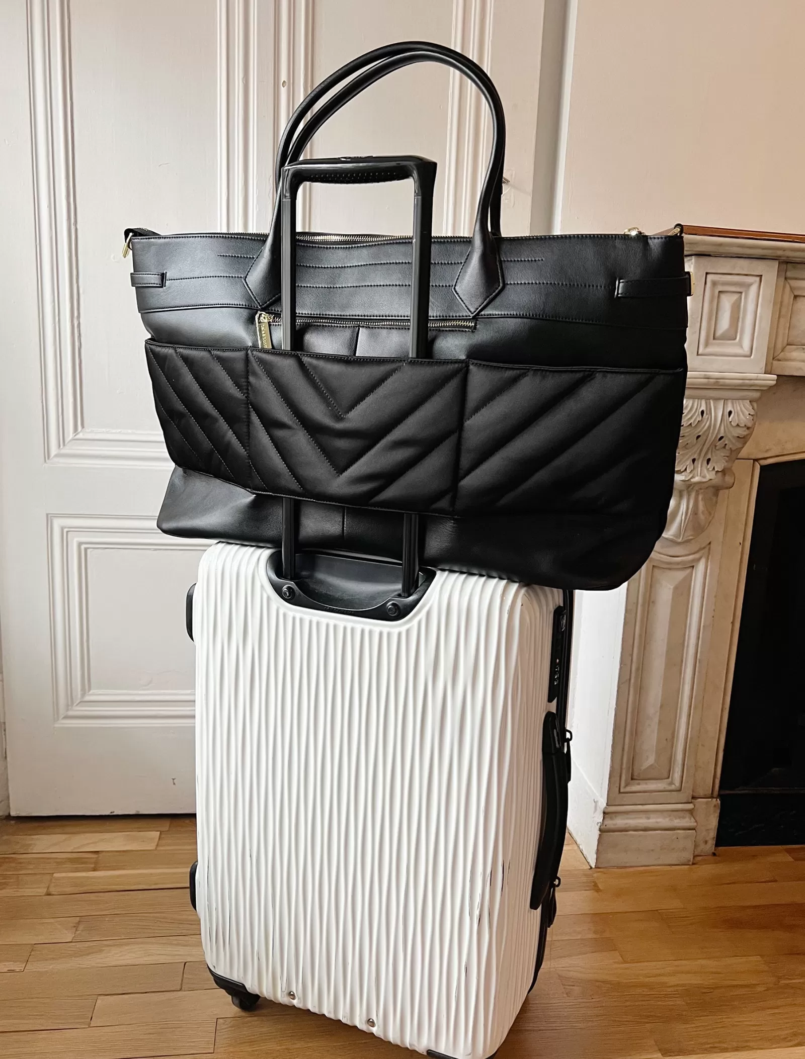 The perfect carry-on travel bag has arrived! Featuring a suitcase sleeve to ensure all your luggage stays together, multiple inner compartments for keeping your essentials organised, an outer zip pocket for easy access to your passport, and a detachable crossbody strap. The Meet Me In Paris Weekender Bag really has it all, packaged into a stylish leather design featuring soft quilting made from 100% recycled polyester!