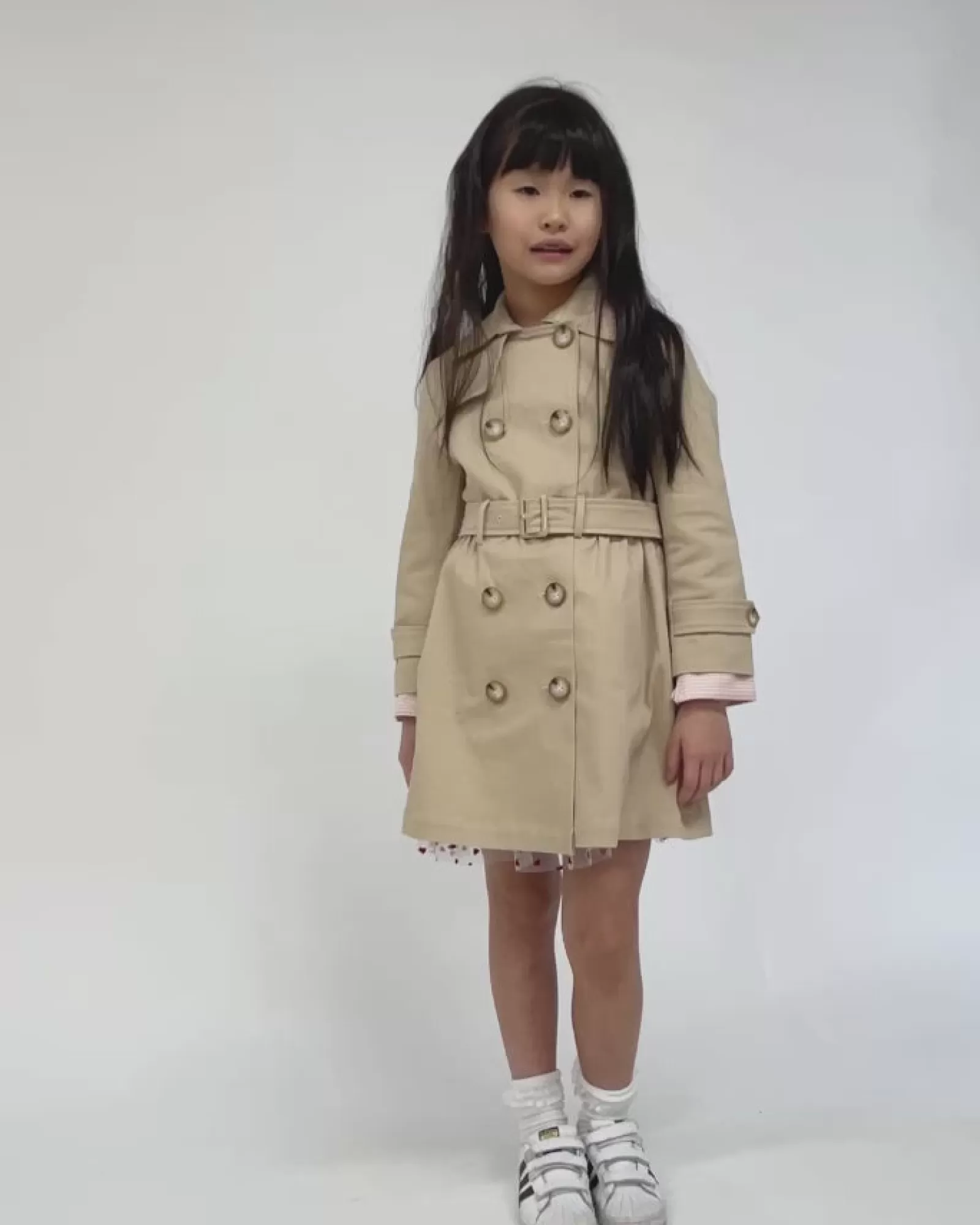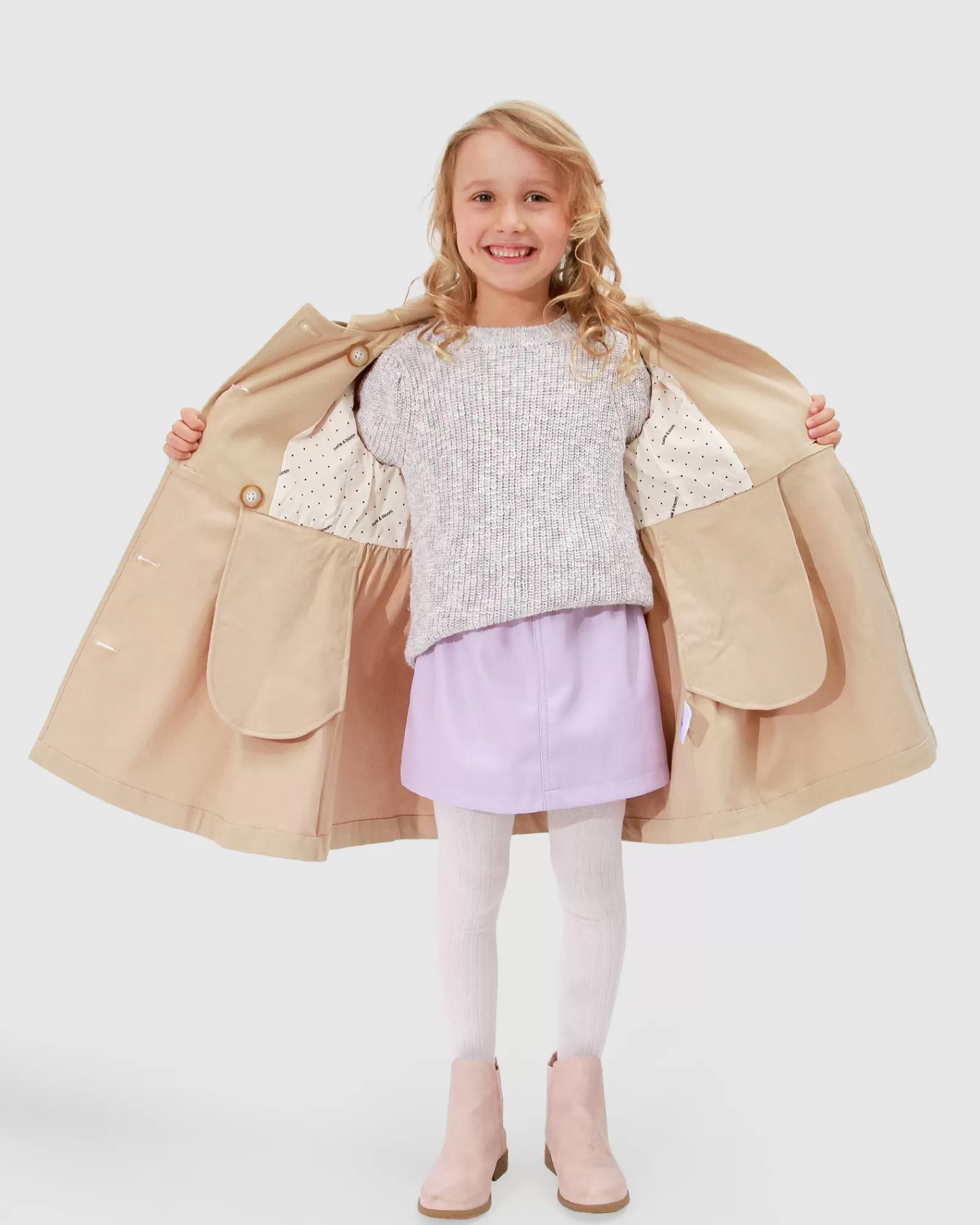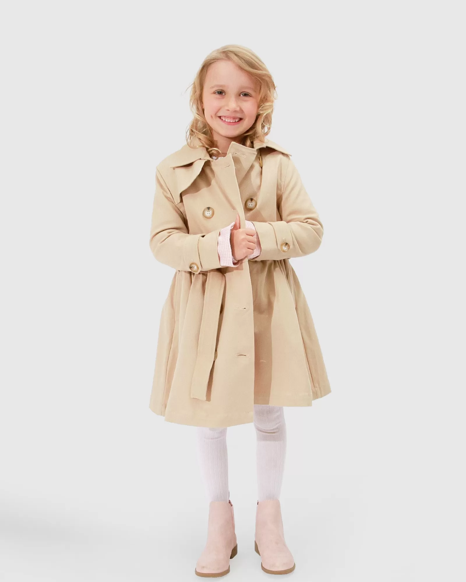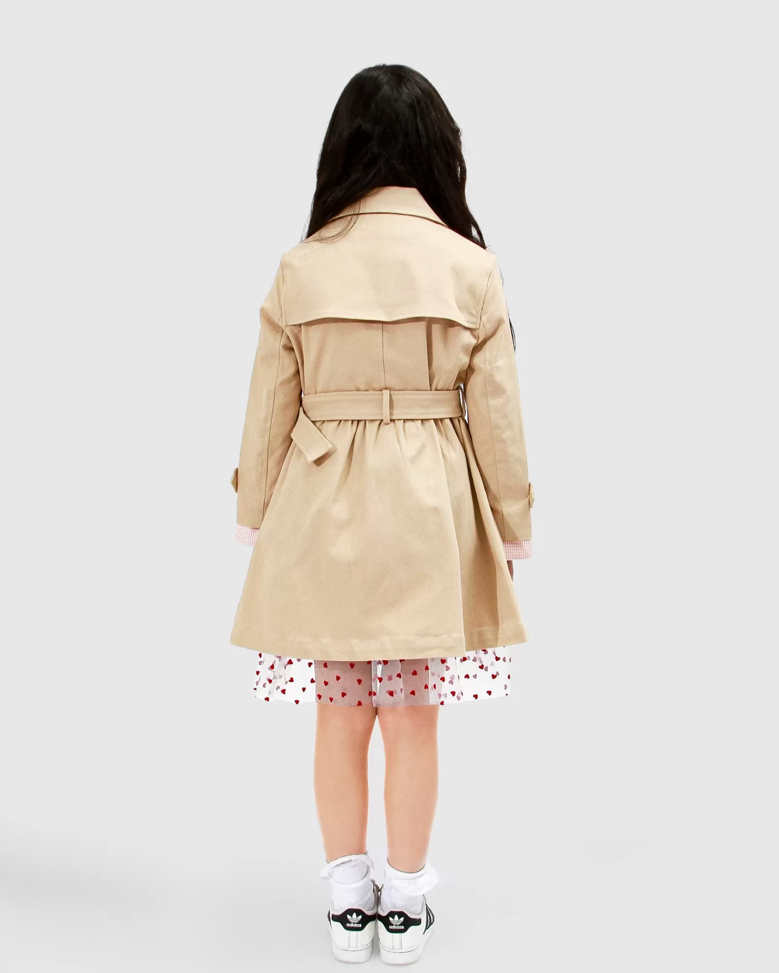 Elevate your little one’s wardrobe with our Miss Sunshine Girls Trench Coat, a true fashion essential with a touch of whimsy. Crafted from a durable yet soft heavy cotton twill, this double-breasted coat exudes timeless charm while offering a modern twist.
