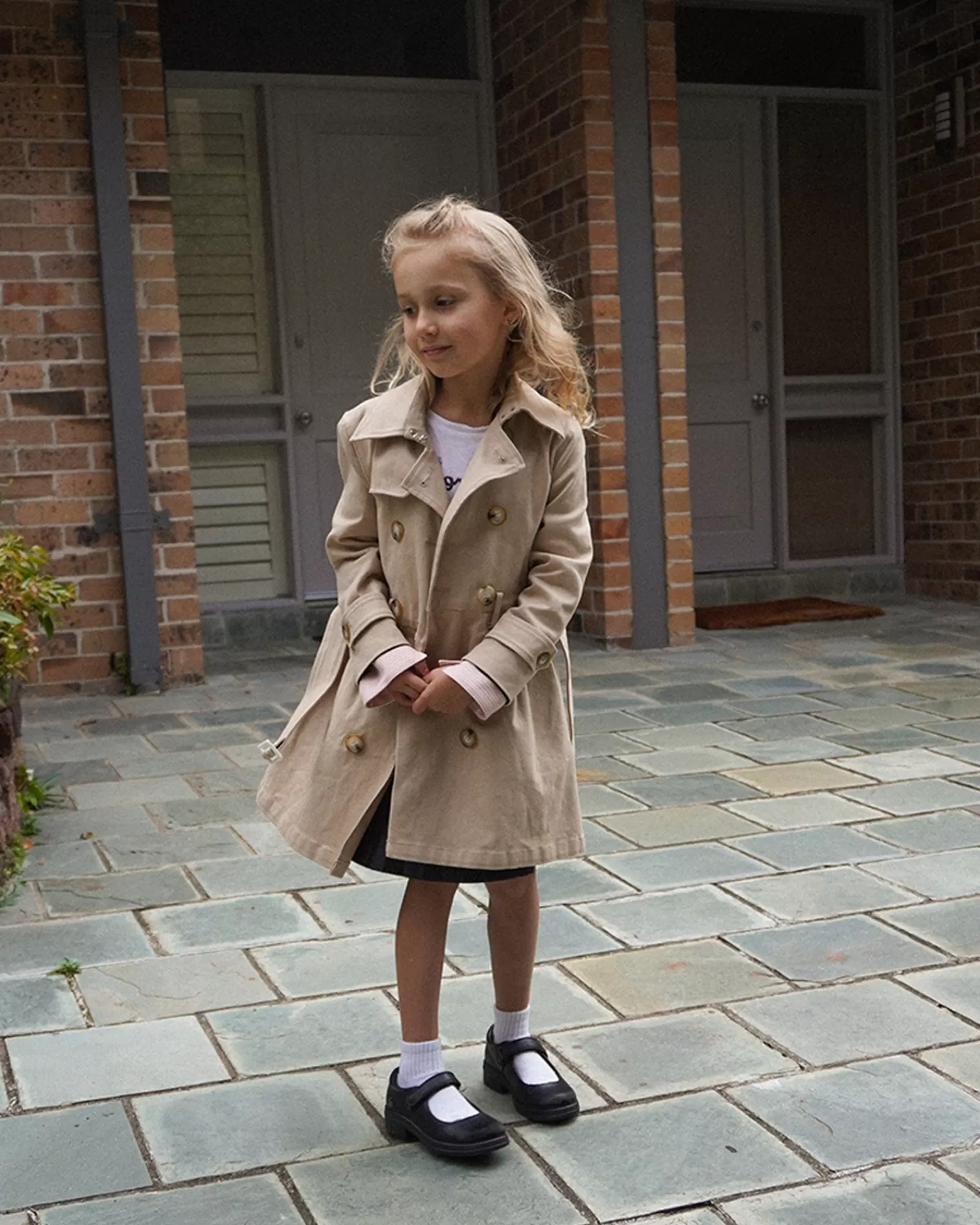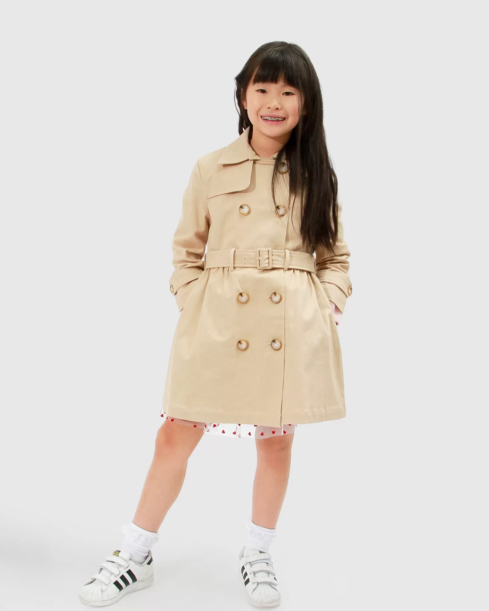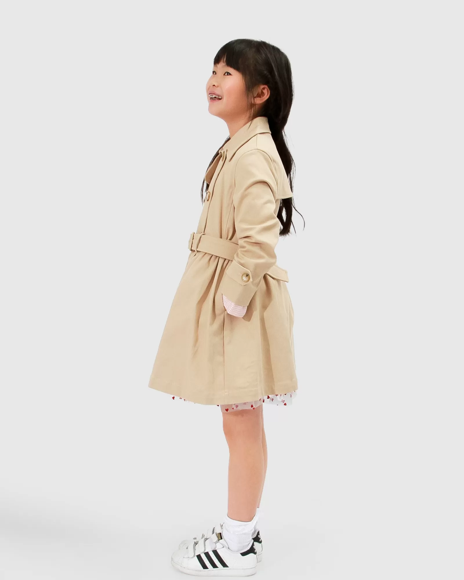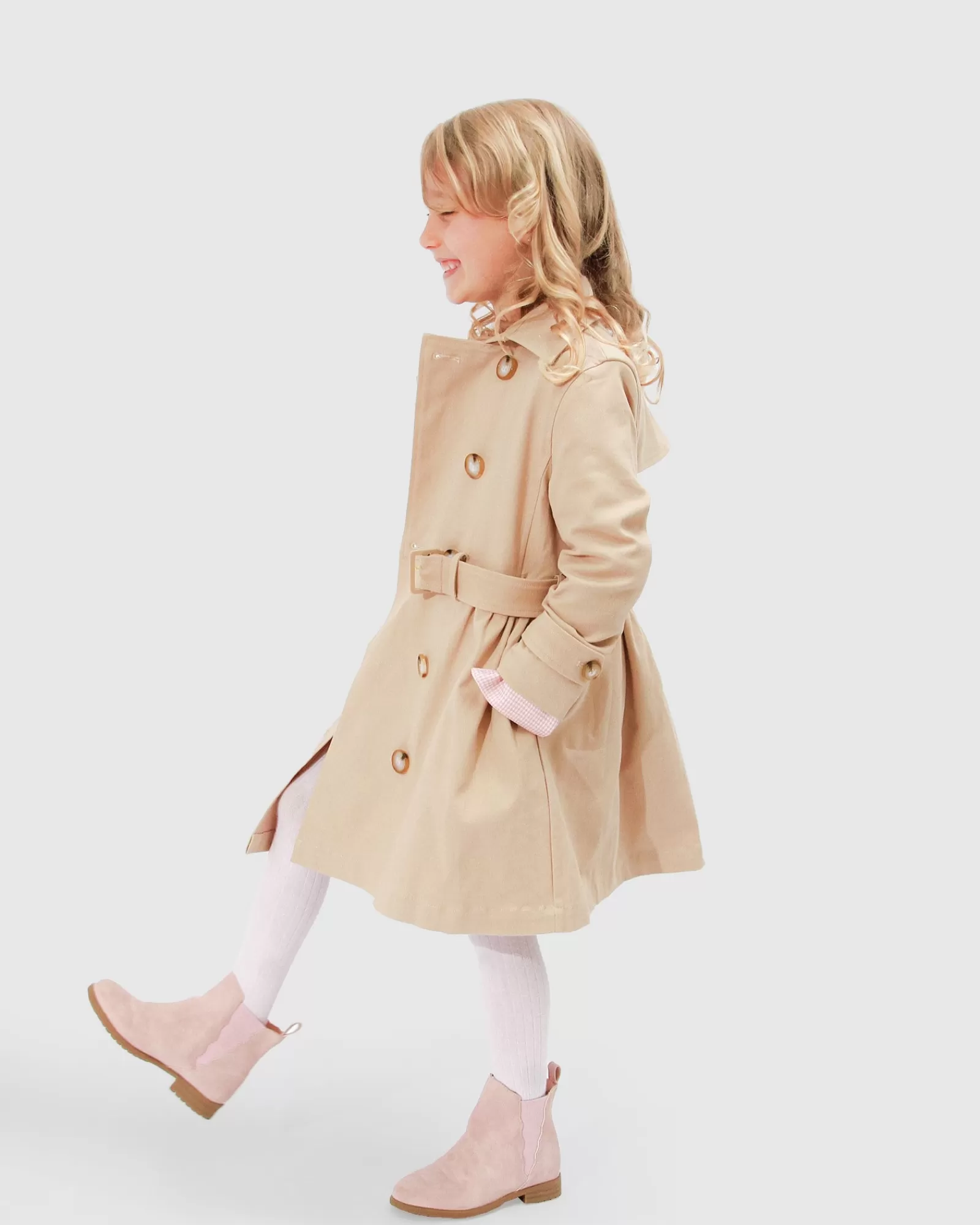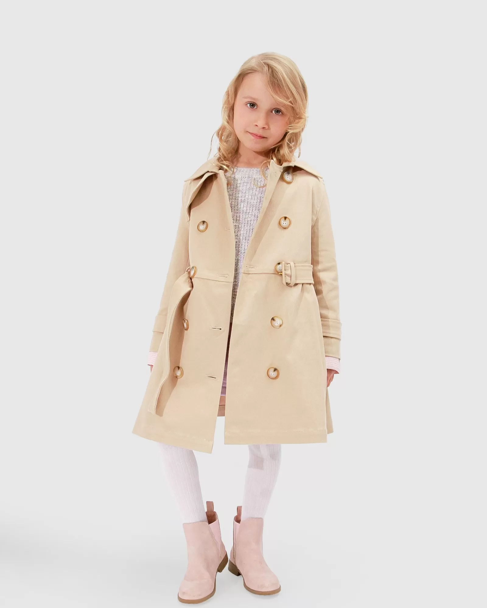 Elevate your little one’s wardrobe with our Miss Sunshine Girls Trench Coat, a true fashion essential with a touch of whimsy. Crafted from a durable yet soft heavy cotton twill, this double-breasted coat exudes timeless charm while offering a modern twist.