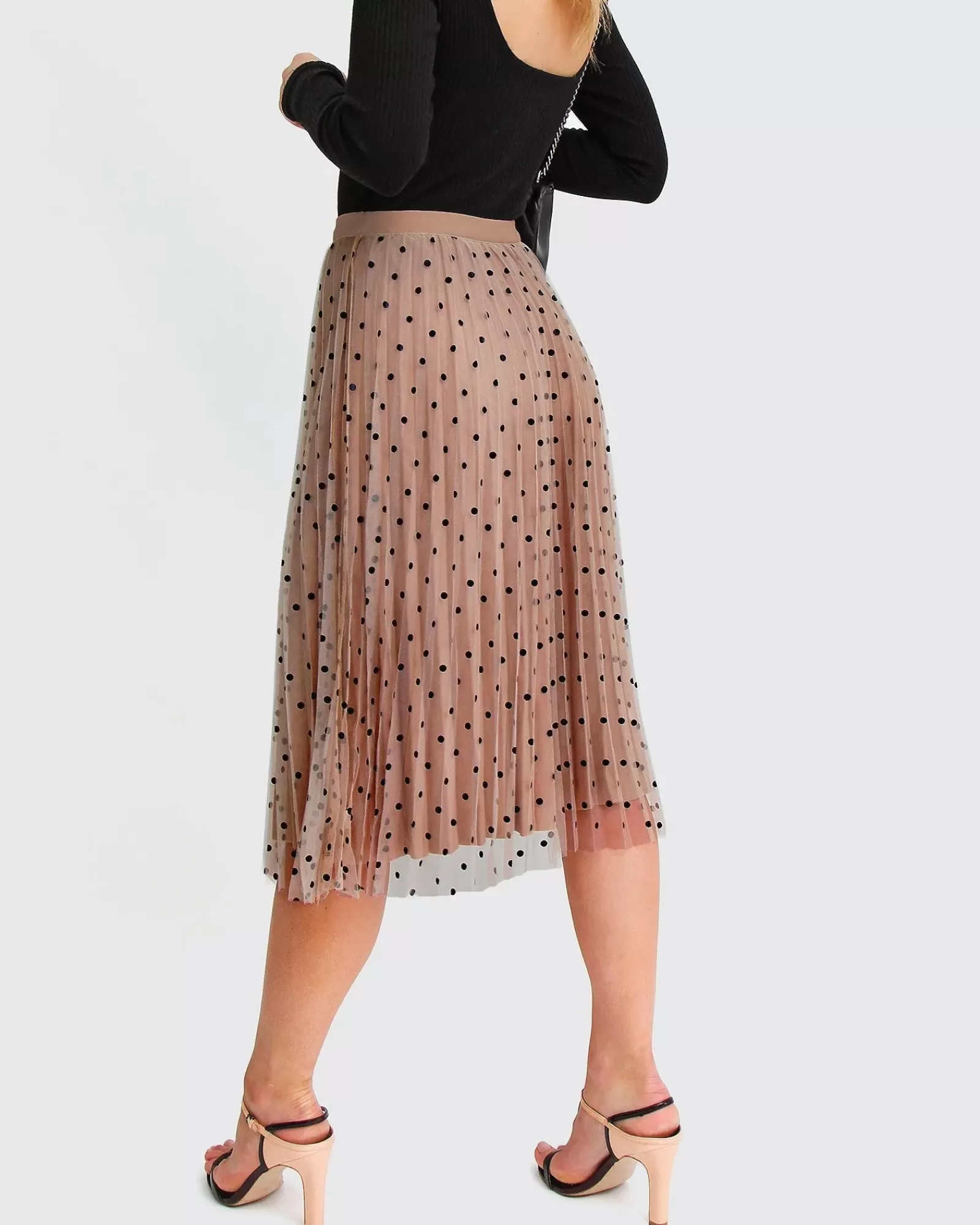 Don’t know what to wear? We have the perfect answer! Mixed Feeling Reversible Skirt features velour pleats on one side…