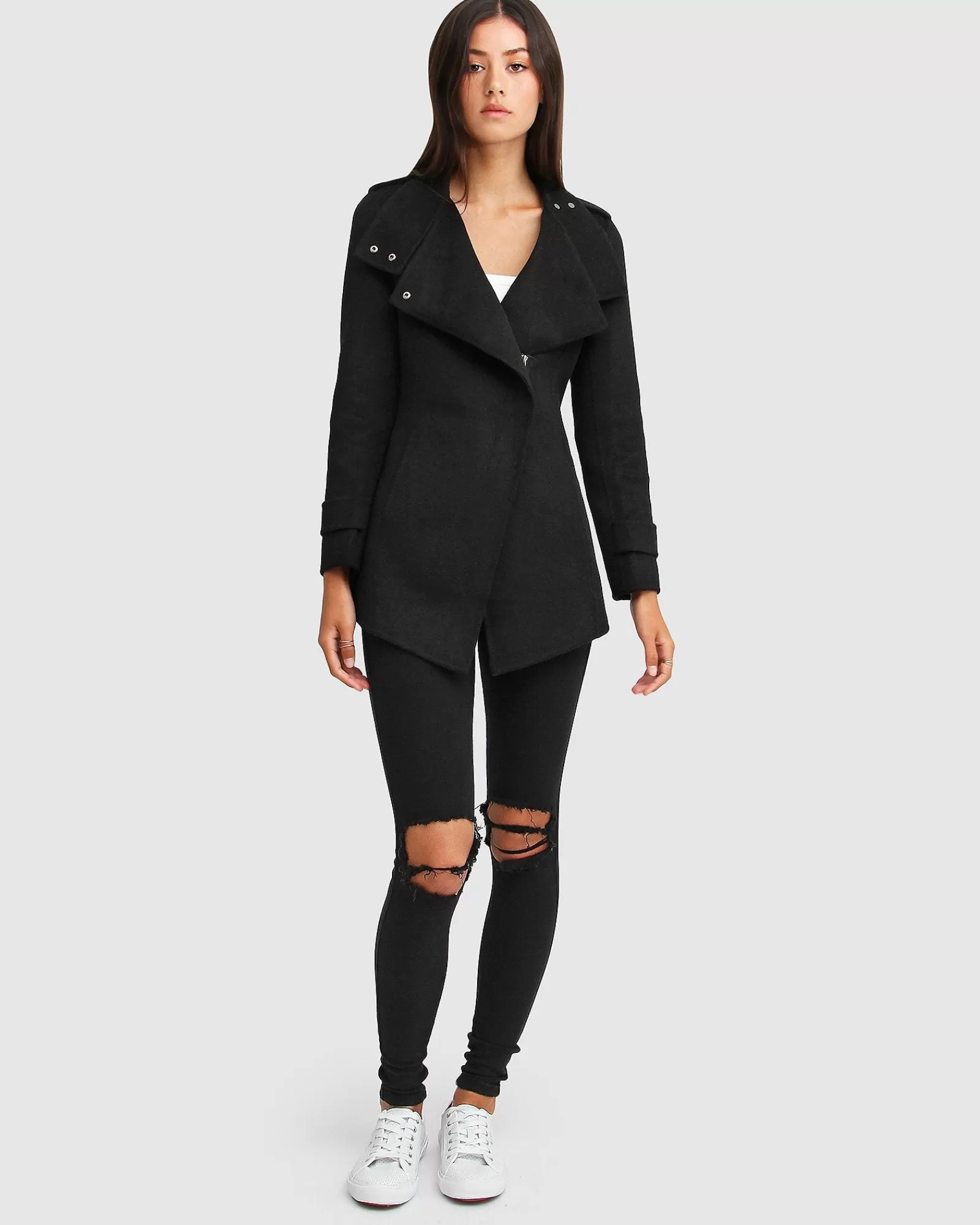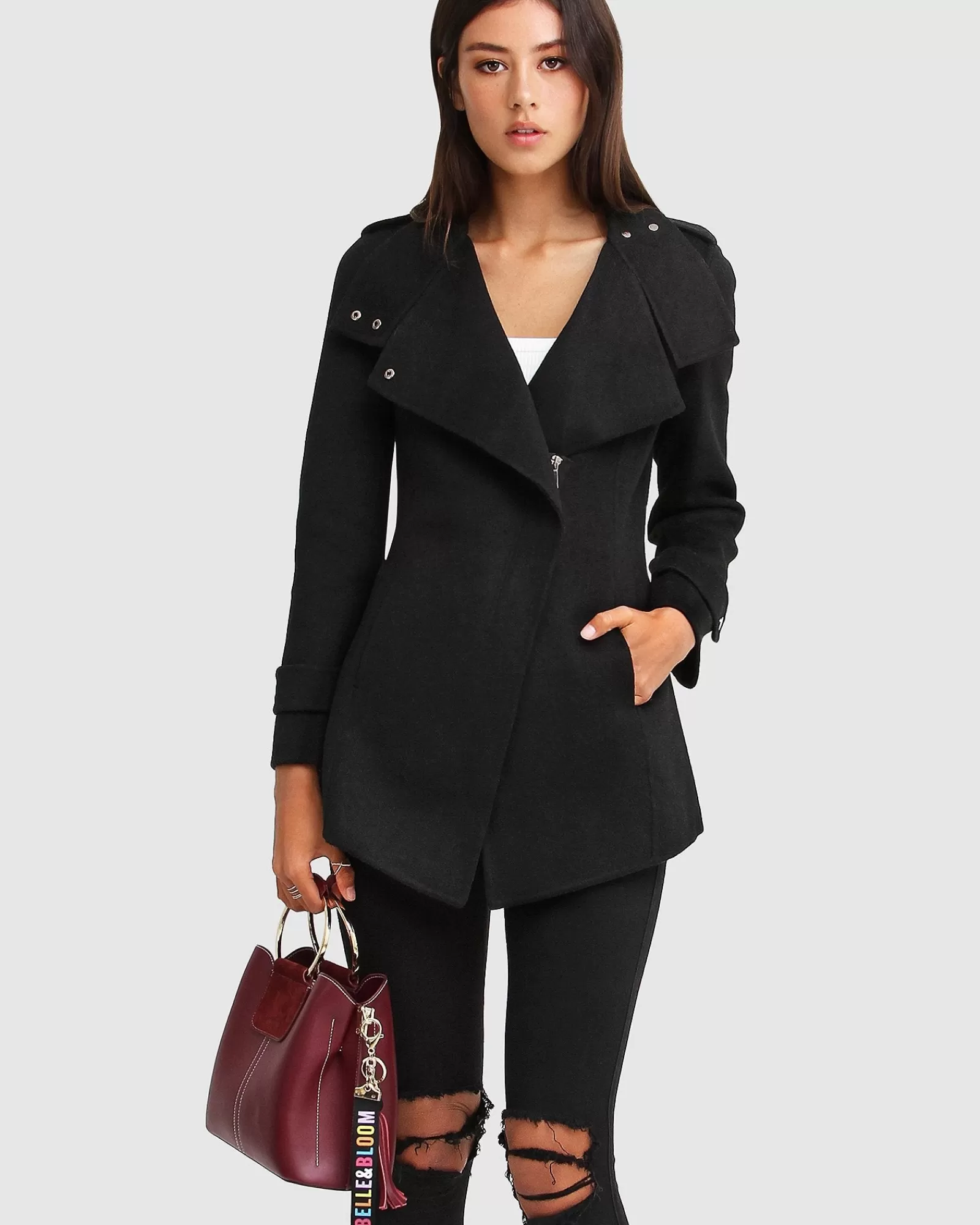 Merging the sleek styling of a motorcycle jacket cut in a soft wool blend, the Bad Girl Wool Blend Moto Coat is decked out with all the details. This shorter style is super versatile across seasons and occasions, pairing perfectly with both workwear or a night out.