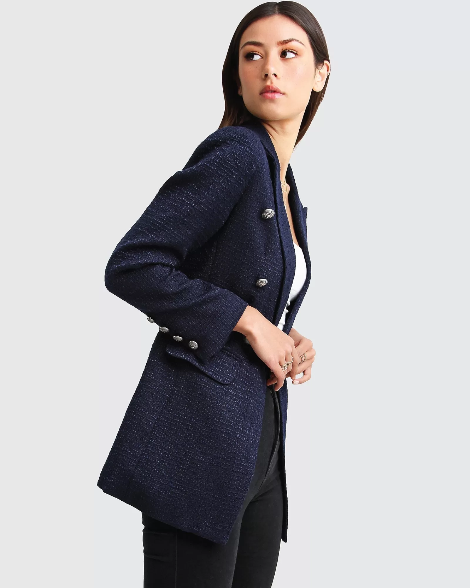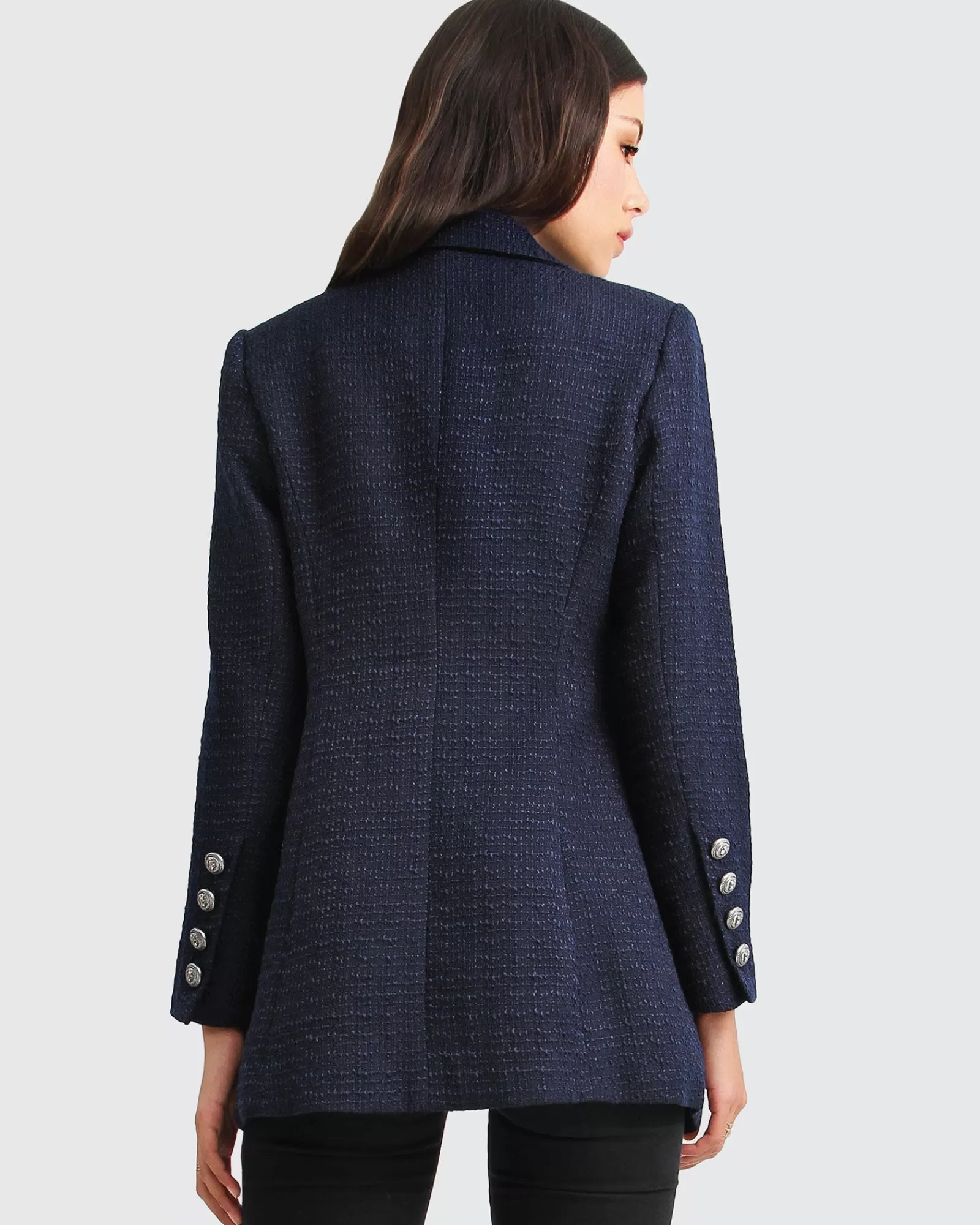 Princess Polina Textured Weave Blazer features a feminine fitted silhouette and a timeless ‘captain style’ golden butto…