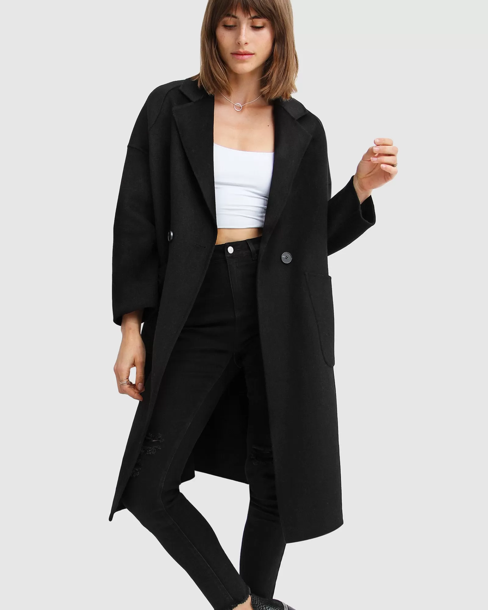 Inspired by global fashion editors, the Publisher Double-Breasted Wool Blend Coat in an oversized fit is the modern take on the tailored notched collar coat. This smart casual piece coat emits boss girl vibes for your winter workwear style.